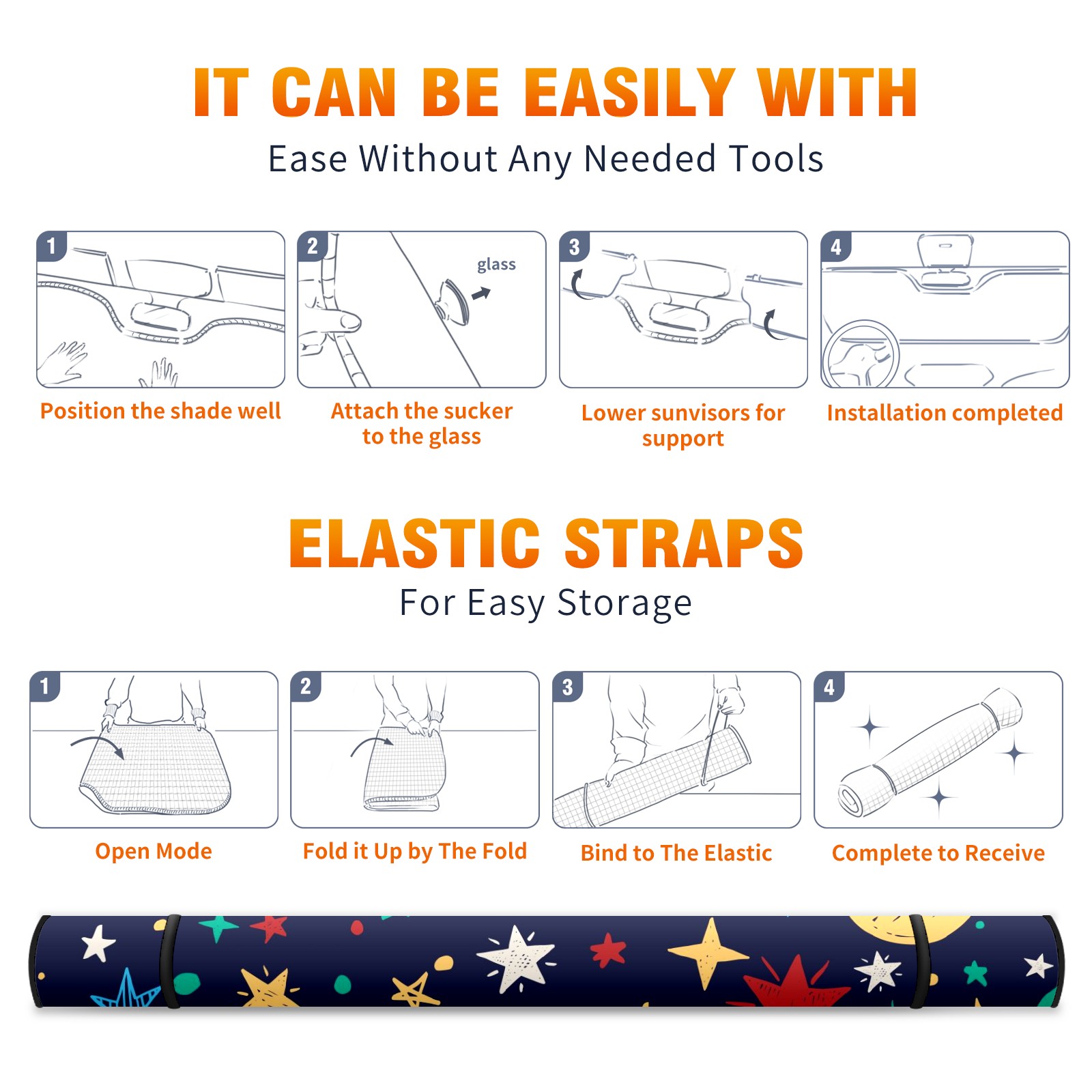 <p><b>Foldable Premium Car Windshield Sunshade is your great solution to reduce your car’s interior temperature dramatically! This is definitely a must-have item for your summer travel!</b></p><p><b>【Precision Fit, Stylish Protection】</b></p><p>55"x30" (140x76cm) universal size with 3cm flexible margins fits curved windshields of most sedans/SUVs.</p><p><b>【Blocking Uv Rays &amp; Heat Insulation】</b></p><p>Our vehicle sunshade provides effective UV, sun, and summer heat protection, preventing leather fading and plastic cracking to keep your car interior pristine.</p><p><b>【Zero-Mark Installation &amp; Space-Saving】</b></p><p>Equipped with dual scratch-free silicone suction cups + adjustable straps: Medical-grade silicone cups hold firmly yet remove cleanly. Folds to A3 size (42x30cm x &lt;2cm thick), tucks discreetly into glove compartments or door pockets.&nbsp;</p>