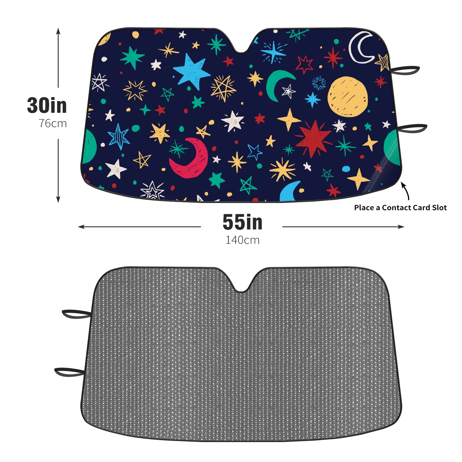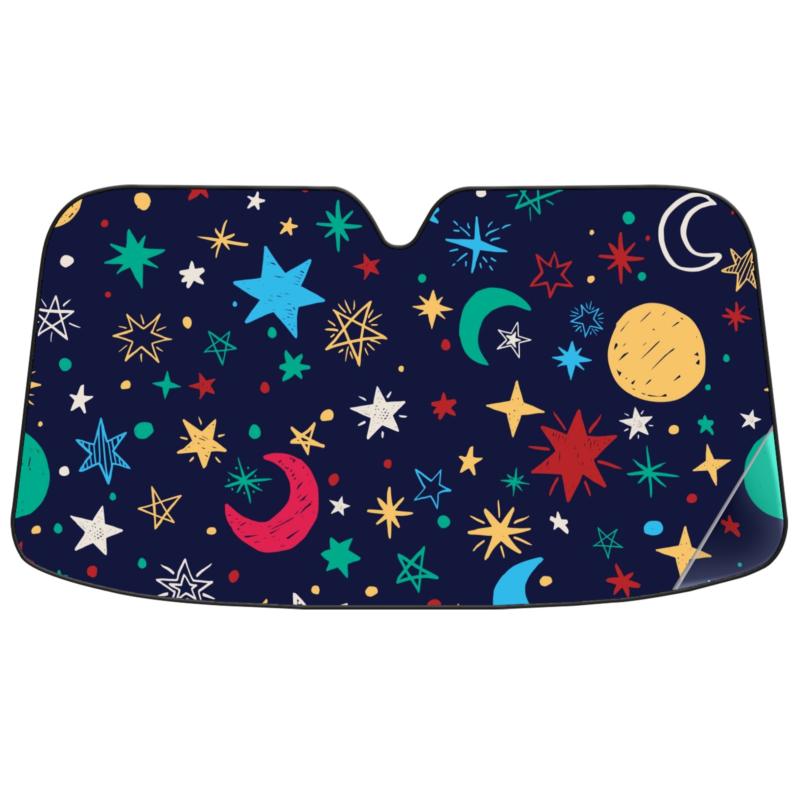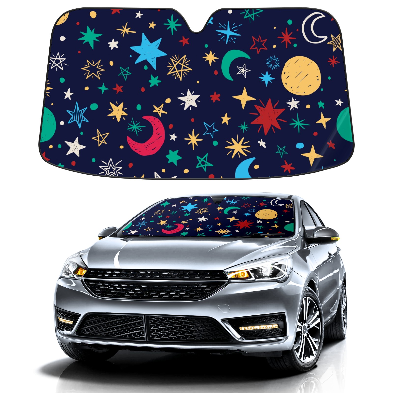 Galaxy Colorful Moon Stars Pattern Car Sun Shade UV Protection Foldable Sunshade for Windshield Heat Insulation Portable Sun Shield for Car Interior Protection Automotive Window Protector
