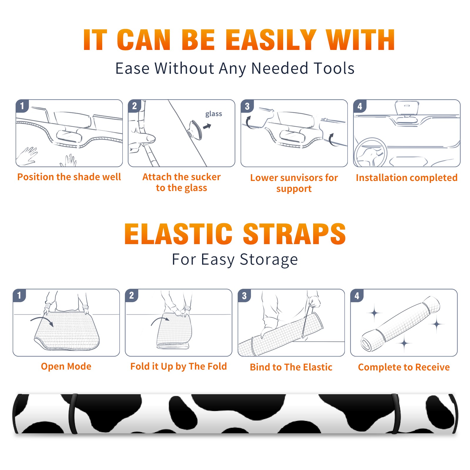 • <p><b>Foldable Premium Car Windshield Sunshade is your great solution to reduce your car’s interior temperature dramatically! This is definitely a must-have item for your summer travel!</b></p><p><b>【Precision Fit, Stylish Protection】</b></p><p>55"x30" (140x76cm) universal size with 3cm flexible margins fits curved windshields of most sedans/SUVs.</p><p><b>【Blocking Uv Rays &amp; Heat Insulation】</b></p><p>Our vehicle sunshade provides effective UV, sun, and summer heat protection, preventing leather fading and plastic cracking to keep your car interior pristine.</p><p><b>【Zero-Mark Installation &amp; Space-Saving】</b></p><p>Equipped with dual scratch-free silicone suction cups + adjustable straps: Medical-grade silicone cups hold firmly yet remove cleanly. Folds to A3 size (42x30cm x &lt;2cm thick), tucks discreetly into glove compartments or door pockets.&nbsp;</p>