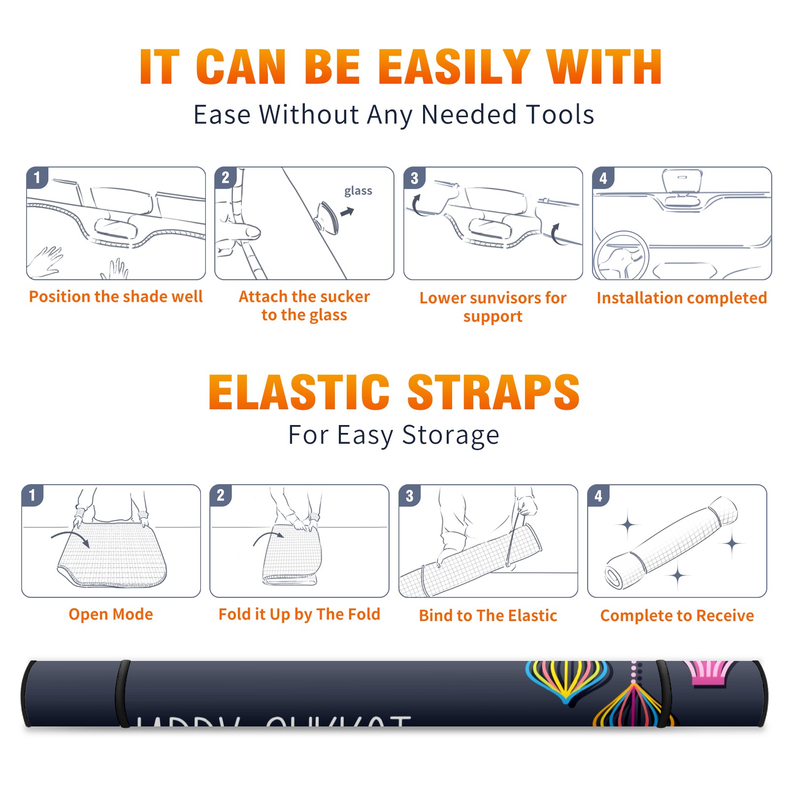 • <p><b>Foldable Premium Car Windshield Sunshade is your great solution to reduce your car’s interior temperature dramatically! This is definitely a must-have item for your summer travel!</b></p><p><b>【Precision Fit, Stylish Protection】</b></p><p>55"x30" (140x76cm) universal size with 3cm flexible margins fits curved windshields of most sedans/SUVs.</p><p><b>【Blocking Uv Rays &amp; Heat Insulation】</b></p><p>Our vehicle sunshade provides effective UV, sun, and summer heat protection, preventing leather fading and plastic cracking to keep your car interior pristine.</p><p><b>【Zero-Mark Installation &amp; Space-Saving】</b></p><p>Equipped with dual scratch-free silicone suction cups + adjustable straps: Medical-grade silicone cups hold firmly yet remove cleanly. Folds to A3 size (42x30cm x &lt;2cm thick), tucks discreetly into glove compartments or door pockets.&nbsp;</p>