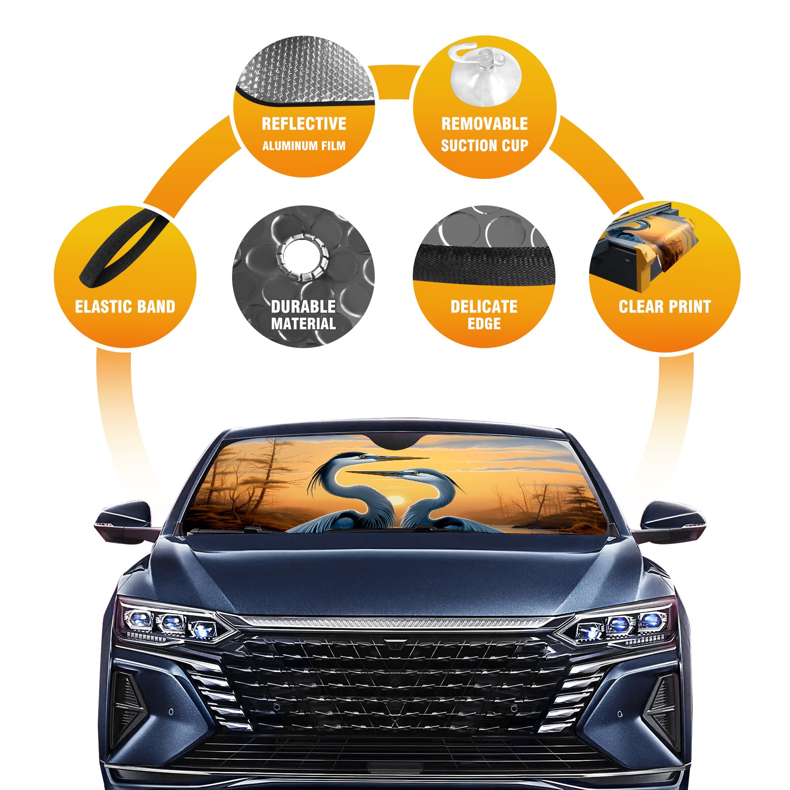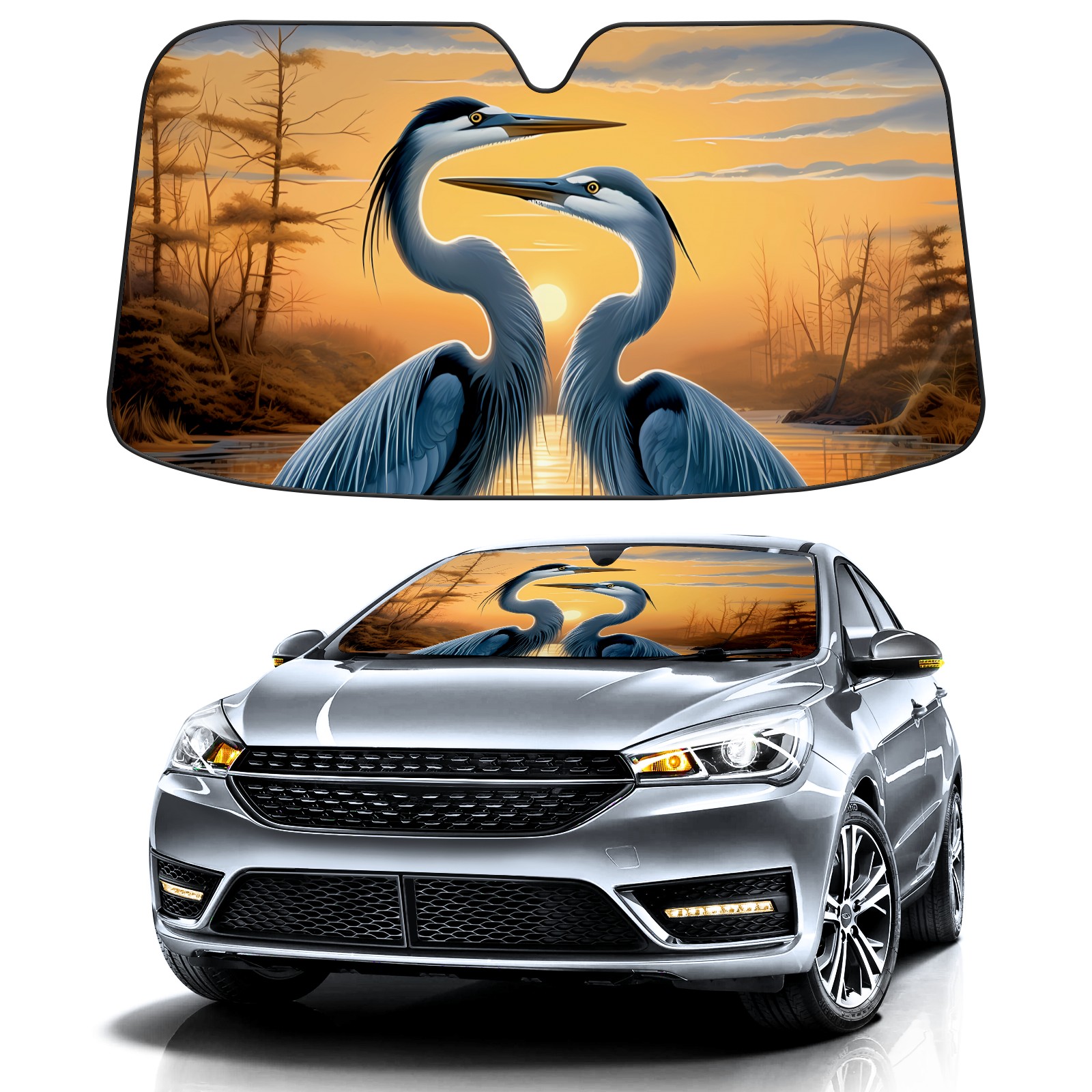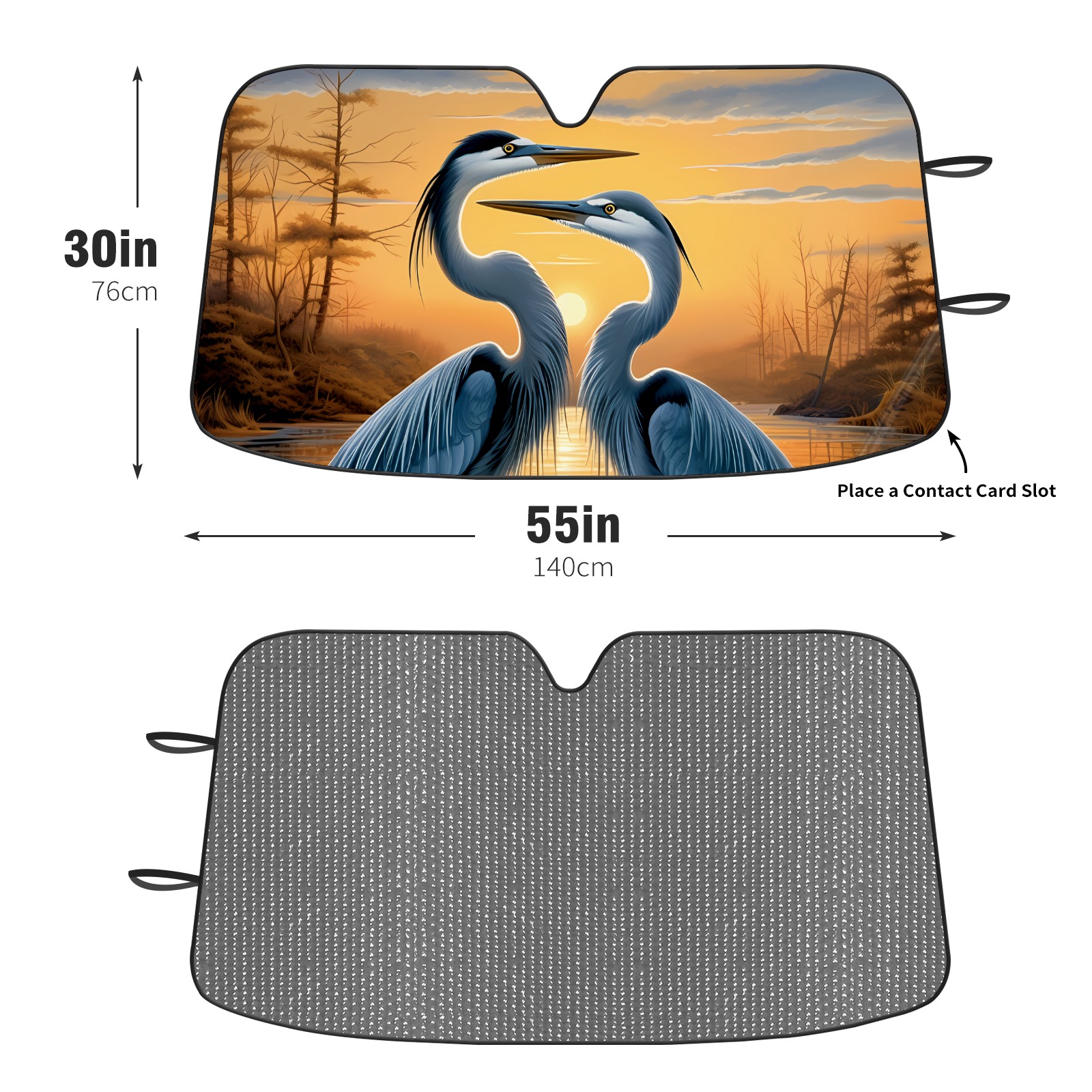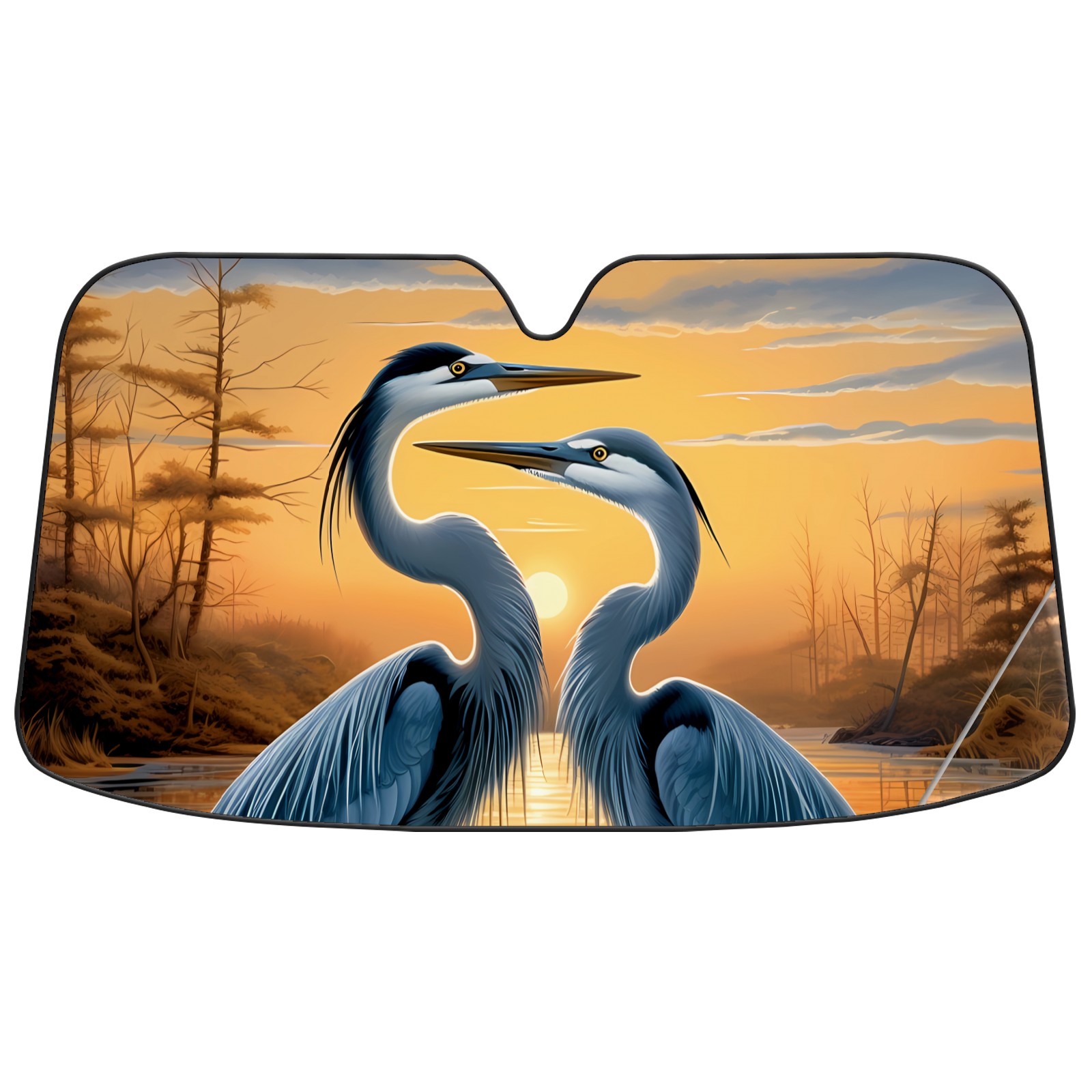 Two Blue Herons Standing Car Sun Shade UV Protection Foldable Sunshade for Windshield Heat Insulation Portable Sun Shield for Car Interior Protection Automotive Window Protector