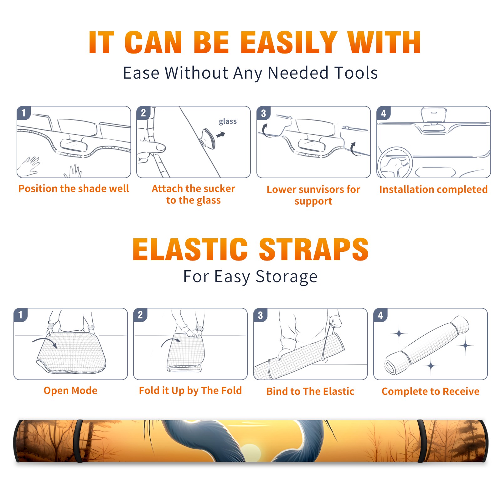 • <p><b>Foldable Premium Car Windshield Sunshade is your great solution to reduce your car’s interior temperature dramatically! This is definitely a must-have item for your summer travel!</b></p><p><b>【Precision Fit, Stylish Protection】</b></p><p>55"x30" (140x76cm) universal size with 3cm flexible margins fits curved windshields of most sedans/SUVs.</p><p><b>【Blocking Uv Rays &amp; Heat Insulation】</b></p><p>Our vehicle sunshade provides effective UV, sun, and summer heat protection, preventing leather fading and plastic cracking to keep your car interior pristine.</p><p><b>【Zero-Mark Installation &amp; Space-Saving】</b></p><p>Equipped with dual scratch-free silicone suction cups + adjustable straps: Medical-grade silicone cups hold firmly yet remove cleanly. Folds to A3 size (42x30cm x &lt;2cm thick), tucks discreetly into glove compartments or door pockets.&nbsp;</p>