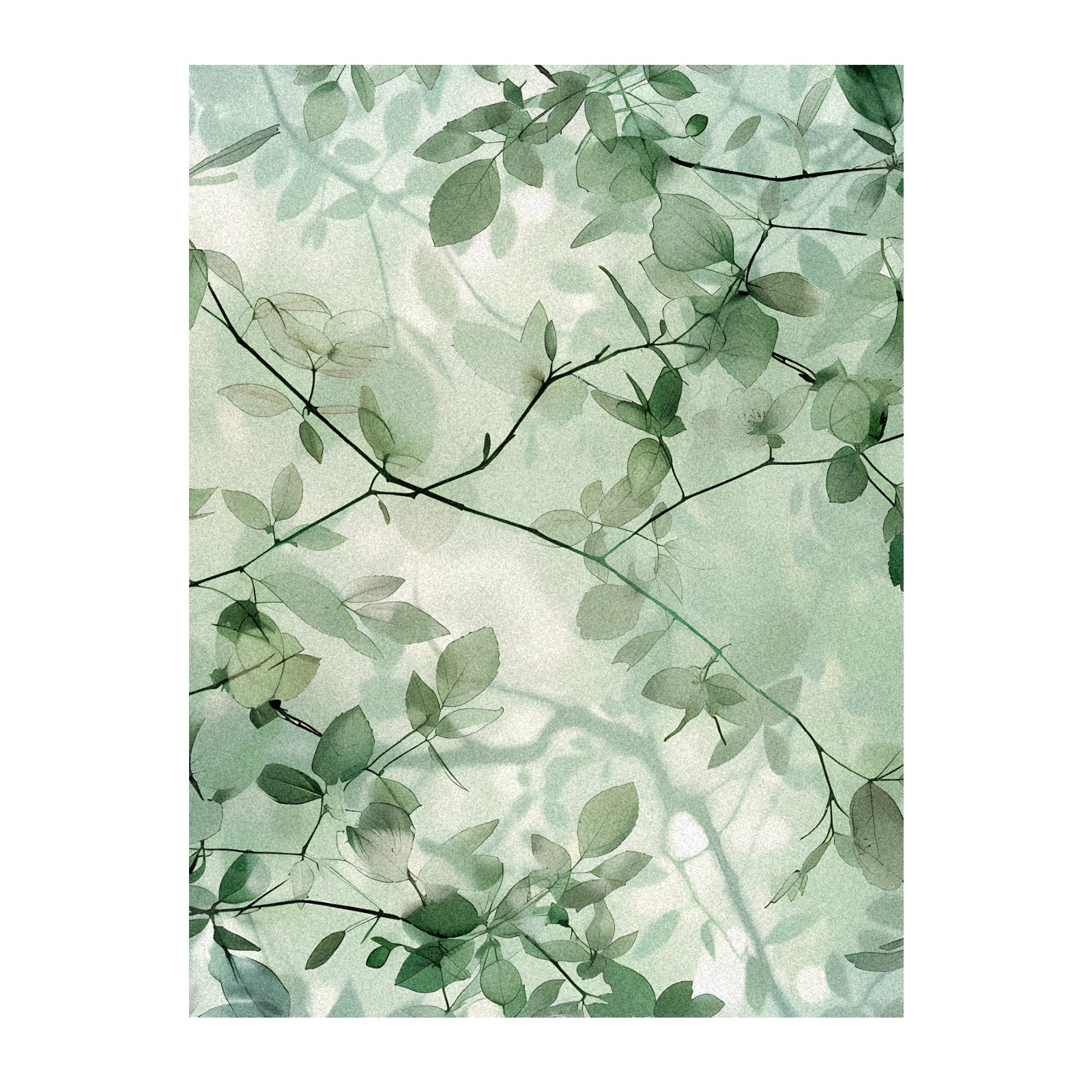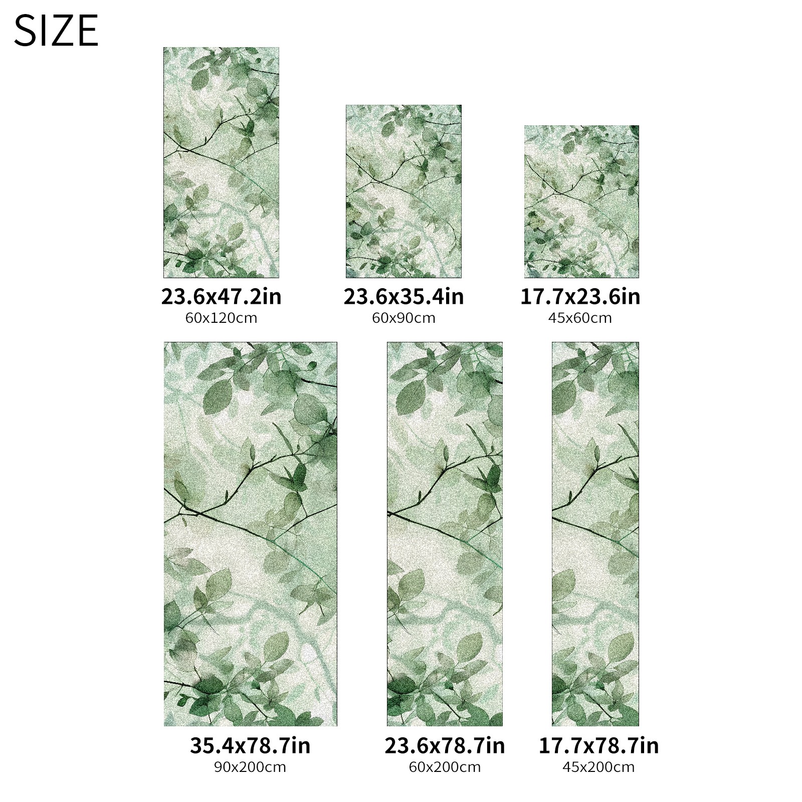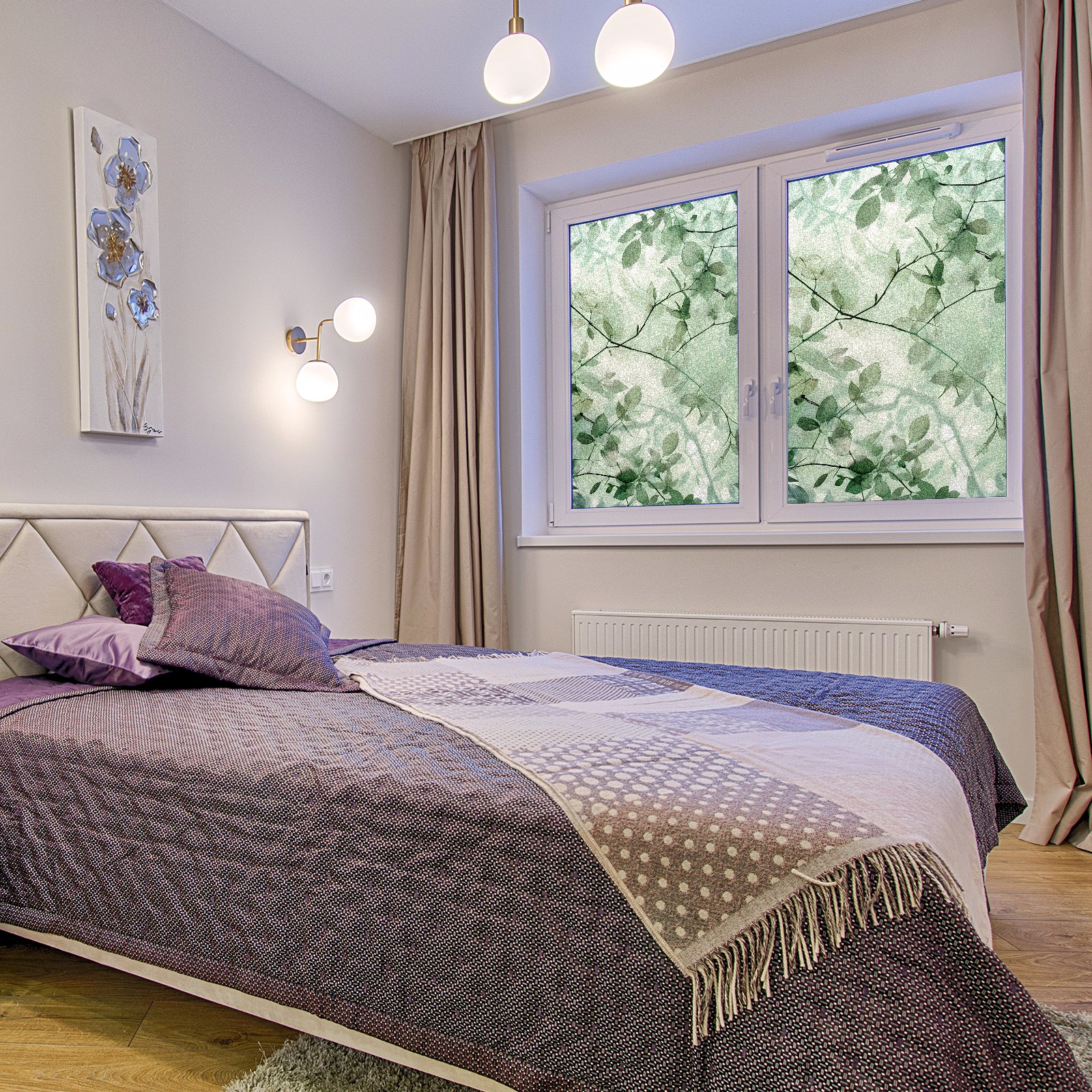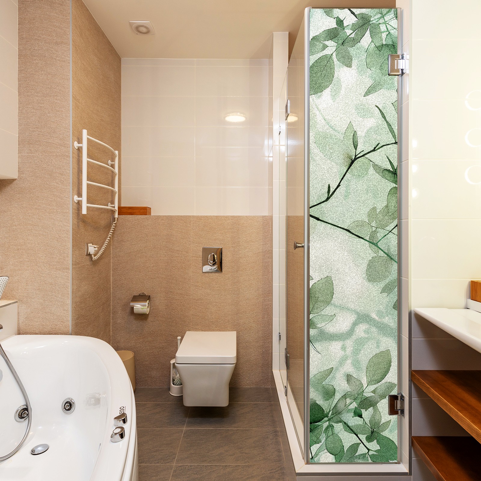 Window Privacy Film Frosted Stained Glass Film Decorative Static Cling for Bathroom Home Office Peel and Stick Window Film Green Branches Leaves(17.7x23.6in)