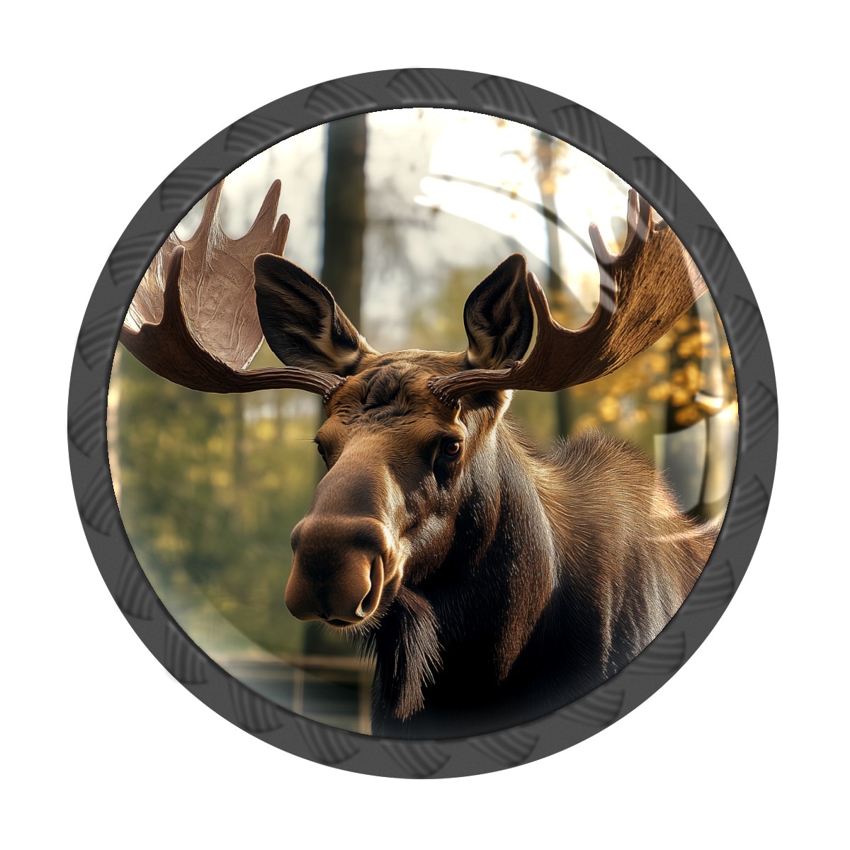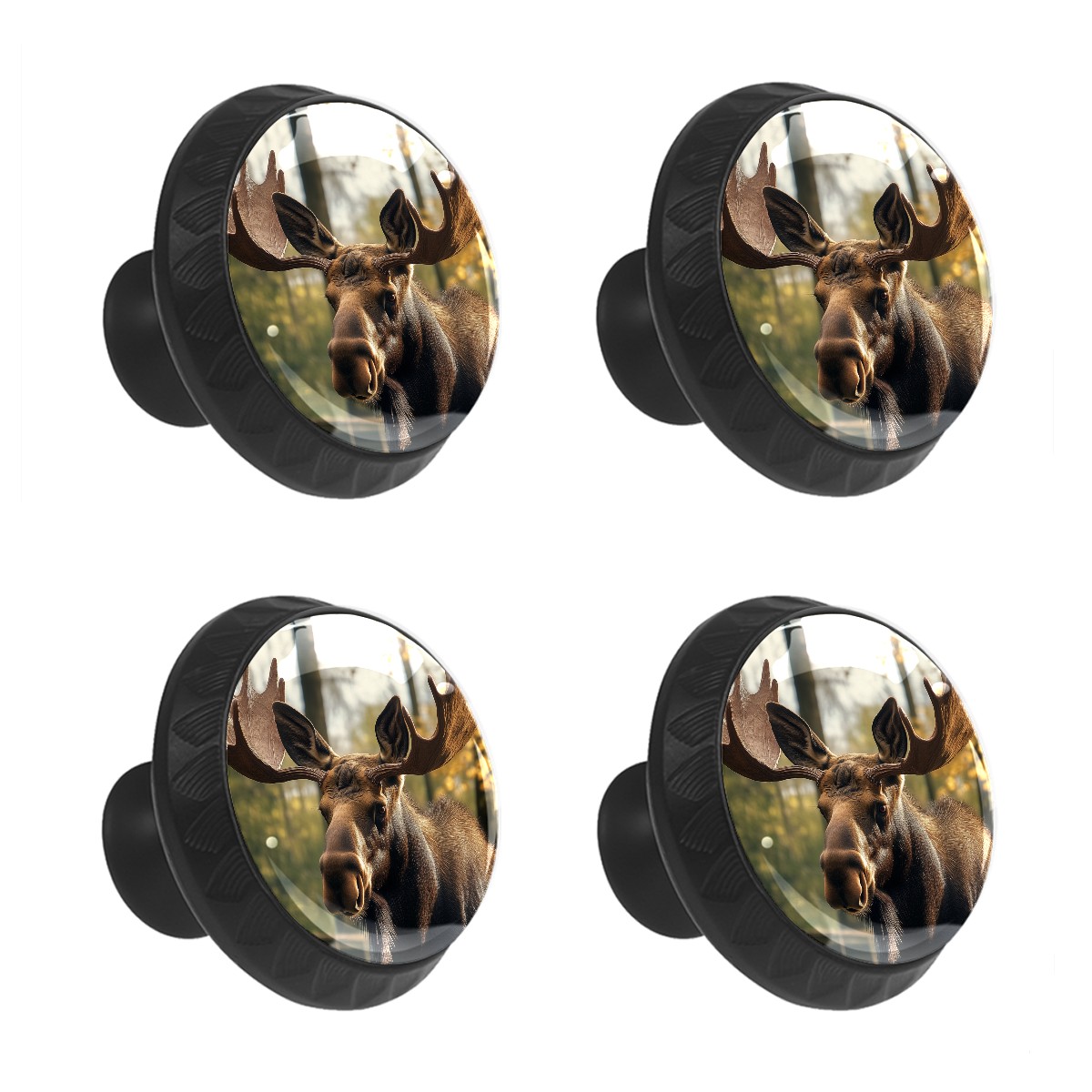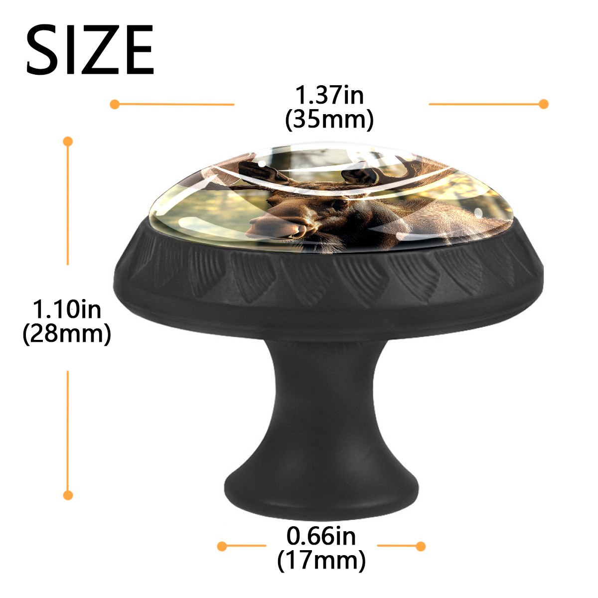 4 Pack Majestic Moose Cabinet Knobs Hardware Crystal Glass Drawer Pulls Knobs for Dresser Kitchen Bathroom Cabinets Drawers Black Furniture Cupboard Wardrobe Handles Round, 1-3/8''
