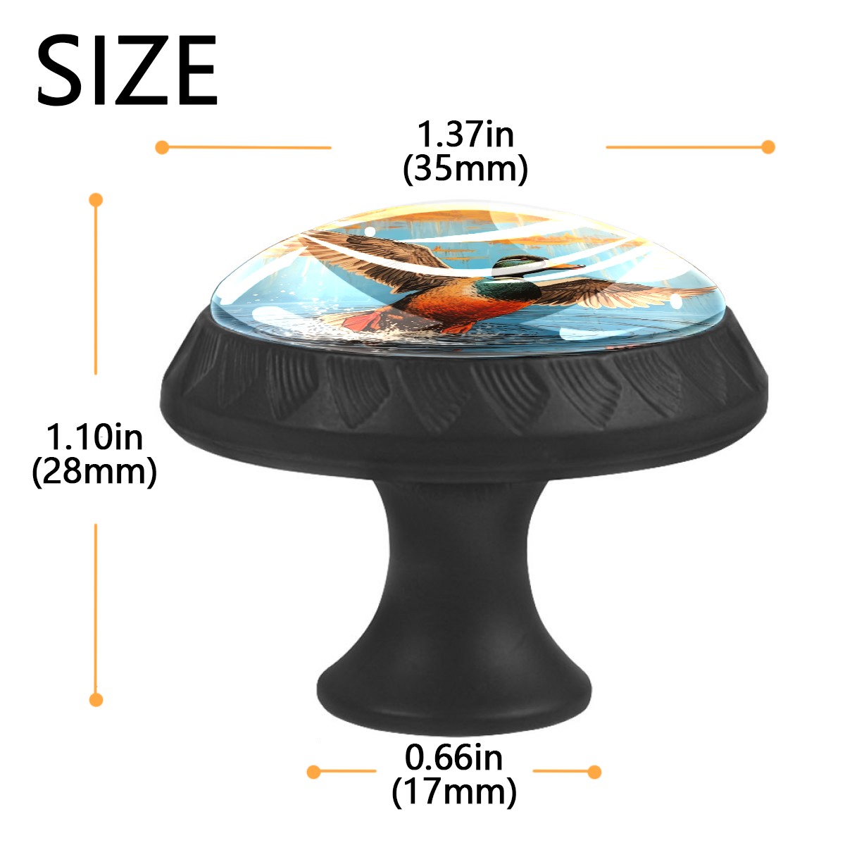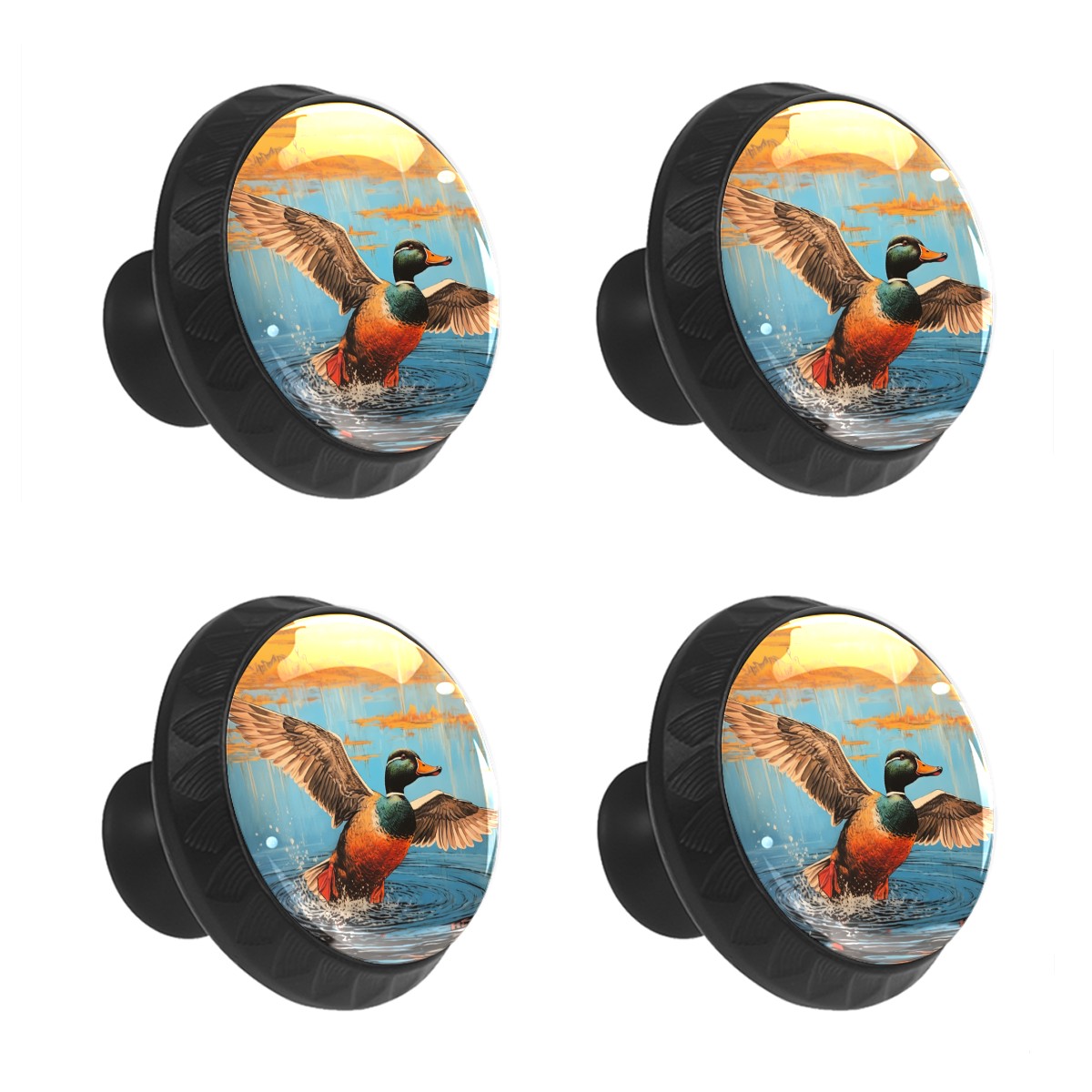 4 Pack Flying Duck Cabinet Knobs Hardware Crystal Glass Drawer Pulls Knobs for Dresser Kitchen Bathroom Cabinets Drawers Black Furniture Cupboard Wardrobe Handles Round, 1-3/8''
