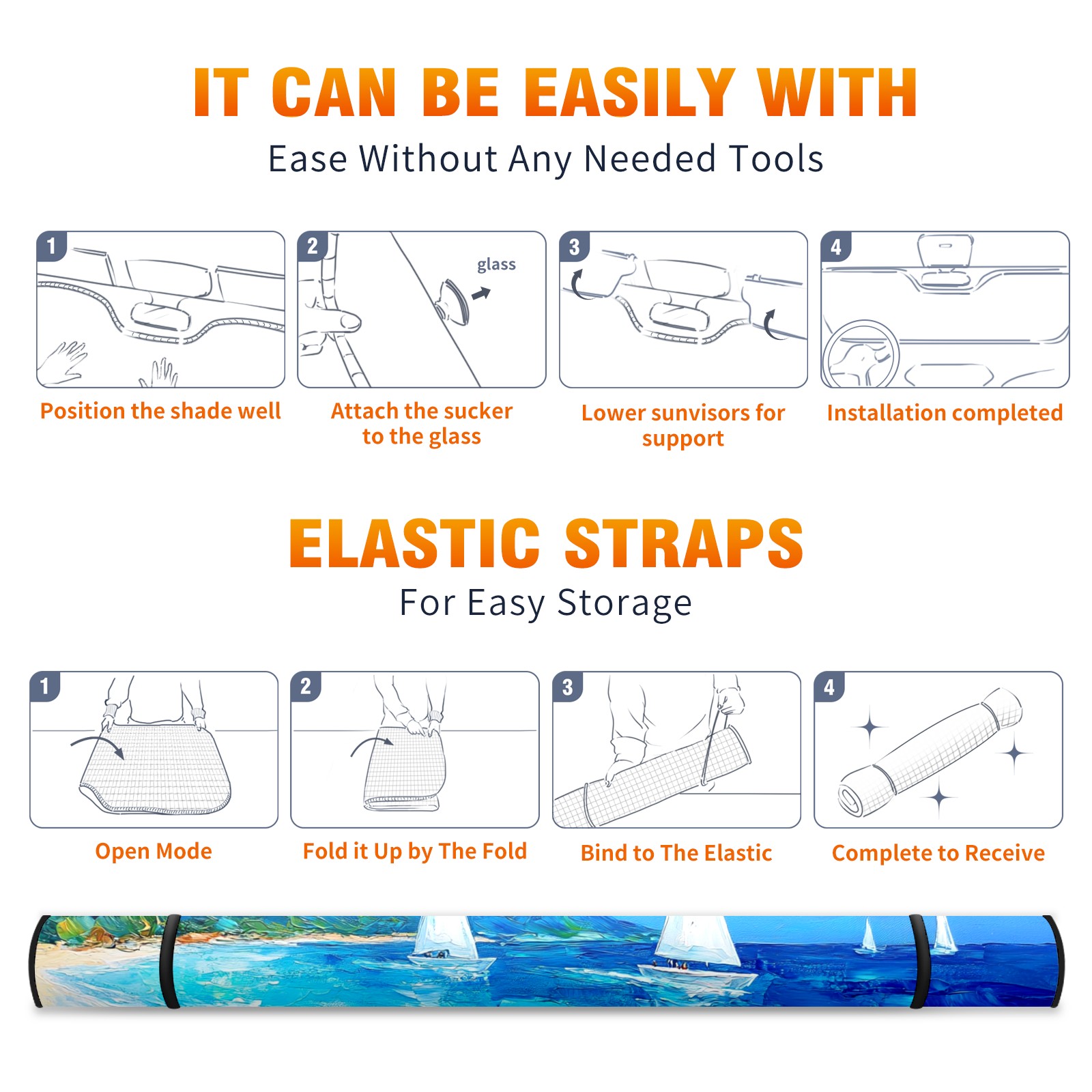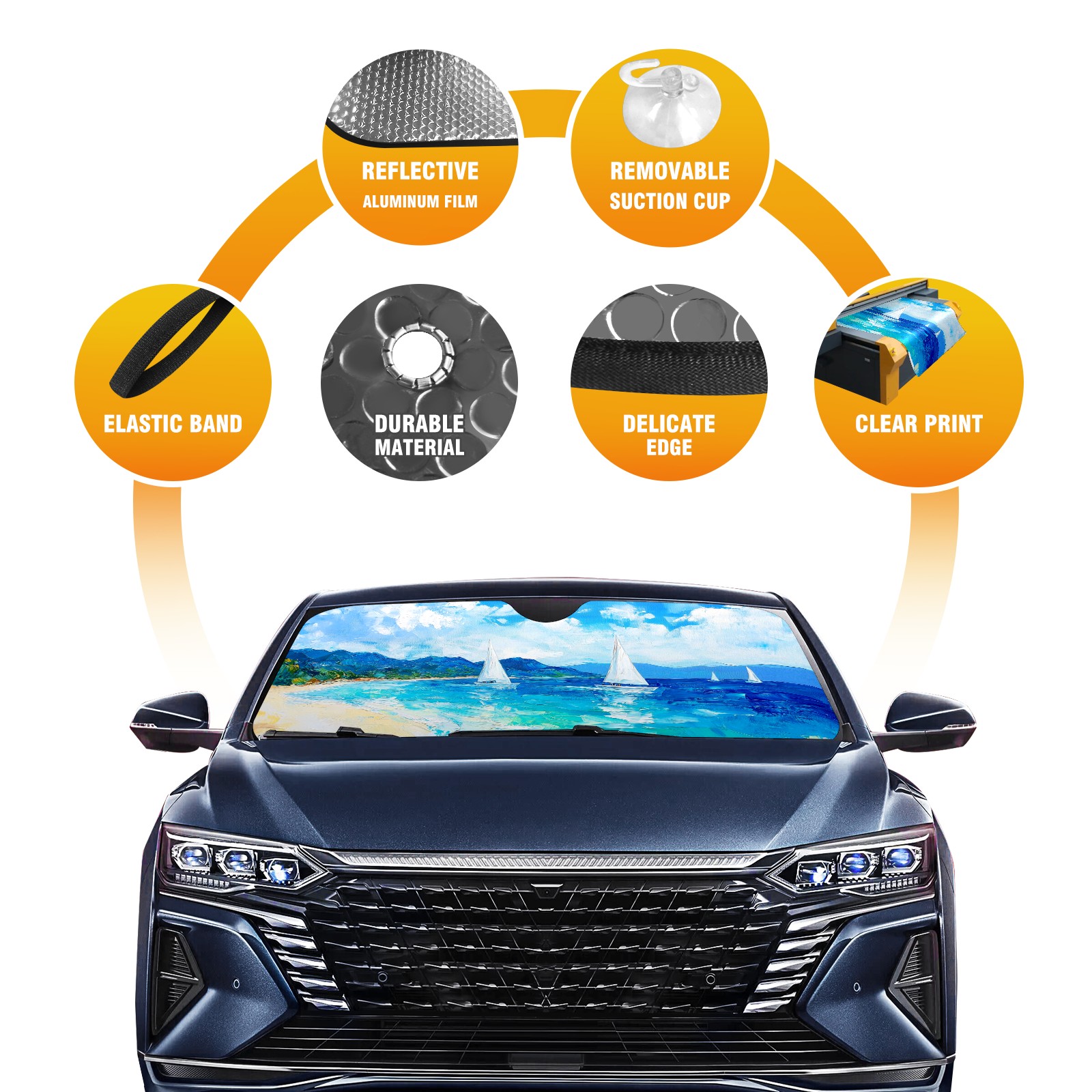 Sailing Sea Car Sun Shade UV Protection Foldable Sunshade for Windshield Heat Insulation Portable Sun Shield for Car Interior Protection Automotive Window Protector