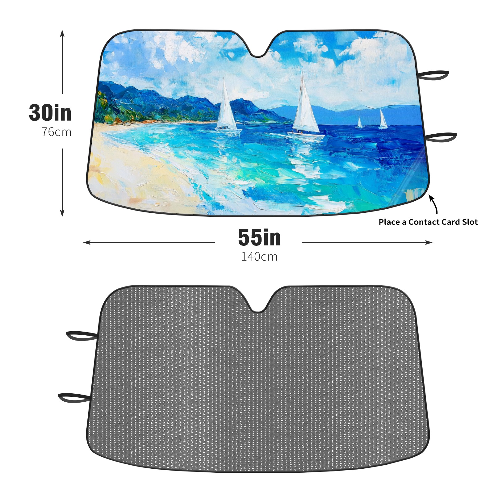 <p><b>Foldable Premium Car Windshield Sunshade is your great solution to reduce your car’s interior temperature dramatically! This is definitely a must-have item for your summer travel!</b></p><p><b>【Precision Fit, Stylish Protection】</b></p><p>55"x30" (140x76cm) universal size with 3cm flexible margins fits curved windshields of most sedans/SUVs.</p><p><b>【Blocking Uv Rays &amp; Heat Insulation】</b></p><p>Our vehicle sunshade provides effective UV, sun, and summer heat protection, preventing leather fading and plastic cracking to keep your car interior pristine.</p><p><b>【Zero-Mark Installation &amp; Space-Saving】</b></p><p>Equipped with dual scratch-free silicone suction cups + adjustable straps: Medical-grade silicone cups hold firmly yet remove cleanly. Folds to A3 size (42x30cm x &lt;2cm thick), tucks discreetly into glove compartments or door pockets.&nbsp;</p>