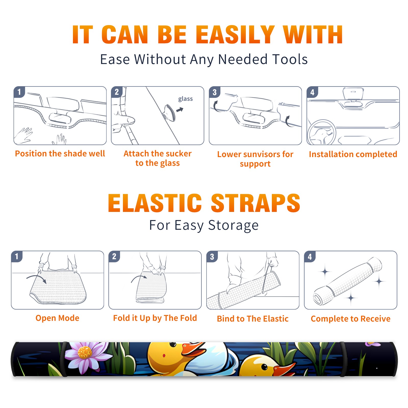 Duck Car Sun Shade UV Protection Foldable Sunshade for Windshield Heat Insulation Portable Sun Shield for Car Interior Protection Automotive Window Protector