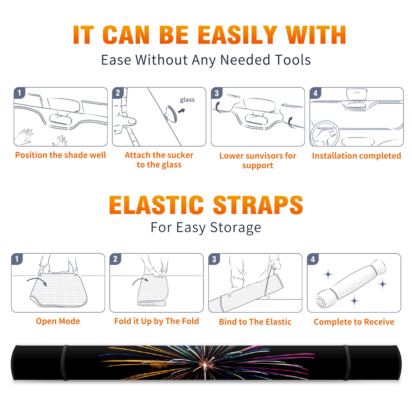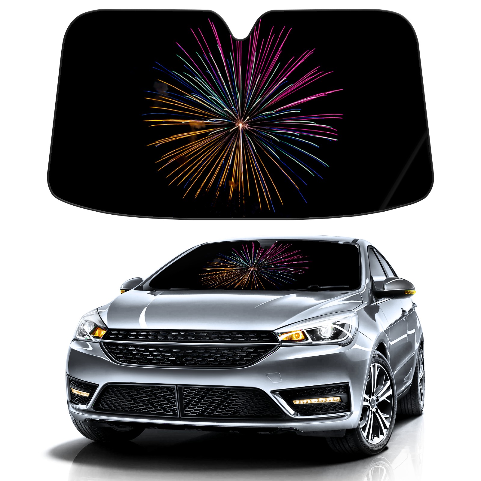 Fireworks Car Sun Shade UV Protection Foldable Sunshade for Windshield Heat Insulation Portable Sun Shield for Car Interior Protection Automotive Window Protector