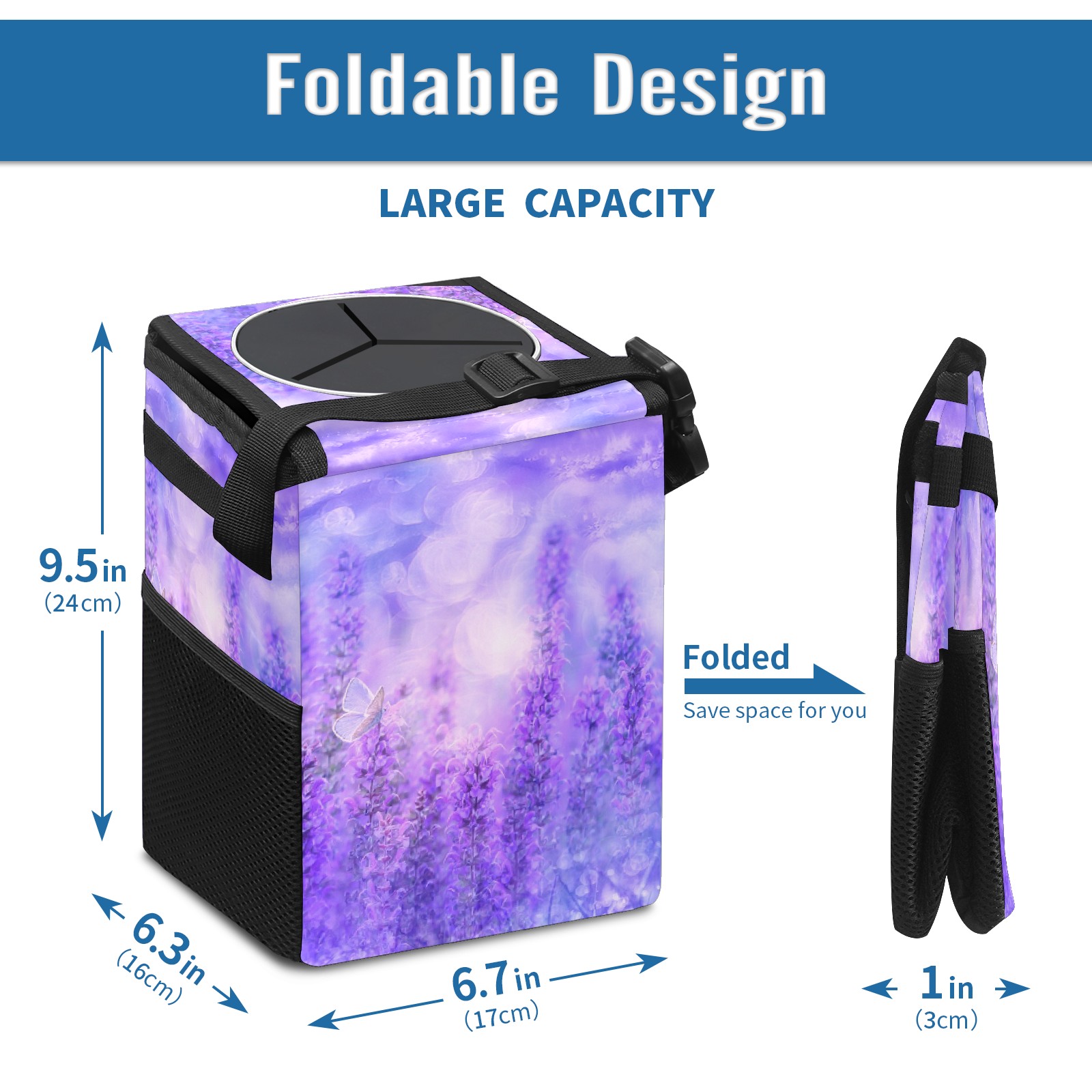 <p><strong>Hanging Car Trash Can with Lid Leak-proof Waterproof Car Garbage Bin Collapsible Portable Car Storage Organizer with Mesh Pockets Large Capacity Trash Bag for Car SUV Trucks</strong></p><p><strong>Features :</strong></p><p><strong>LARGE CAPACITY</strong></p><p><strong>FOLDABLE AND LEAK-PROOF</strong></p><p><strong>EASY TO INSTALL</strong></p><p>- Size of our car garbage bag is 6.7x6.3x9.5&nbsp;inches.</p><p>- The material of trash can for car suv is premium polyester, waterproof and leak-proof, easy to clean and wash.</p><p>- Foldable design, when you're not using the car trash bag, you can fold it up and occupy less space.</p><p>- Our portable and collapsible car trash bag also a small car organizer can be used for storage small stuffs such as tissue, toys, bags, snacks, umbrella, etc.</p><p>- The car trash can is very easy to install, you can simply place it anywhere in your car like the gear shift, the console box, the ground of rear seat or hanging on the front seat back seat, the armrest box.</p><p>- The auto garbage box is&nbsp;ideal for many types of vehicles such as cars, trucks , SUVs, pickups, and van or boat and more.</p>