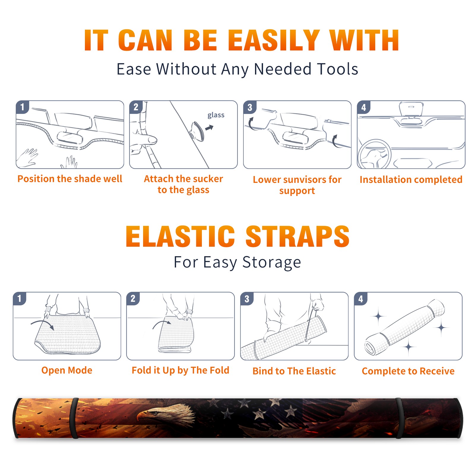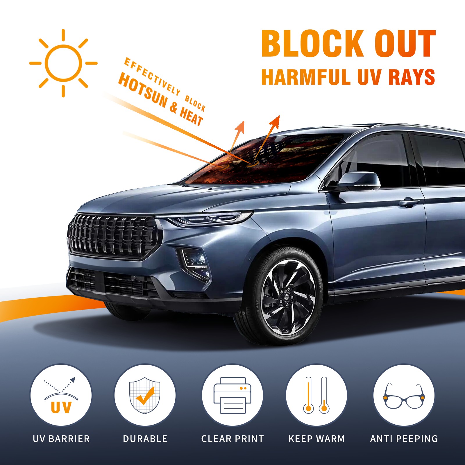 <p><b>Foldable Premium Car Windshield Sunshade is your great solution to reduce your car’s interior temperature dramatically! This is definitely a must-have item for your summer travel!</b></p><p><b>【Precision Fit, Stylish Protection】</b></p><p>55"x30" (140x76cm) universal size with 3cm flexible margins fits curved windshields of most sedans/SUVs.</p><p><b>【Blocking Uv Rays &amp; Heat Insulation】</b></p><p>Our vehicle sunshade provides effective UV, sun, and summer heat protection, preventing leather fading and plastic cracking to keep your car interior pristine.</p><p><b>【Zero-Mark Installation &amp; Space-Saving】</b></p><p>Equipped with dual scratch-free silicone suction cups + adjustable straps: Medical-grade silicone cups hold firmly yet remove cleanly. Folds to A3 size (42x30cm x &lt;2cm thick), tucks discreetly into glove compartments or door pockets.&nbsp;</p>