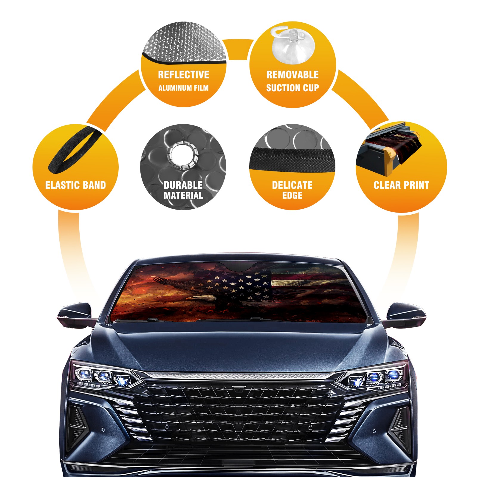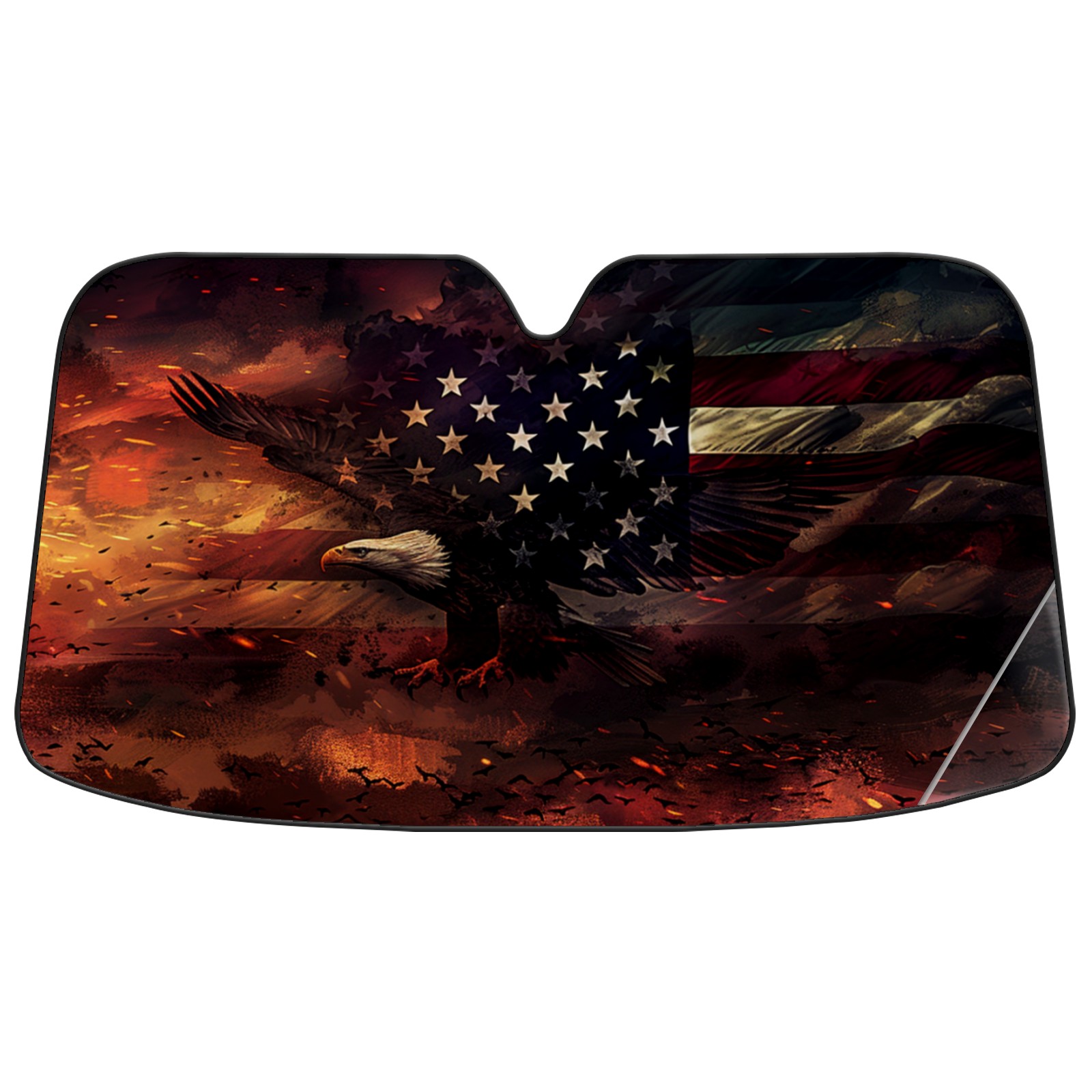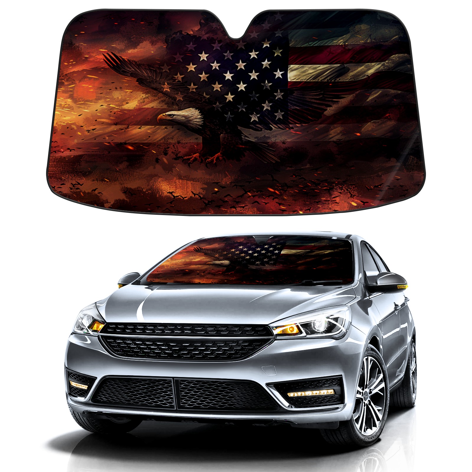 American Flag Fire Car Sun Shade UV Protection Foldable Sunshade for Windshield Heat Insulation Portable Sun Shield for Car Interior Protection Automotive Window Protector