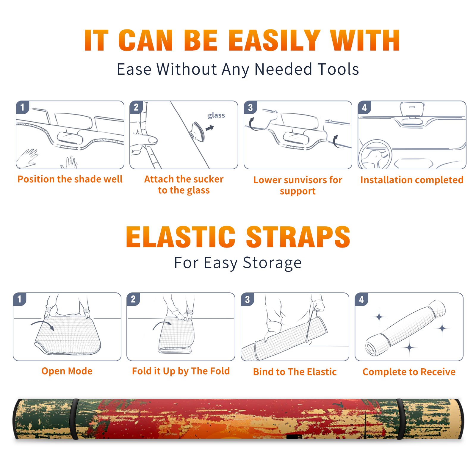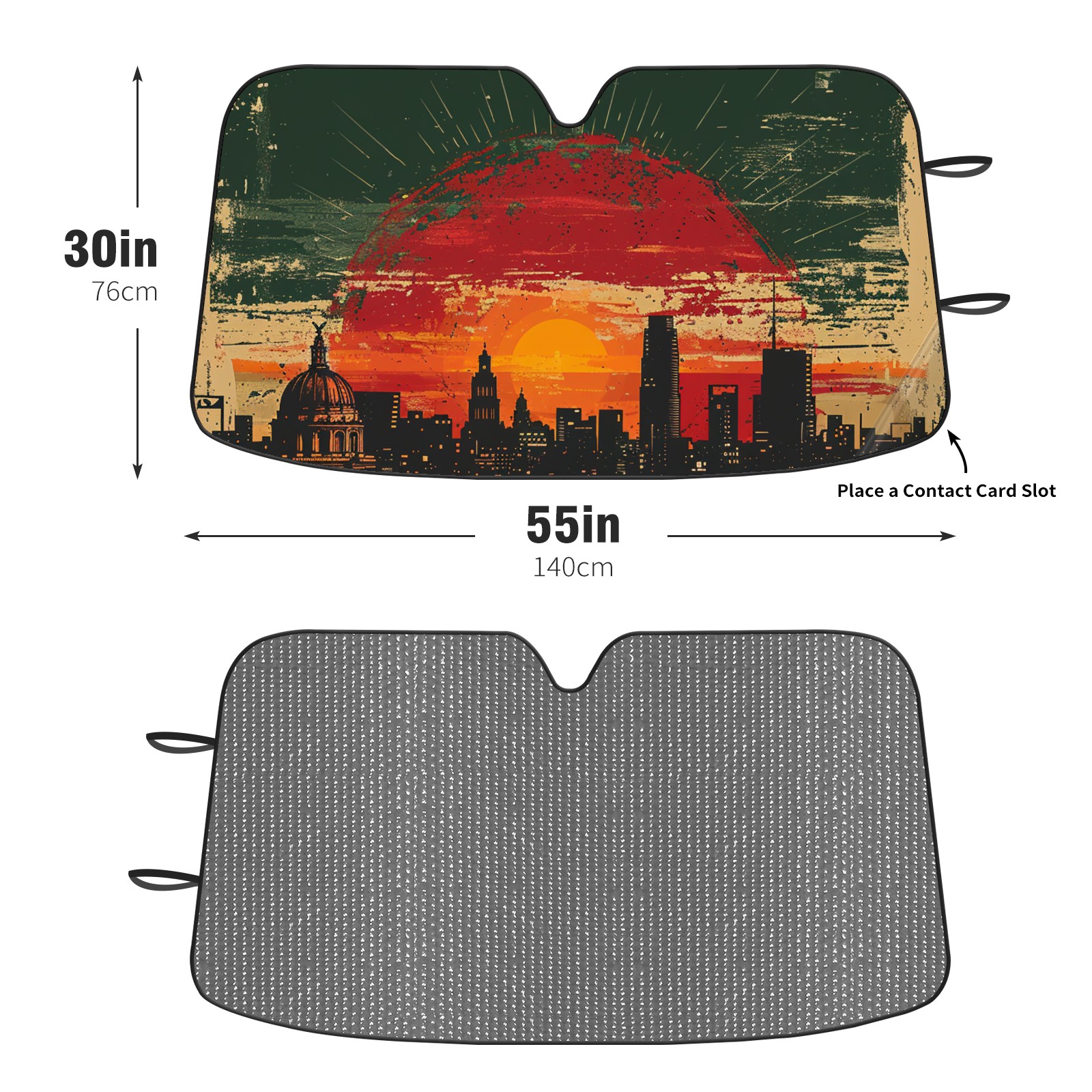 • <p><b>Foldable Premium Car Windshield Sunshade is your great solution to reduce your car’s interior temperature dramatically! This is definitely a must-have item for your summer travel!</b></p><p><b>【Precision Fit, Stylish Protection】</b></p><p>55"x30" (140x76cm) universal size with 3cm flexible margins fits curved windshields of most sedans/SUVs.</p><p><b>【Blocking Uv Rays &amp; Heat Insulation】</b></p><p>Our vehicle sunshade provides effective UV, sun, and summer heat protection, preventing leather fading and plastic cracking to keep your car interior pristine.</p><p><b>【Zero-Mark Installation &amp; Space-Saving】</b></p><p>Equipped with dual scratch-free silicone suction cups + adjustable straps: Medical-grade silicone cups hold firmly yet remove cleanly. Folds to A3 size (42x30cm x &lt;2cm thick), tucks discreetly into glove compartments or door pockets.&nbsp;</p>