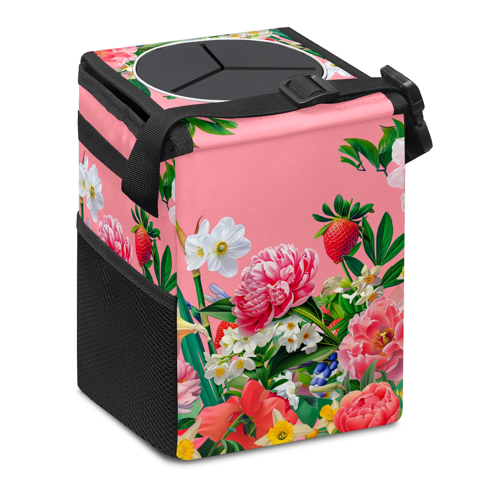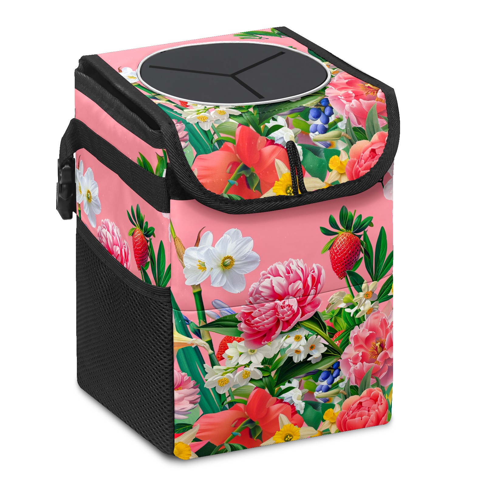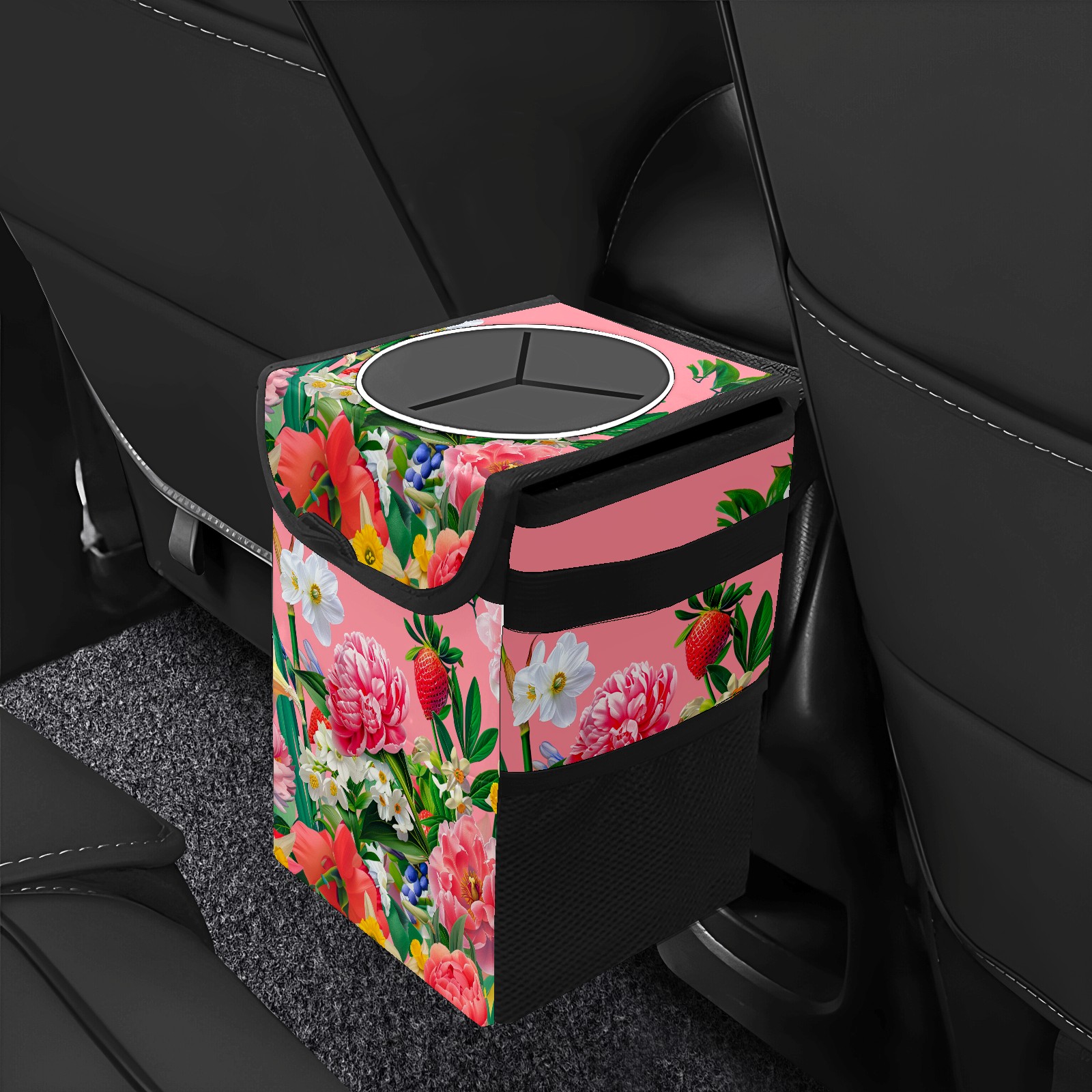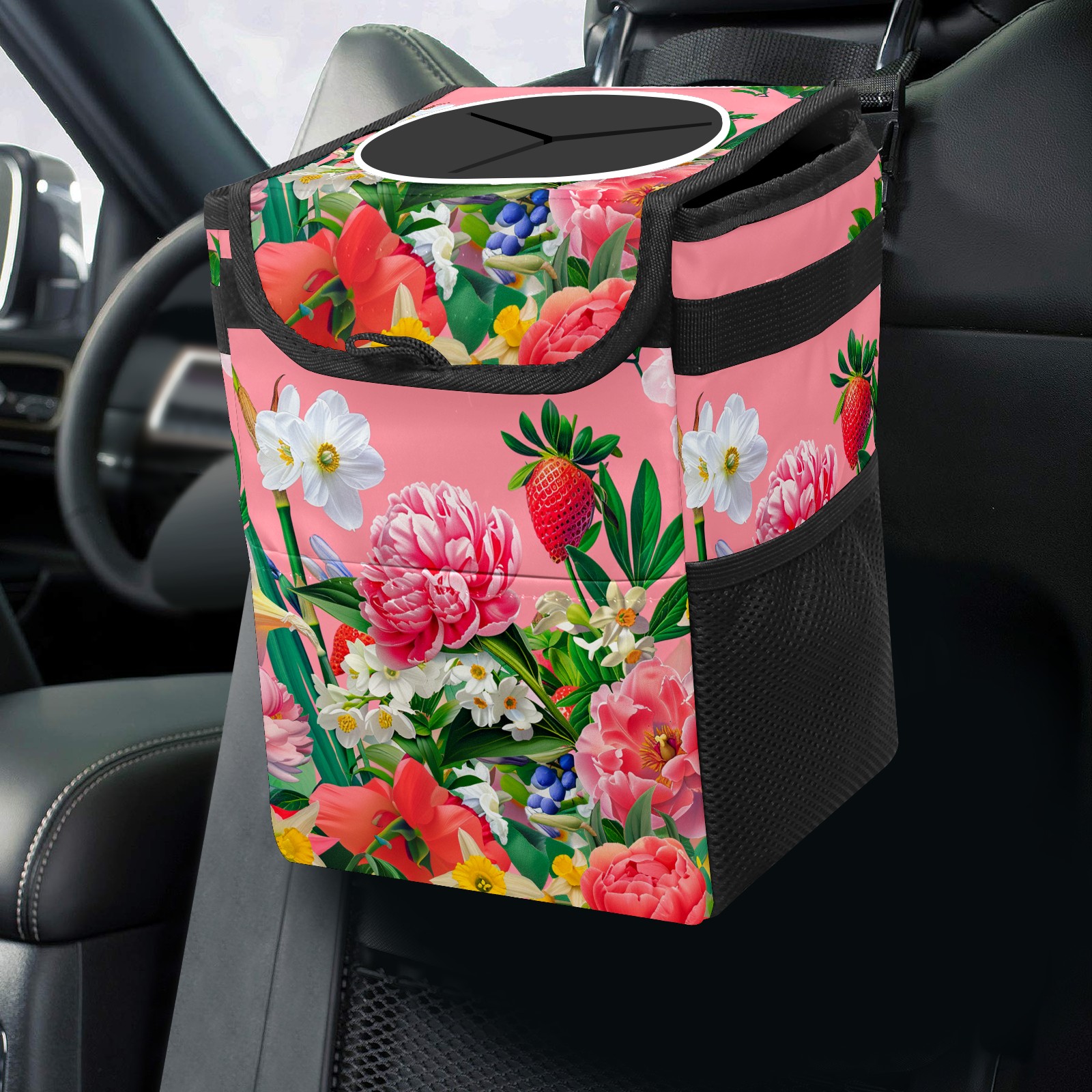 Car Trash Can Bin Garden Flowers Pink (2) Hanging Trash Can for Cars SUV for Back Seat, Collapsible Leakproof Vehicle Garbage Container Bag with Lid Storage Pockets Car Accessories Cute