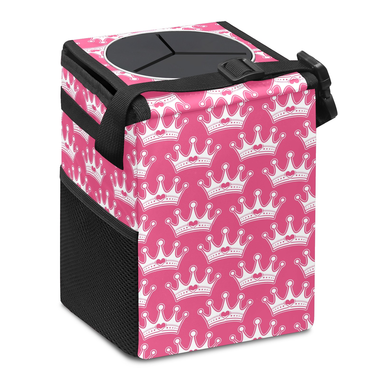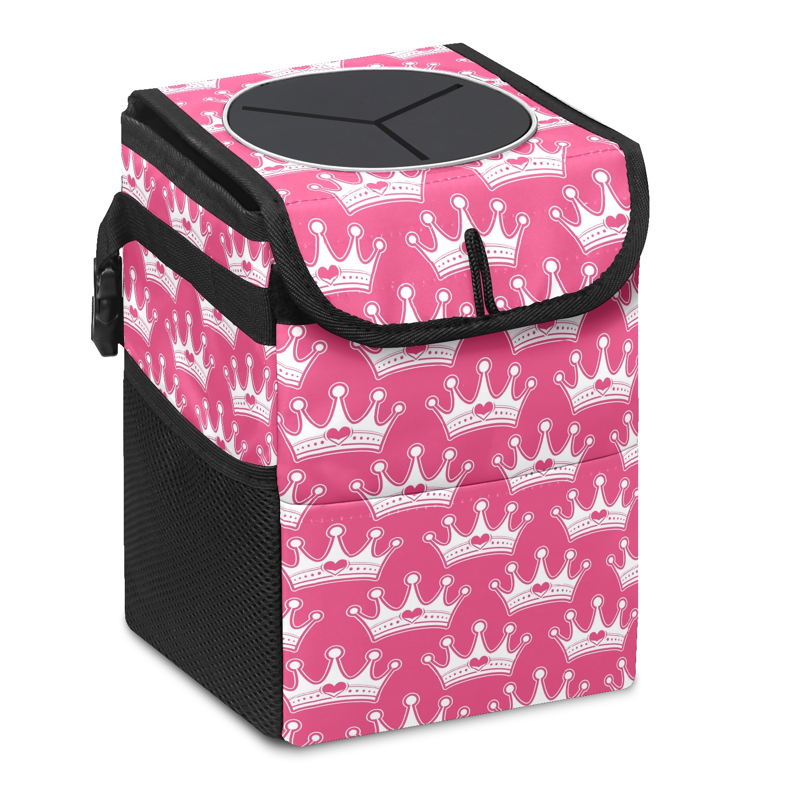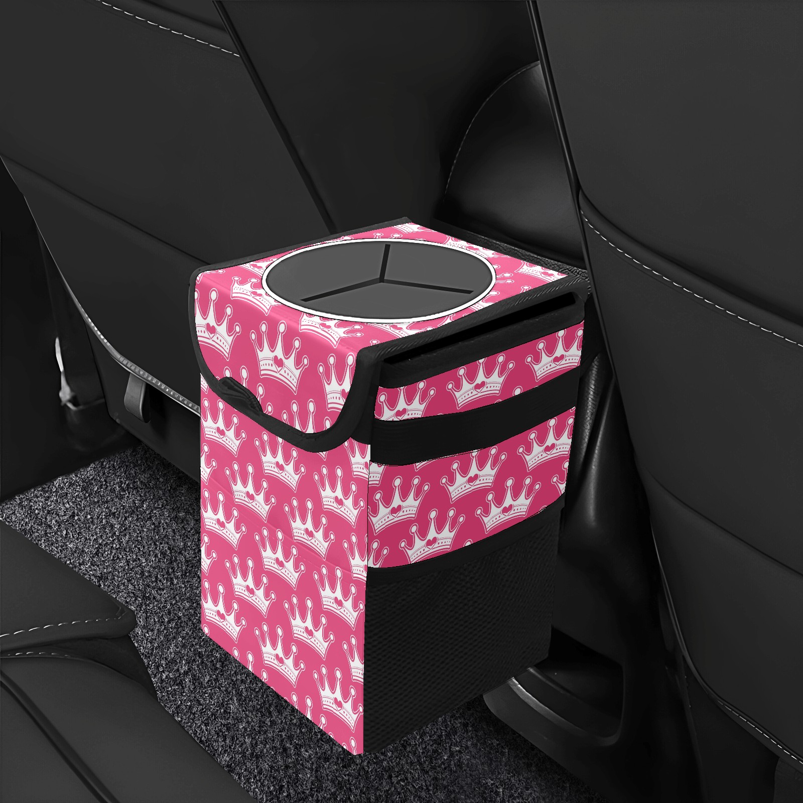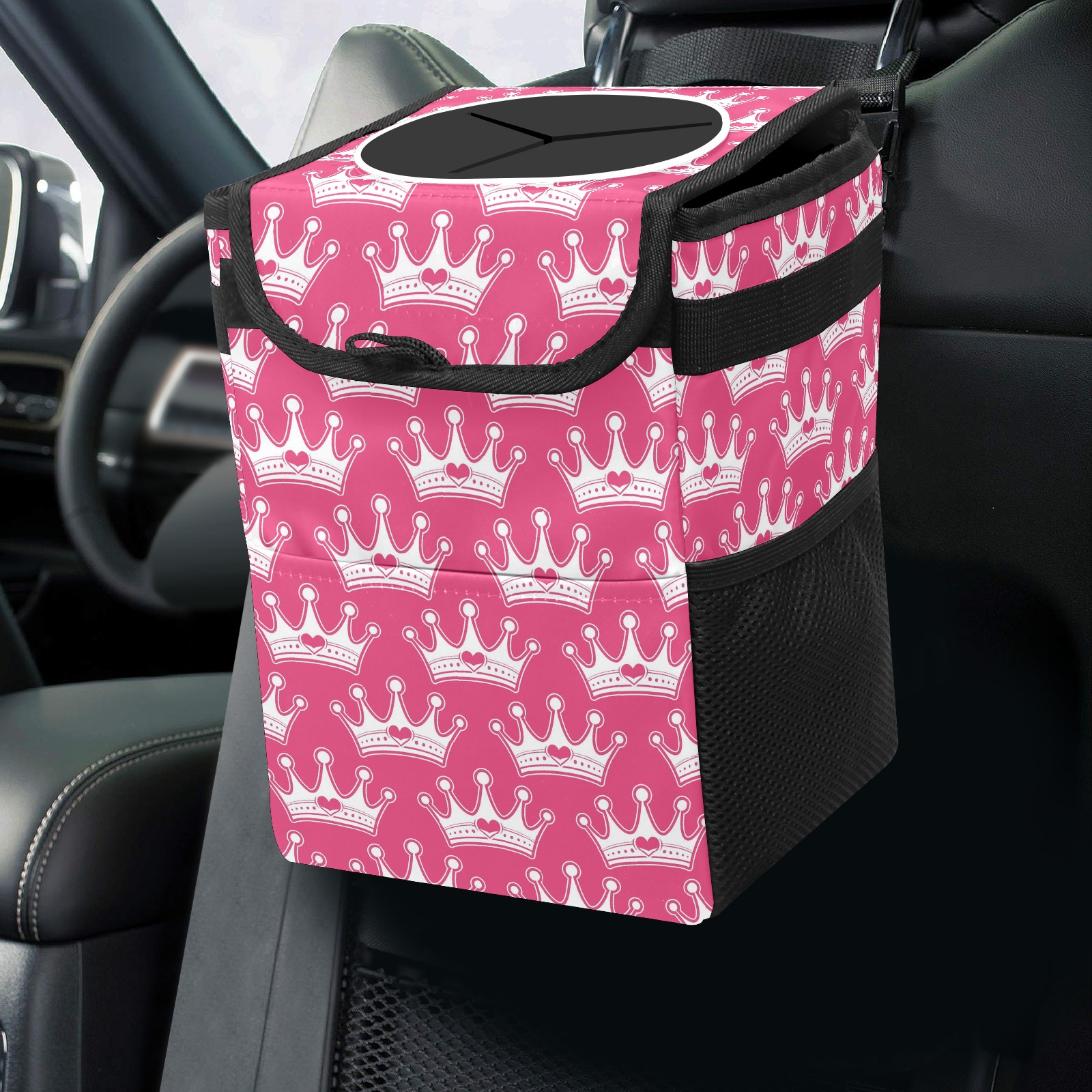 Car Trash Can Bin Pink Girly Princess Hanging Trash Can for Cars SUV for Back Seat, Collapsible Leakproof Vehicle Garbage Container Bag with Lid Storage Pockets Car Accessories Cute