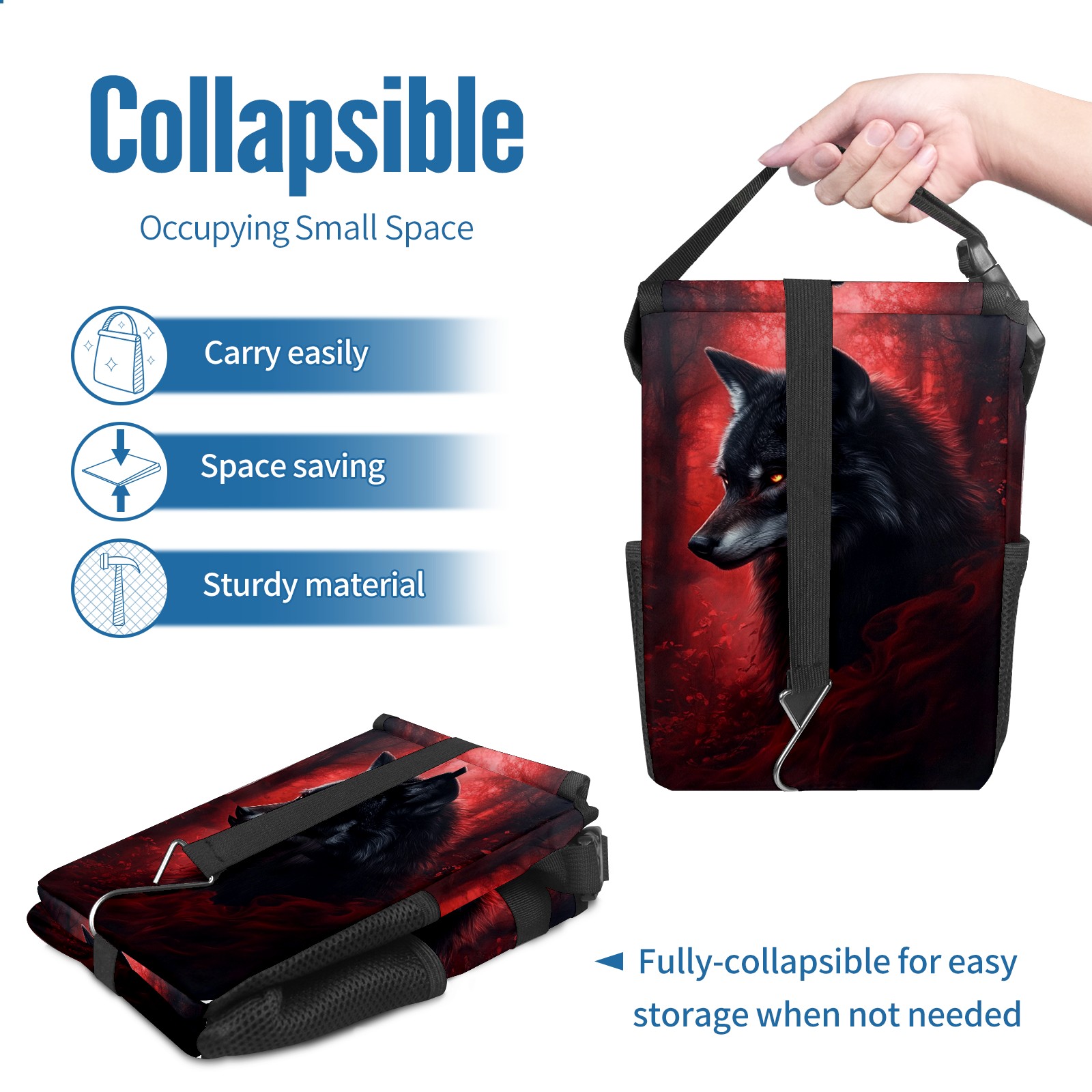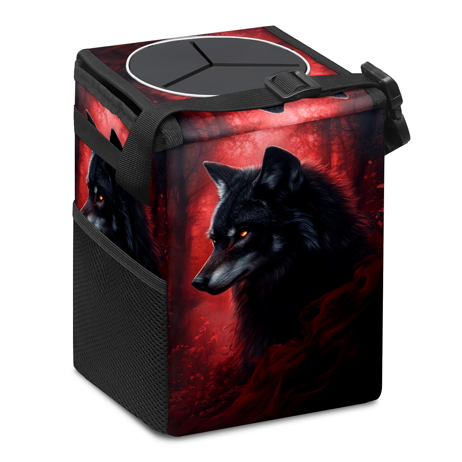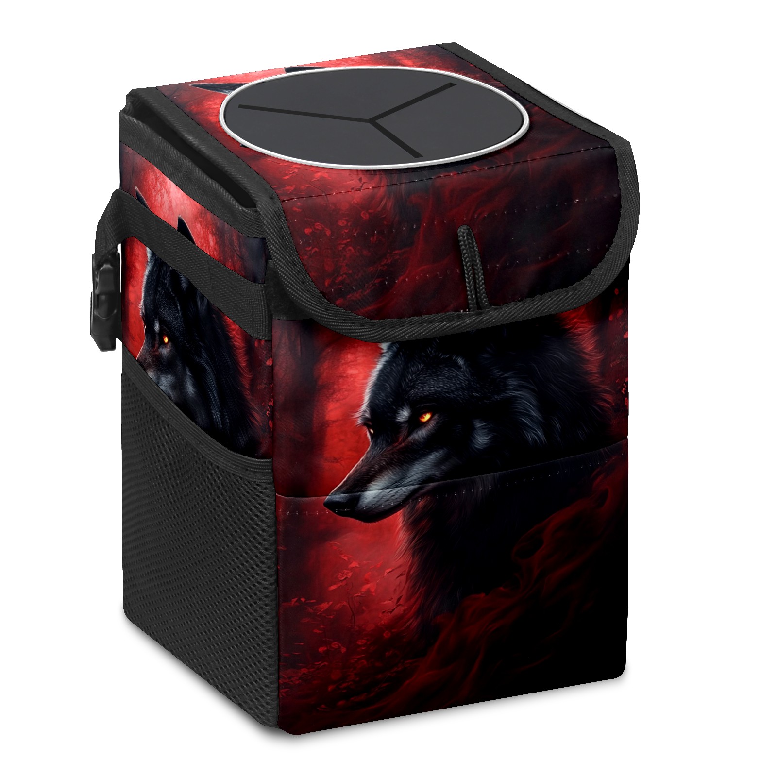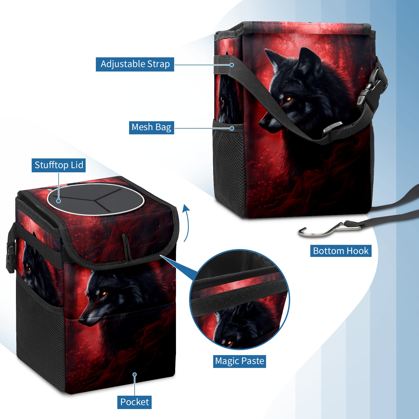 Car Trash Can Bin Black Wolf Hanging Trash Can for Cars SUV for Back Seat, Collapsible Leakproof Vehicle Garbage Container Bag with Lid Storage Pockets Car Accessories Cute