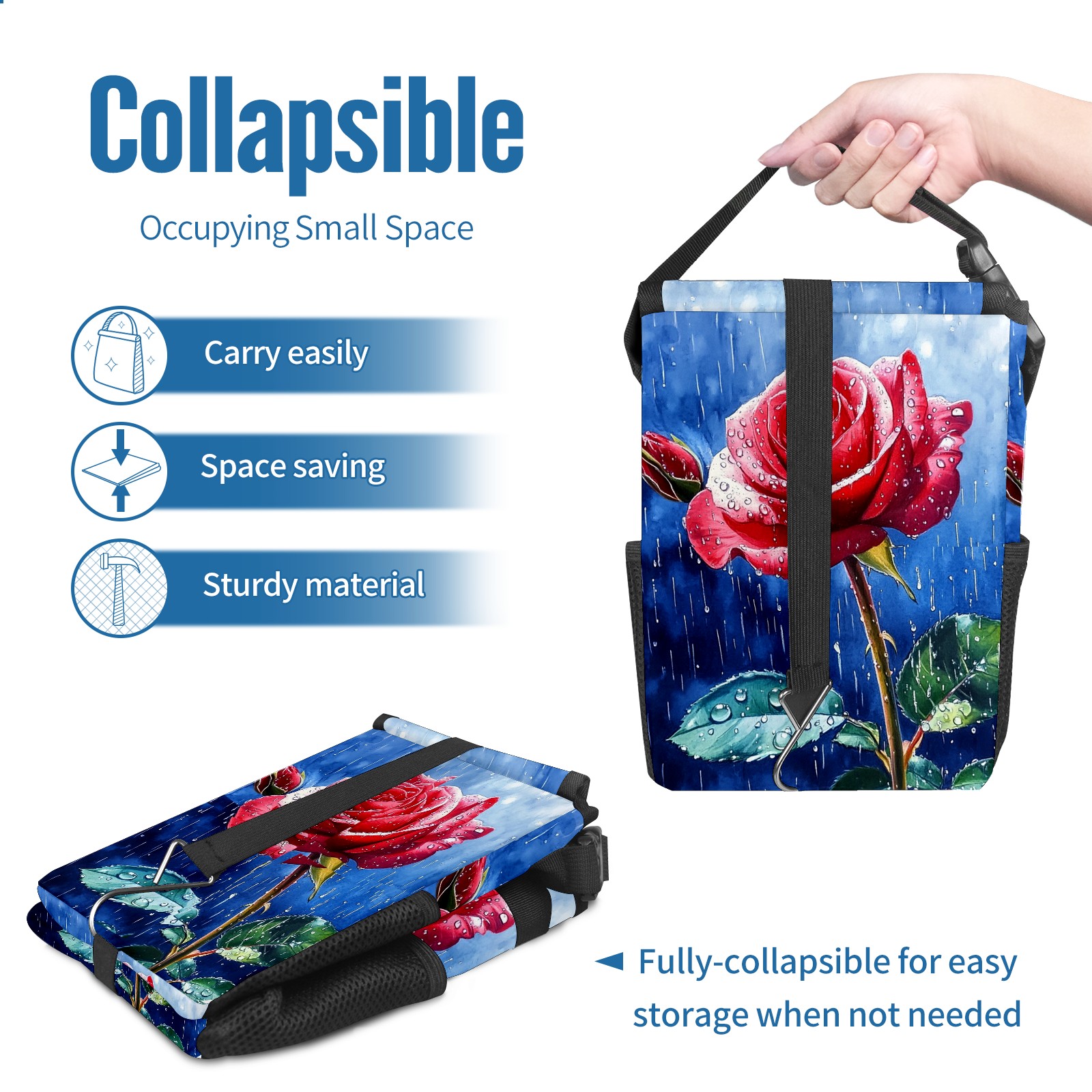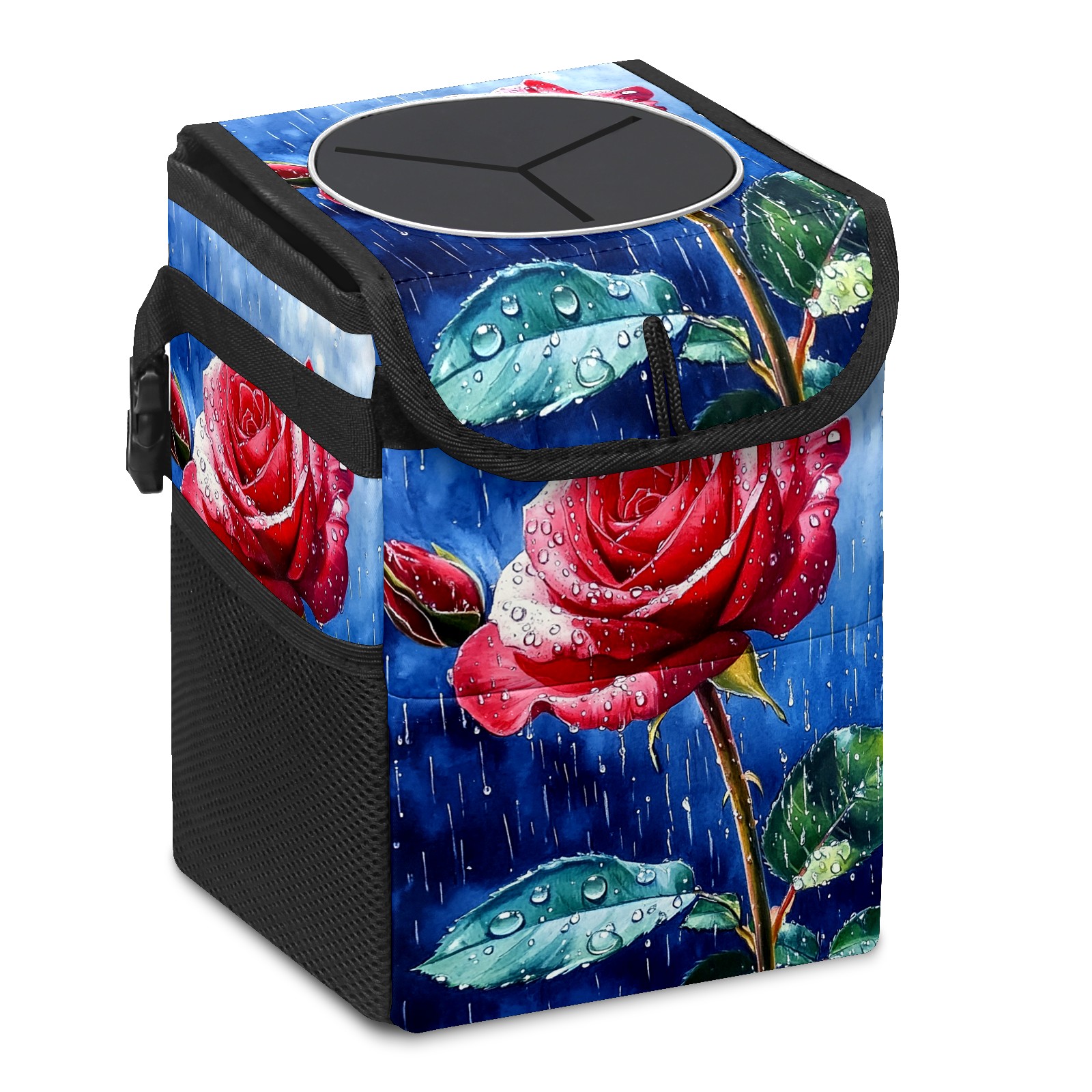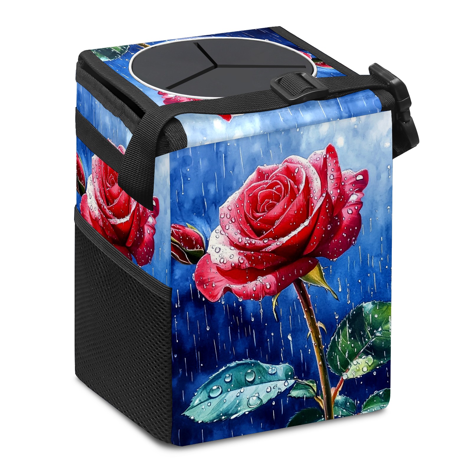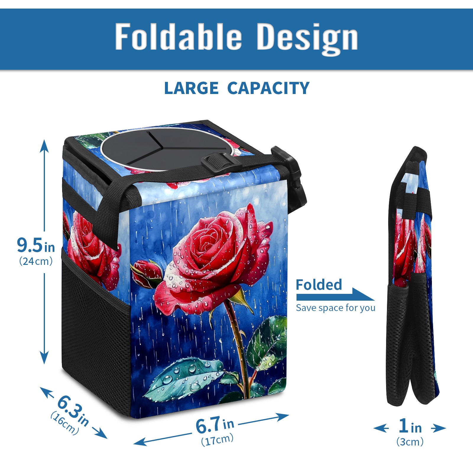 Car Trash Can Bin Red Rose Hanging Trash Can for Cars SUV for Back Seat, Collapsible Leakproof Vehicle Garbage Container Bag with Lid Storage Pockets Car Accessories Cute