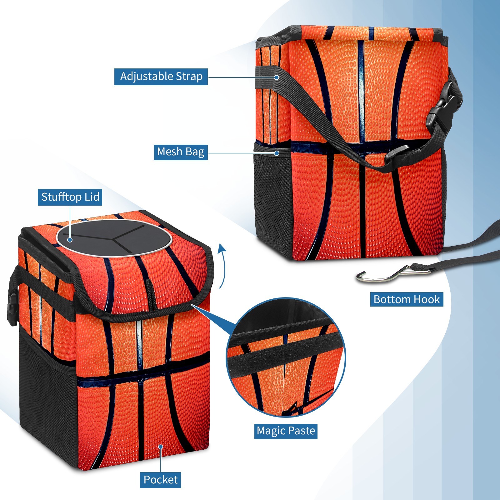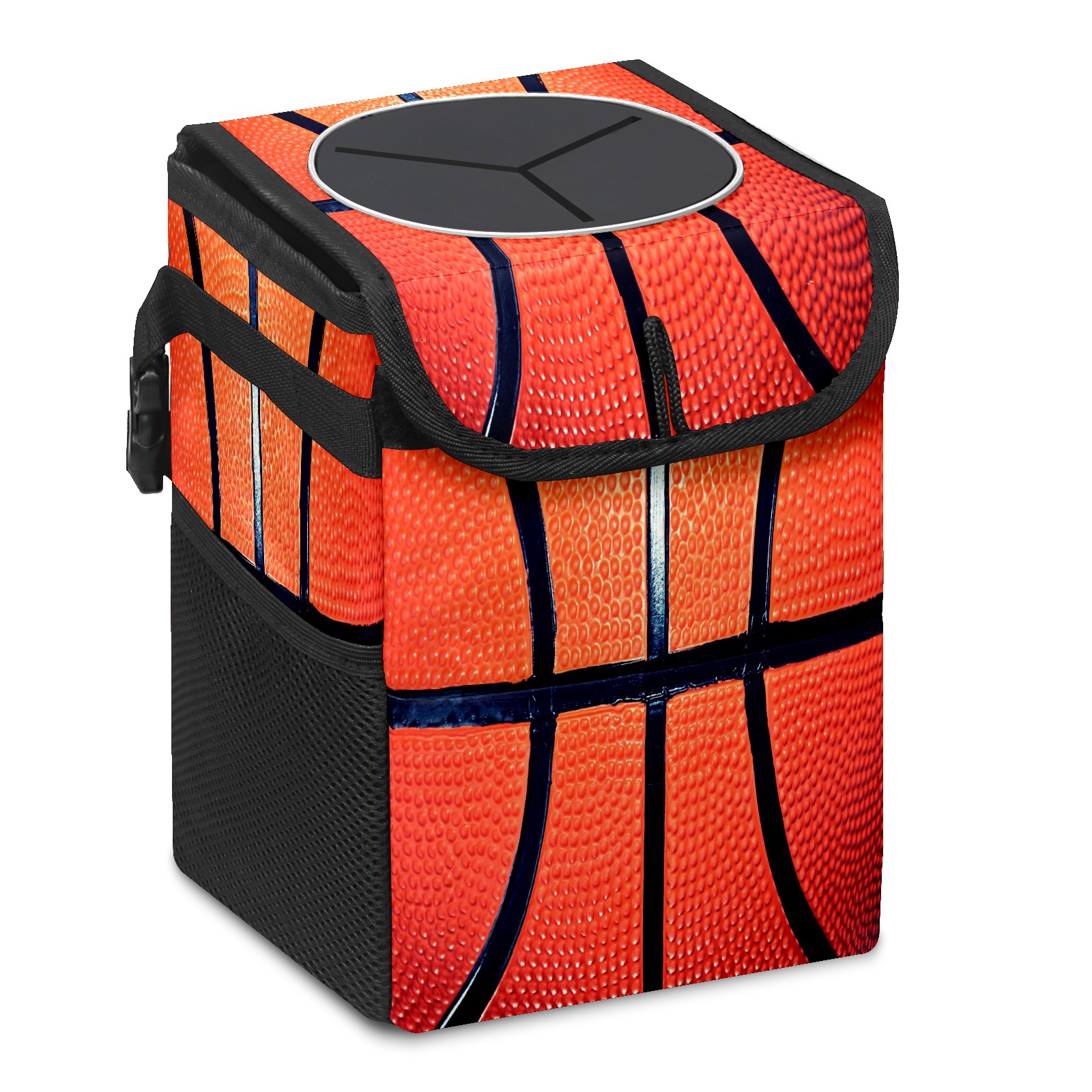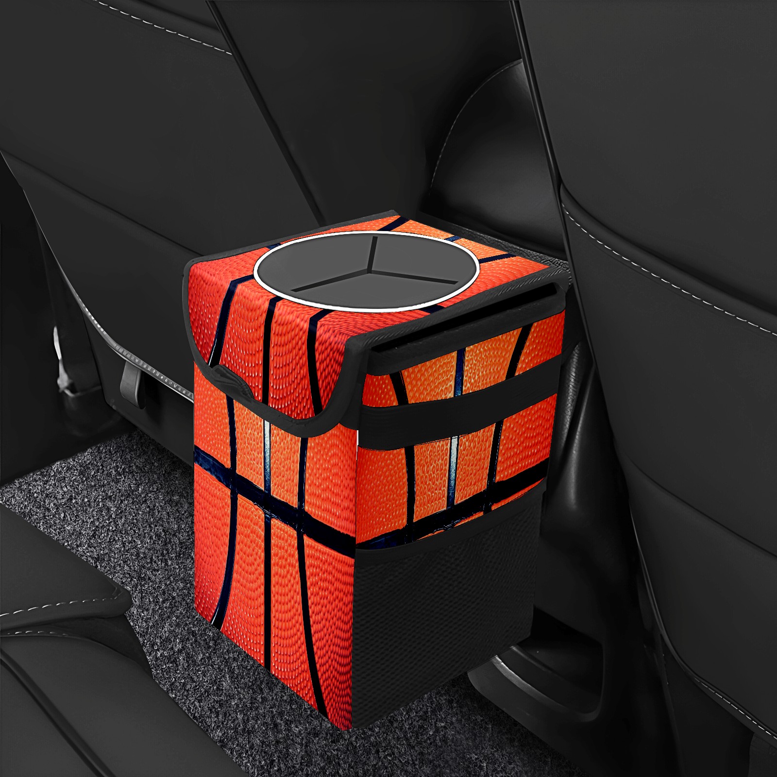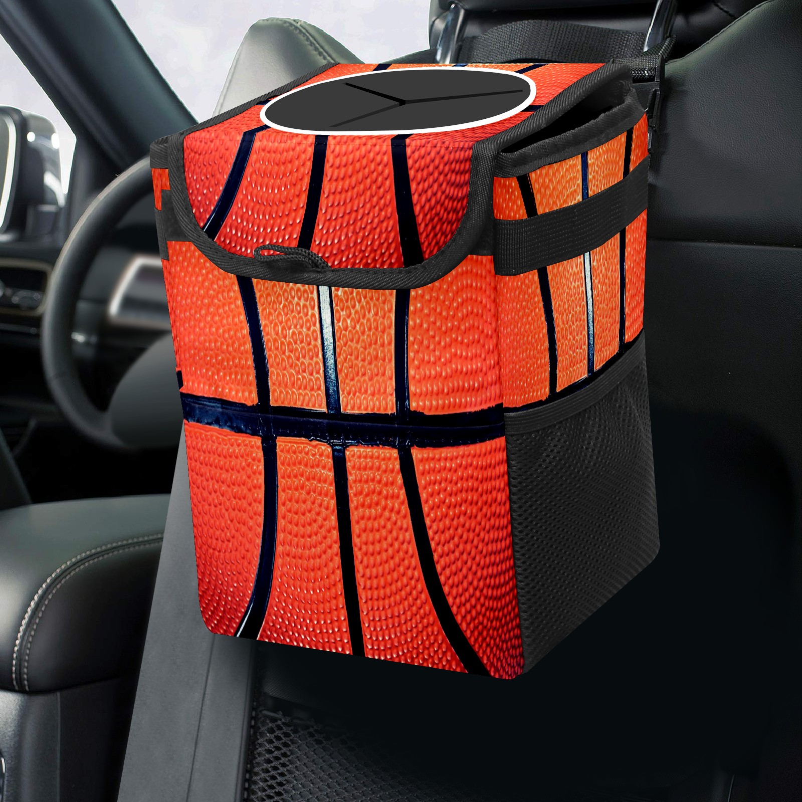 Car Trash Can Bin Sport Basketball Surface Hanging Trash Can for Cars SUV for Back Seat, Collapsible Leakproof Vehicle Garbage Container Bag with Lid Storage Pockets Car Accessories Cute