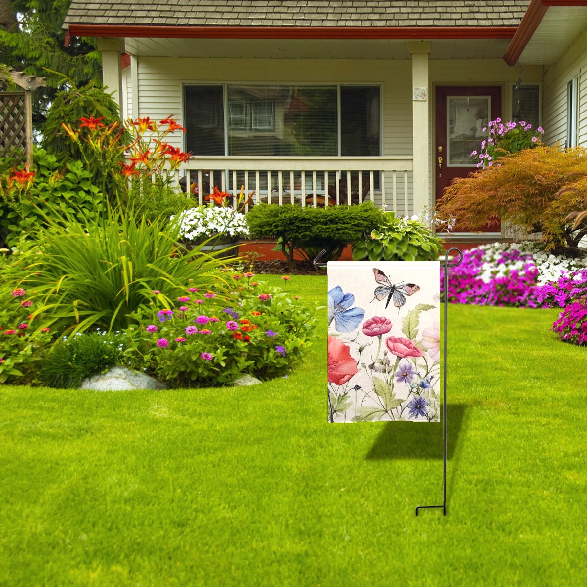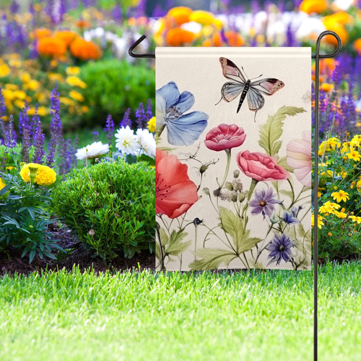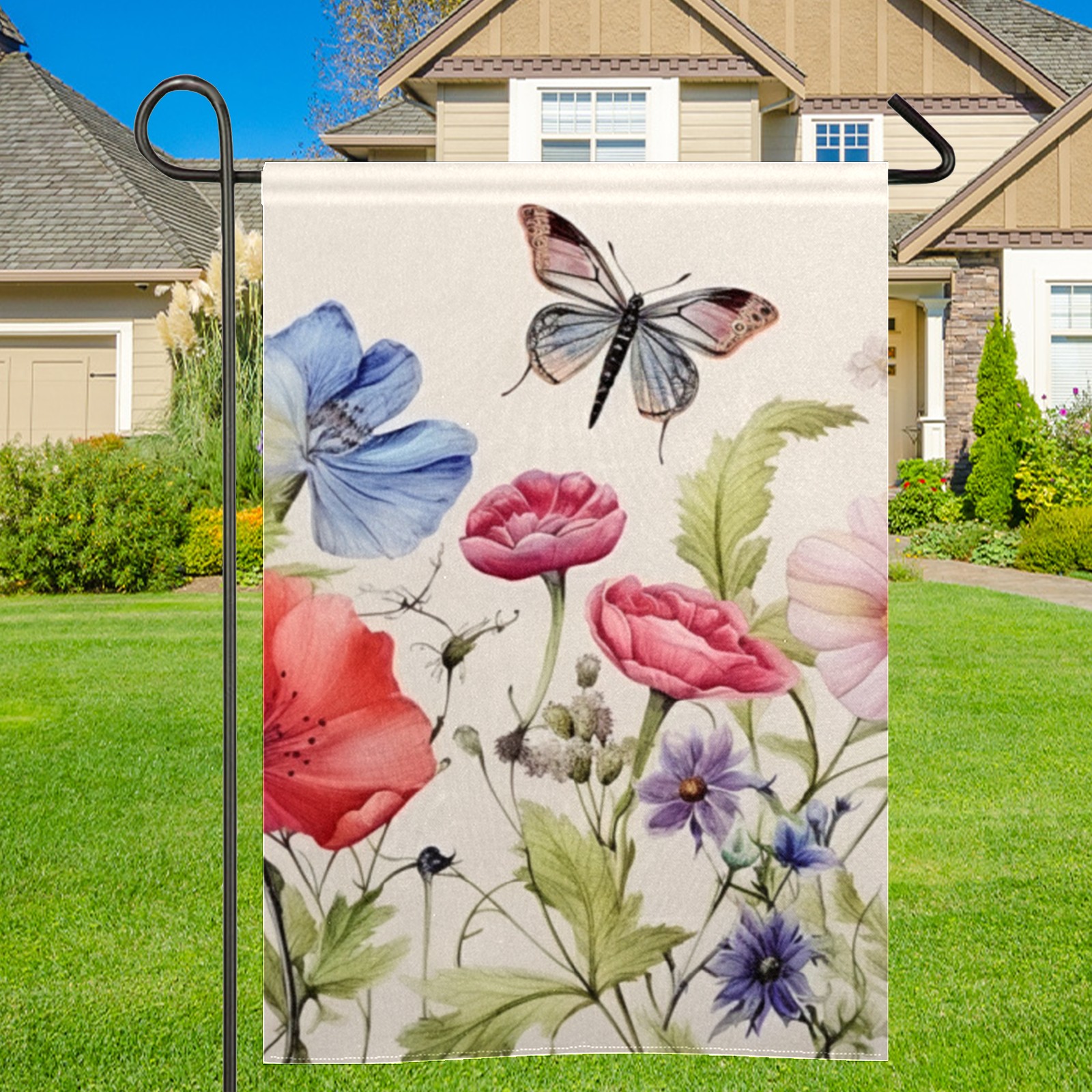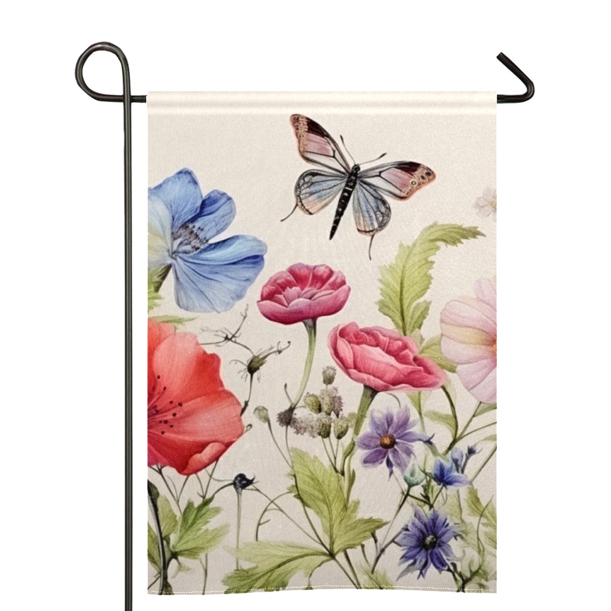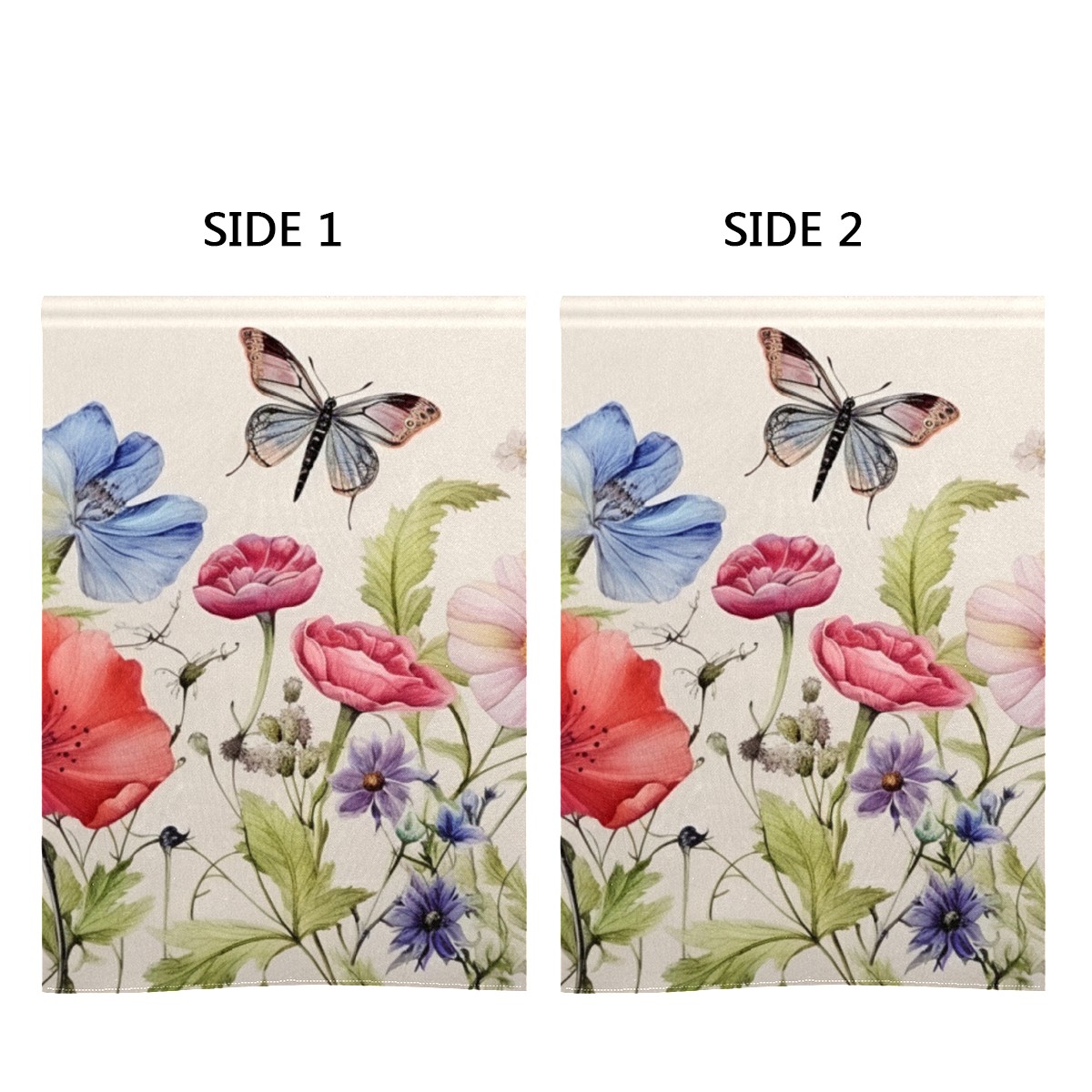 Watercolor Flowers And Dragonflies Waterproof Garden Flag for Outdoor Yard, Lawn, Porch Decor - All-Season Holiday Party/Patio Landscape Decoration (12x18 Inch)