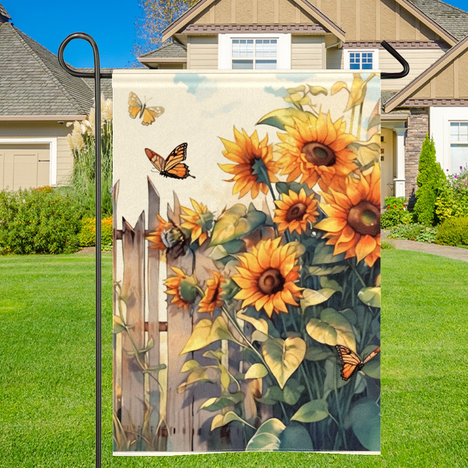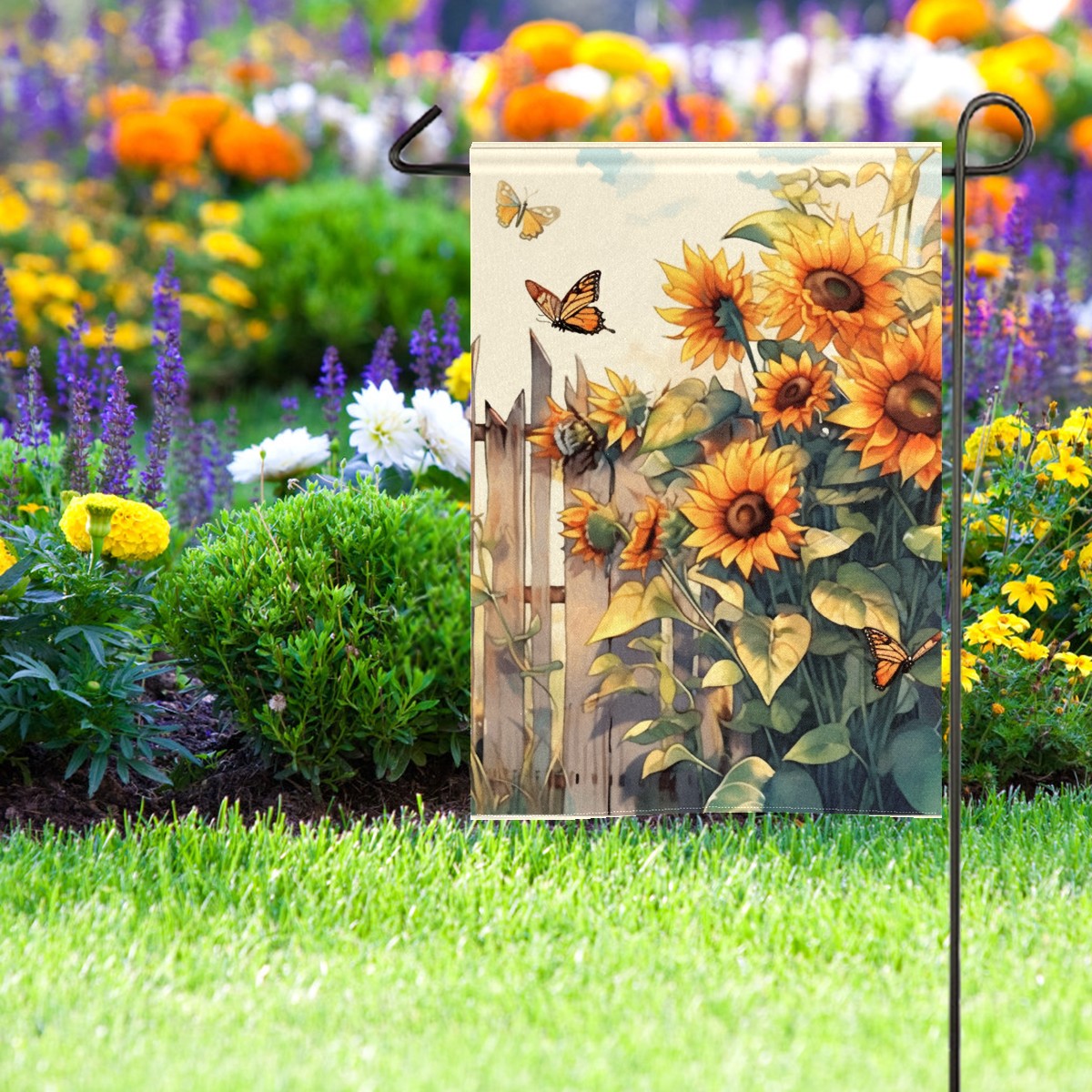 Fence Sunflower Waterproof Garden Flag for Outdoor Yard, Lawn, Porch Decor - All-Season Holiday Party/Patio Landscape Decoration (12x18 Inch)