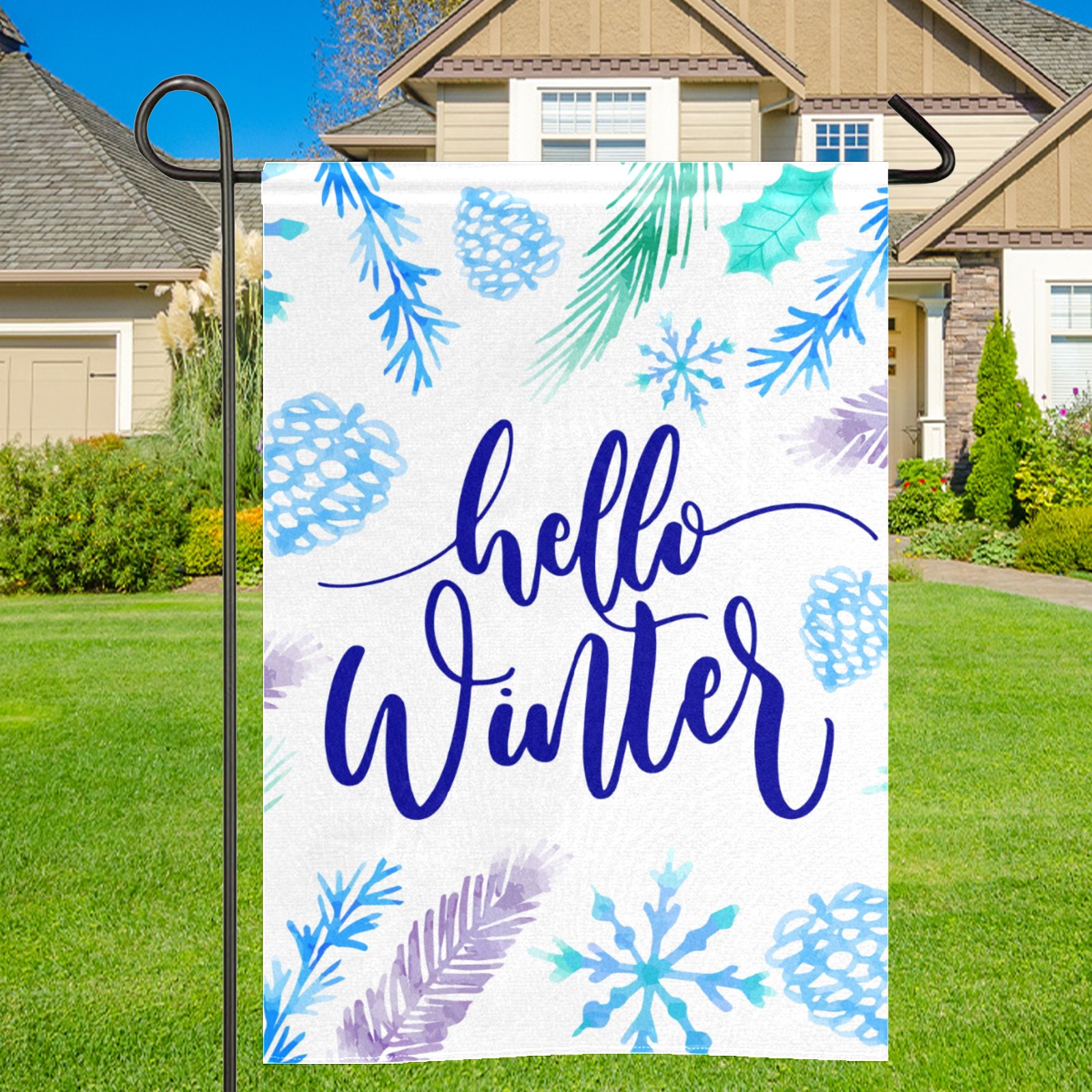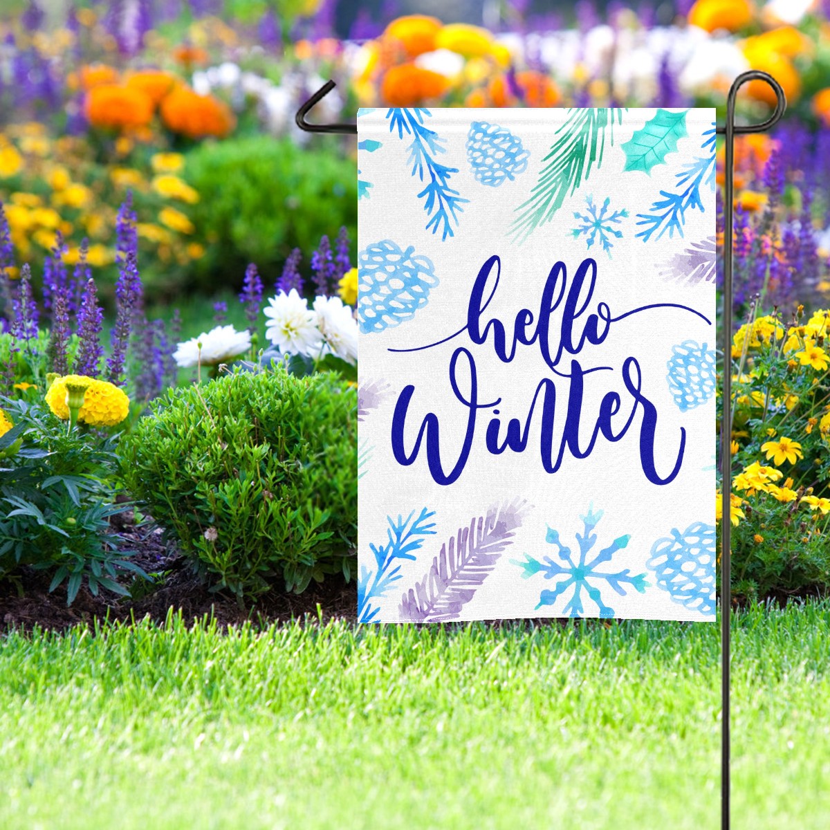 Hello Winter Waterproof Garden Flag for Outdoor Yard, Lawn, Porch Decor - All-Season Holiday Party/Patio Landscape Decoration (12x18 Inch)