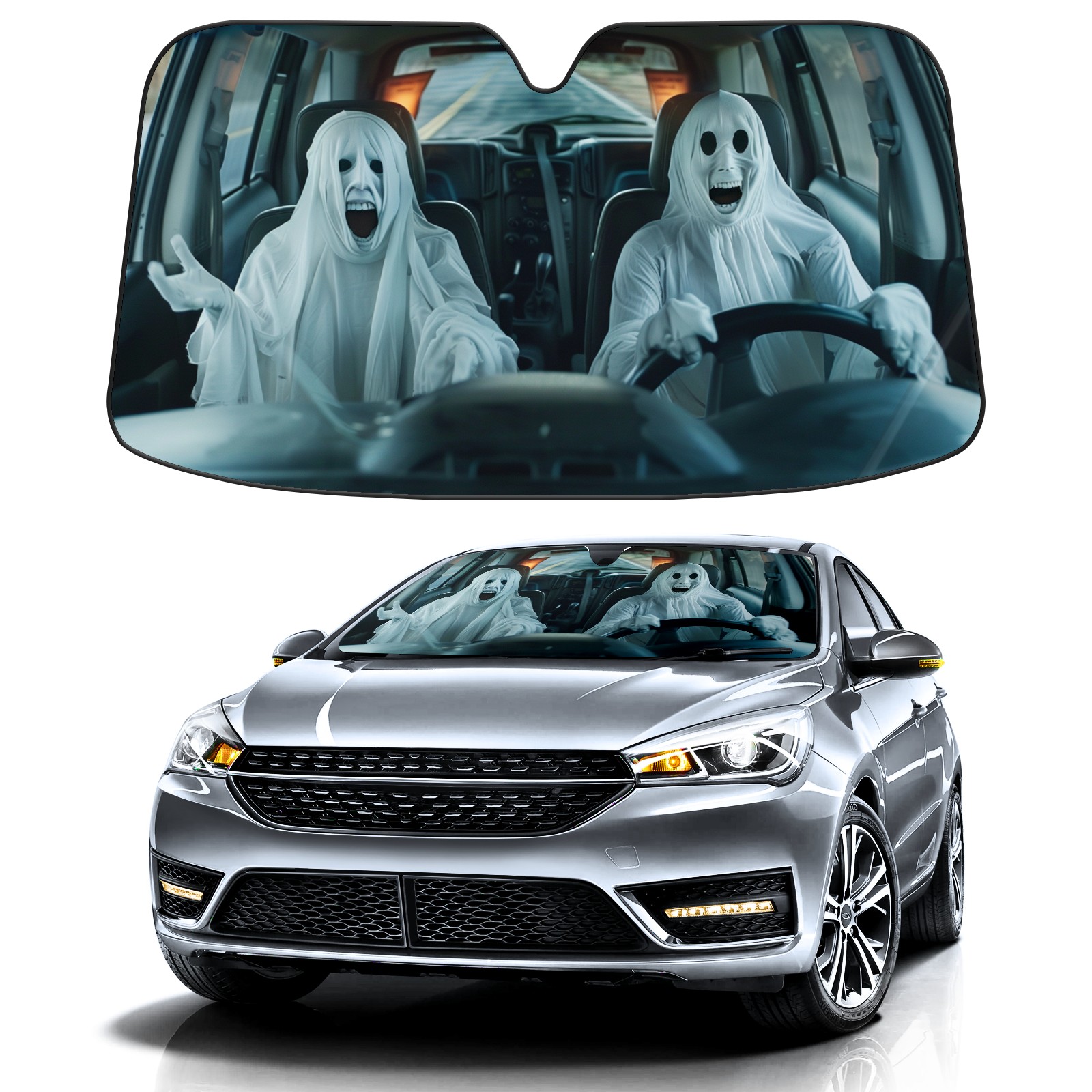 Ghost Driver Car Sun Shade UV Protection Foldable Sunshade for Windshield Heat Insulation Portable Sun Shield for Car Interior Protection Automotive Window Protector