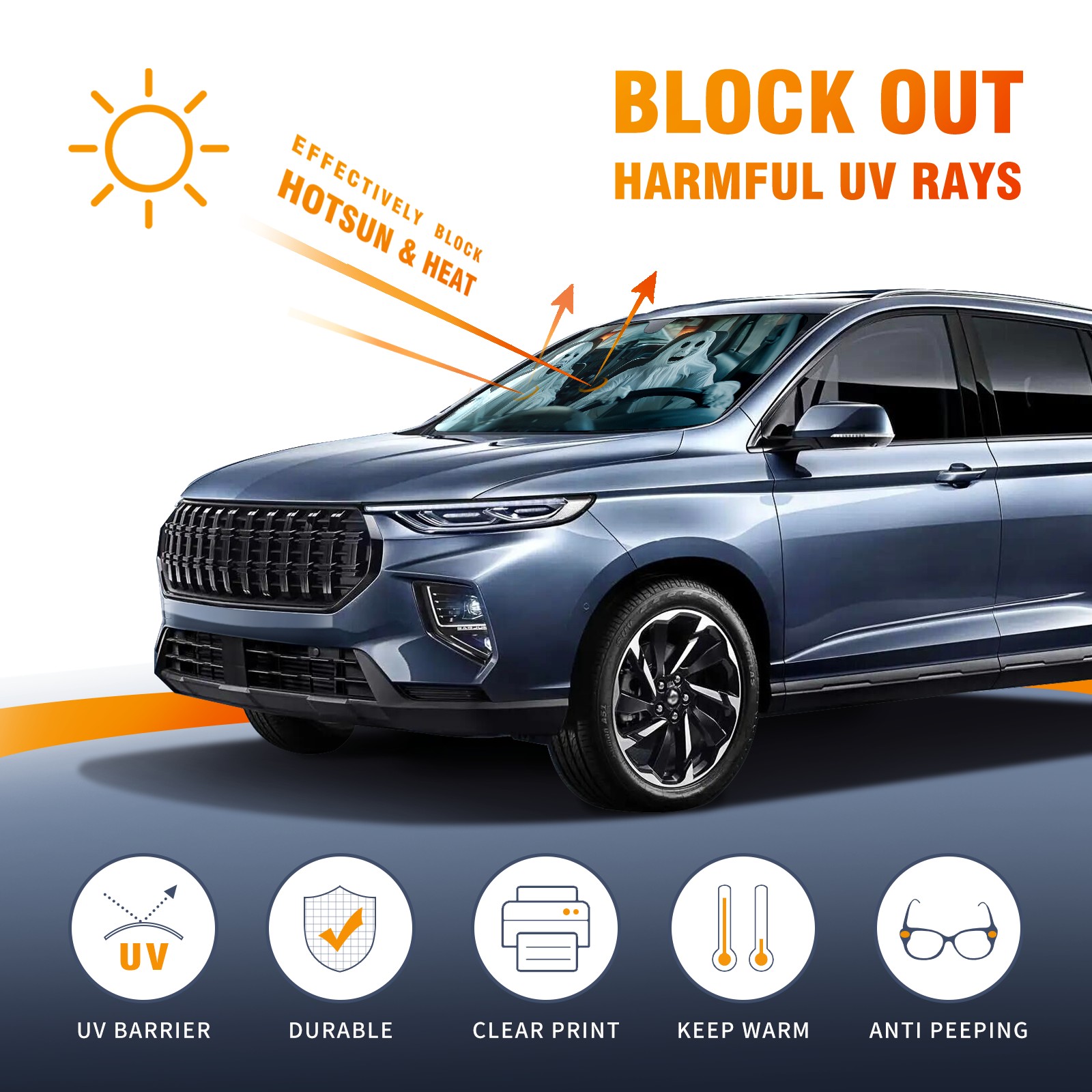 • <p><b>Foldable Premium Car Windshield Sunshade is your great solution to reduce your car’s interior temperature dramatically! This is definitely a must-have item for your summer travel!</b></p><p><b>【Precision Fit, Stylish Protection】</b></p><p>55"x30" (140x76cm) universal size with 3cm flexible margins fits curved windshields of most sedans/SUVs.</p><p><b>【Blocking Uv Rays &amp; Heat Insulation】</b></p><p>Our vehicle sunshade provides effective UV, sun, and summer heat protection, preventing leather fading and plastic cracking to keep your car interior pristine.</p><p><b>【Zero-Mark Installation &amp; Space-Saving】</b></p><p>Equipped with dual scratch-free silicone suction cups + adjustable straps: Medical-grade silicone cups hold firmly yet remove cleanly. Folds to A3 size (42x30cm x &lt;2cm thick), tucks discreetly into glove compartments or door pockets.&nbsp;</p>