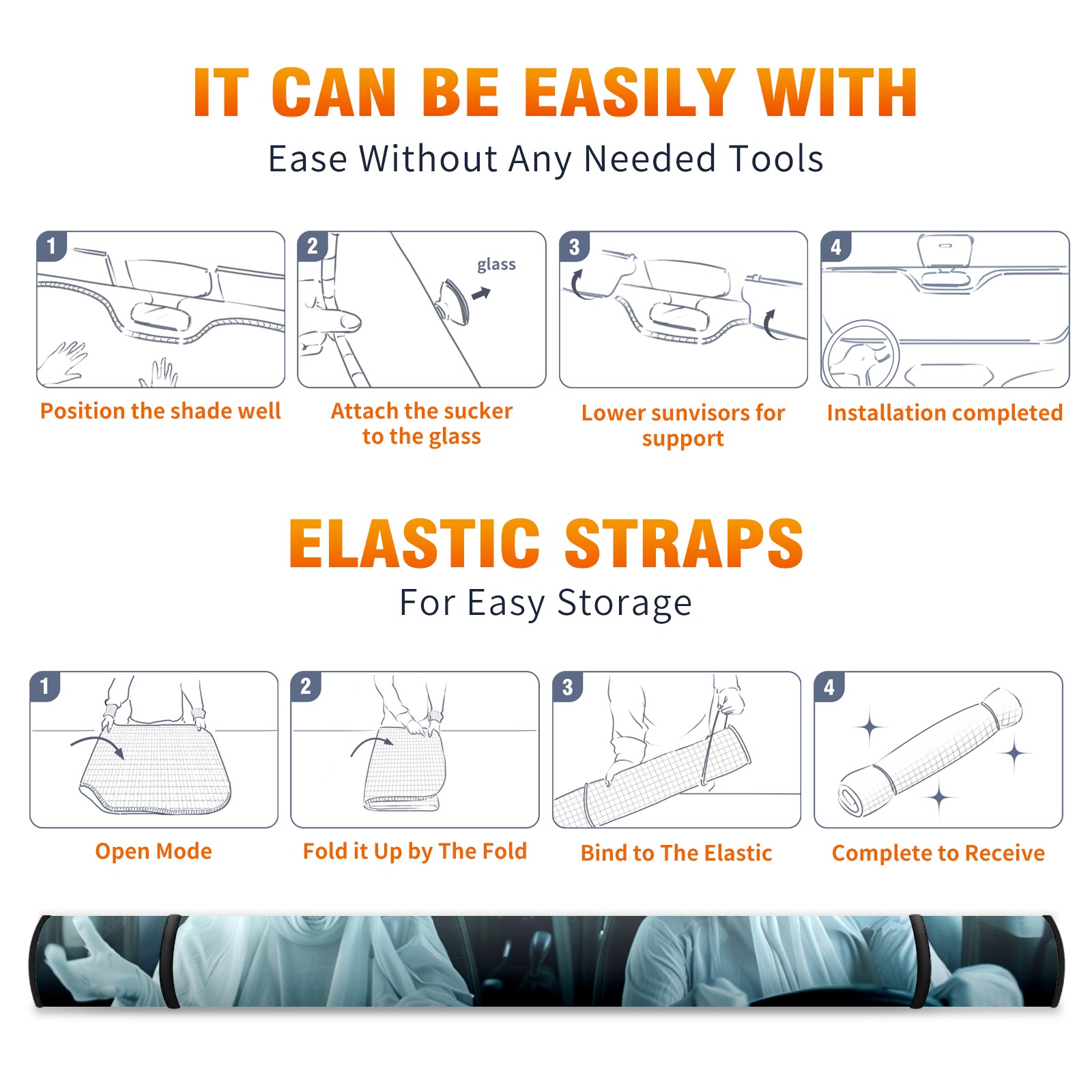 <p><b>Foldable Premium Car Windshield Sunshade is your great solution to reduce your car’s interior temperature dramatically! This is definitely a must-have item for your summer travel!</b></p><p><b>【Precision Fit, Stylish Protection】</b></p><p>55"x30" (140x76cm) universal size with 3cm flexible margins fits curved windshields of most sedans/SUVs.</p><p><b>【Blocking Uv Rays &amp; Heat Insulation】</b></p><p>Our vehicle sunshade provides effective UV, sun, and summer heat protection, preventing leather fading and plastic cracking to keep your car interior pristine.</p><p><b>【Zero-Mark Installation &amp; Space-Saving】</b></p><p>Equipped with dual scratch-free silicone suction cups + adjustable straps: Medical-grade silicone cups hold firmly yet remove cleanly. Folds to A3 size (42x30cm x &lt;2cm thick), tucks discreetly into glove compartments or door pockets.&nbsp;</p>