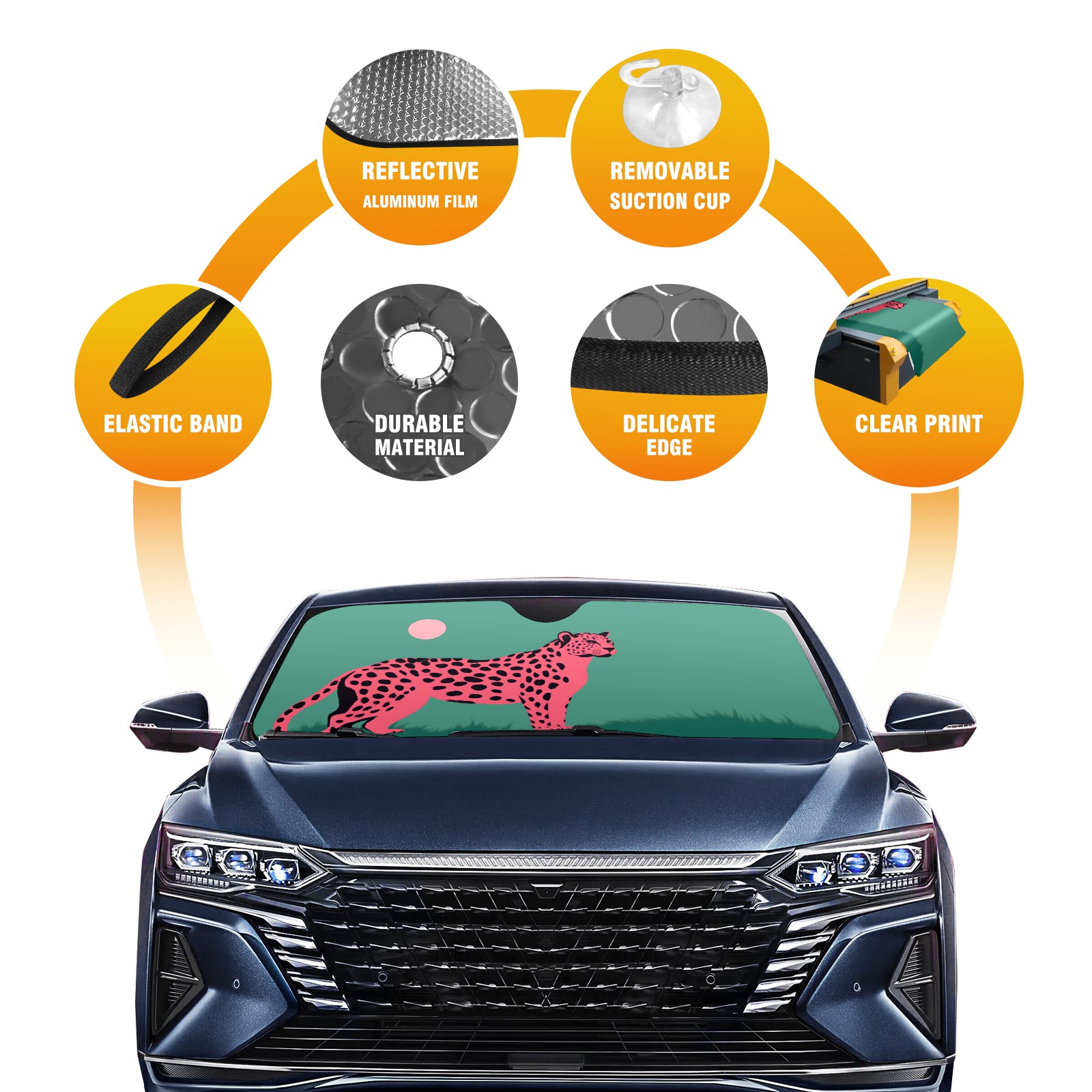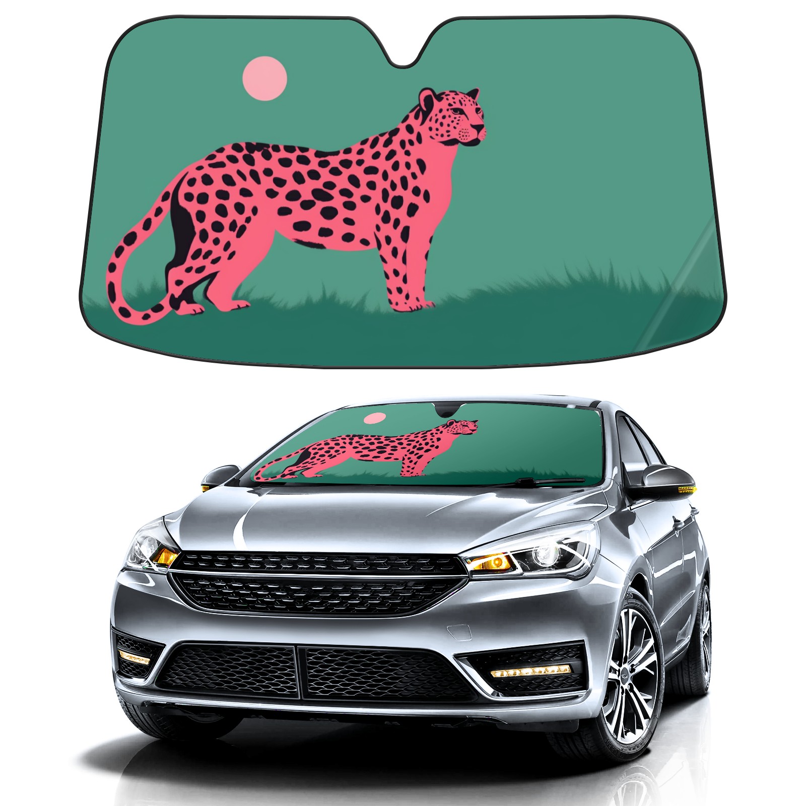 Cheetah Car Sun Shade UV Protection Foldable Sunshade for Windshield Heat Insulation Portable Sun Shield for Car Interior Protection Automotive Window Protector