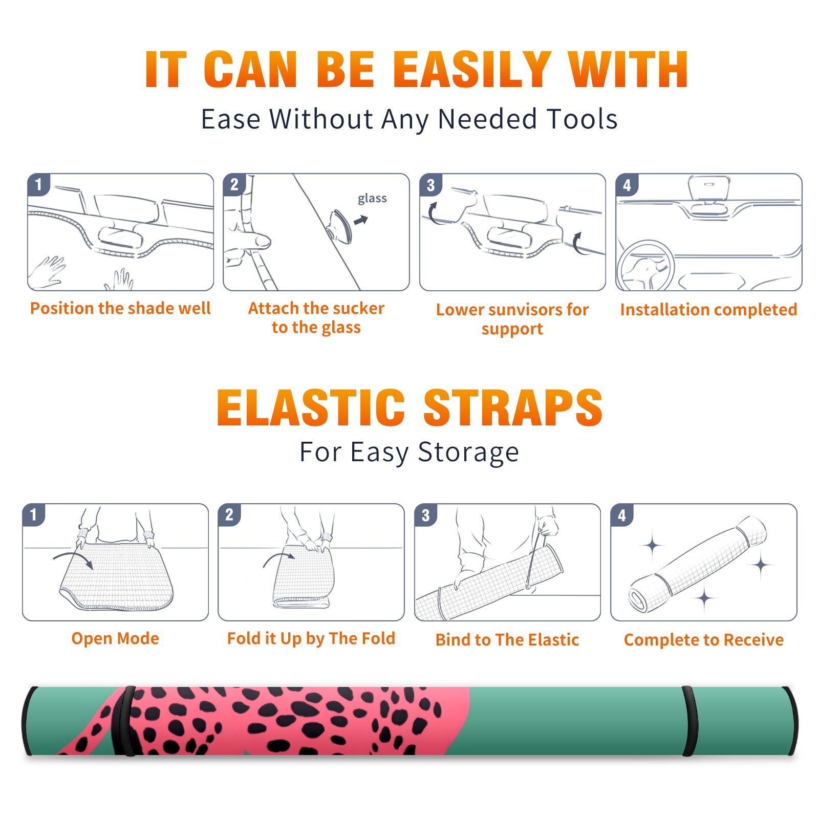 <p><b>Foldable Premium Car Windshield Sunshade is your great solution to reduce your car’s interior temperature dramatically! This is definitely a must-have item for your summer travel!</b></p><p><b>【Precision Fit, Stylish Protection】</b></p><p>55"x30" (140x76cm) universal size with 3cm flexible margins fits curved windshields of most sedans/SUVs.</p><p><b>【Blocking Uv Rays &amp; Heat Insulation】</b></p><p>Our vehicle sunshade provides effective UV, sun, and summer heat protection, preventing leather fading and plastic cracking to keep your car interior pristine.</p><p><b>【Zero-Mark Installation &amp; Space-Saving】</b></p><p>Equipped with dual scratch-free silicone suction cups + adjustable straps: Medical-grade silicone cups hold firmly yet remove cleanly. Folds to A3 size (42x30cm x &lt;2cm thick), tucks discreetly into glove compartments or door pockets.&nbsp;</p>