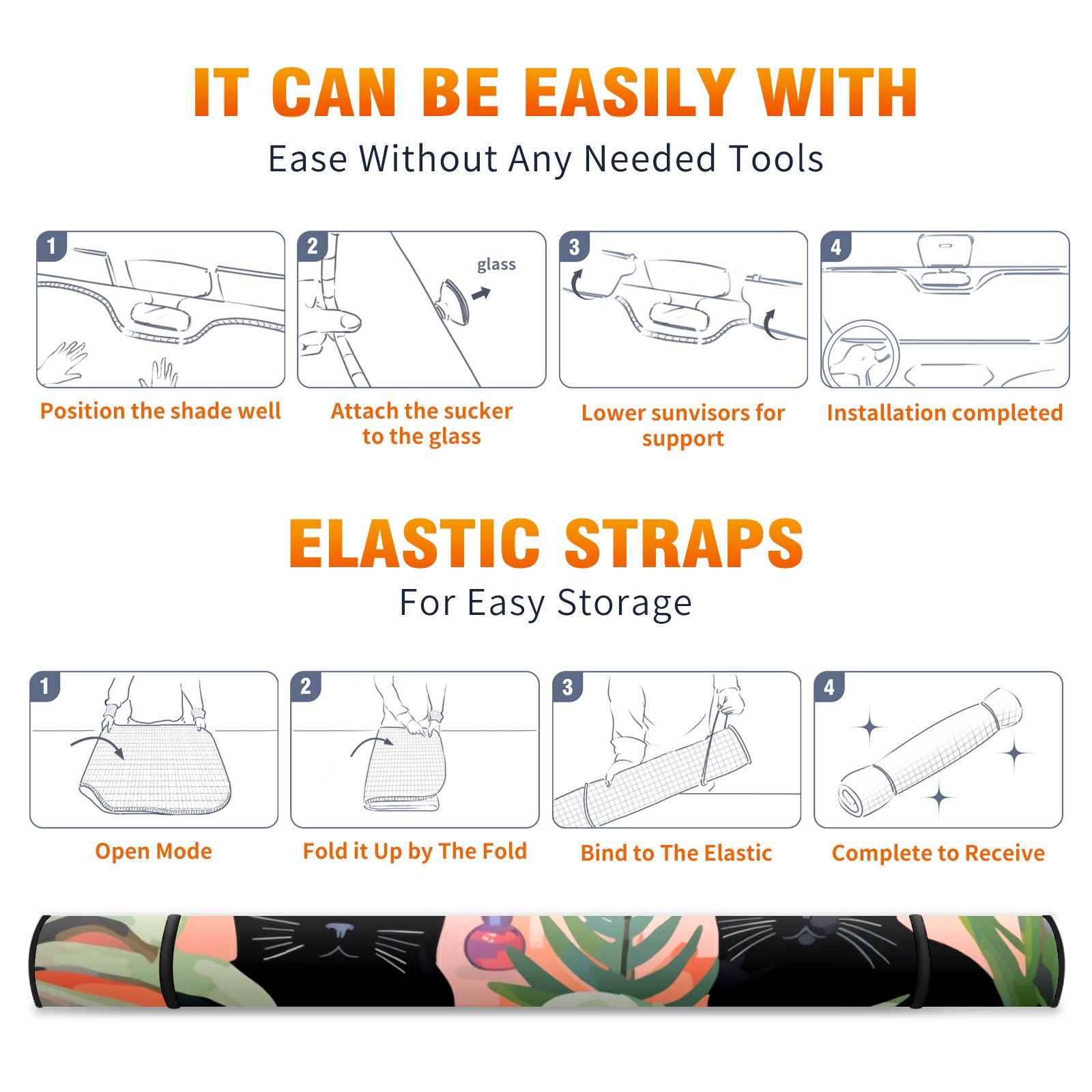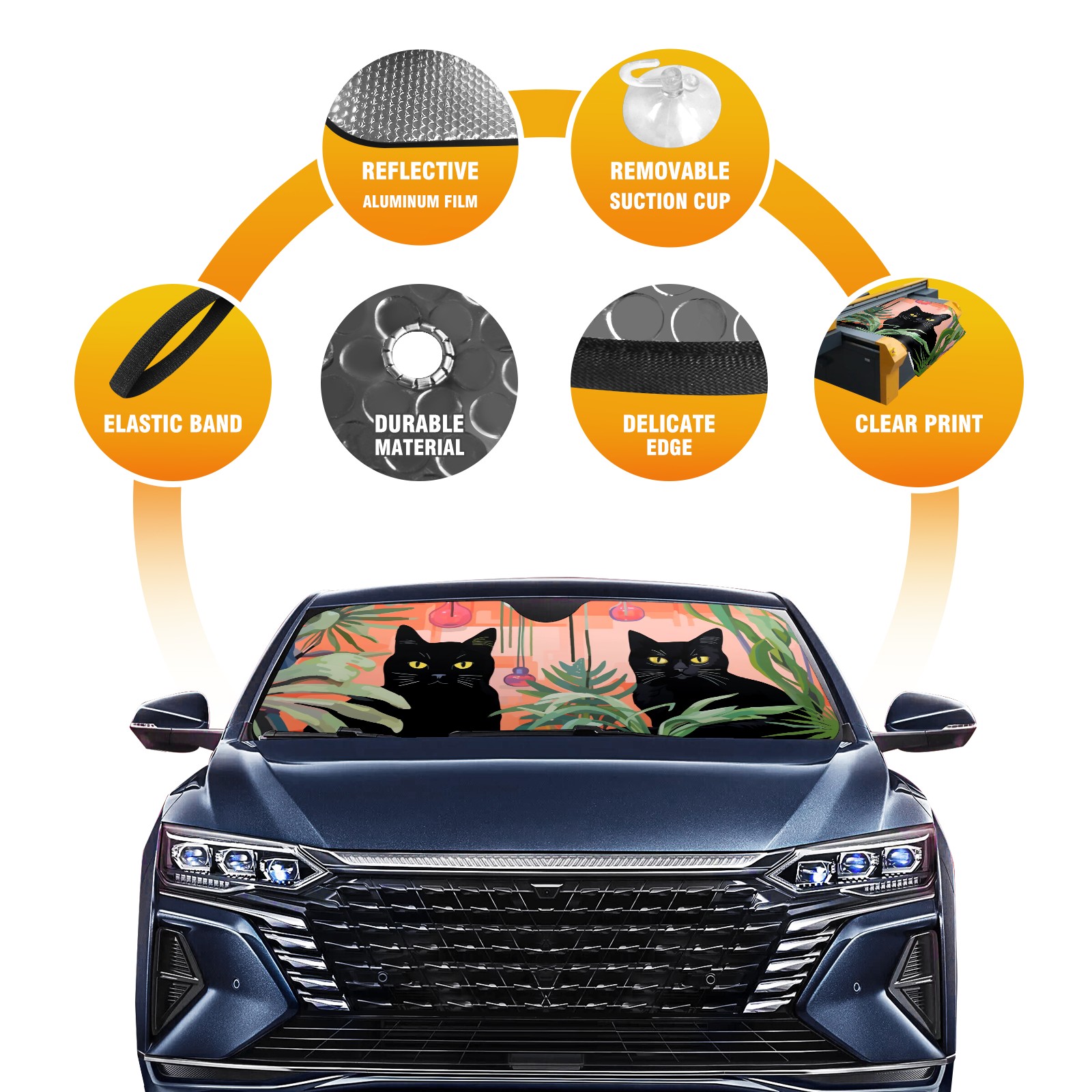 • <p><b>Foldable Premium Car Windshield Sunshade is your great solution to reduce your car’s interior temperature dramatically! This is definitely a must-have item for your summer travel!</b></p><p><b>【Precision Fit, Stylish Protection】</b></p><p>55"x30" (140x76cm) universal size with 3cm flexible margins fits curved windshields of most sedans/SUVs.</p><p><b>【Blocking Uv Rays &amp; Heat Insulation】</b></p><p>Our vehicle sunshade provides effective UV, sun, and summer heat protection, preventing leather fading and plastic cracking to keep your car interior pristine.</p><p><b>【Zero-Mark Installation &amp; Space-Saving】</b></p><p>Equipped with dual scratch-free silicone suction cups + adjustable straps: Medical-grade silicone cups hold firmly yet remove cleanly. Folds to A3 size (42x30cm x &lt;2cm thick), tucks discreetly into glove compartments or door pockets.&nbsp;</p>
