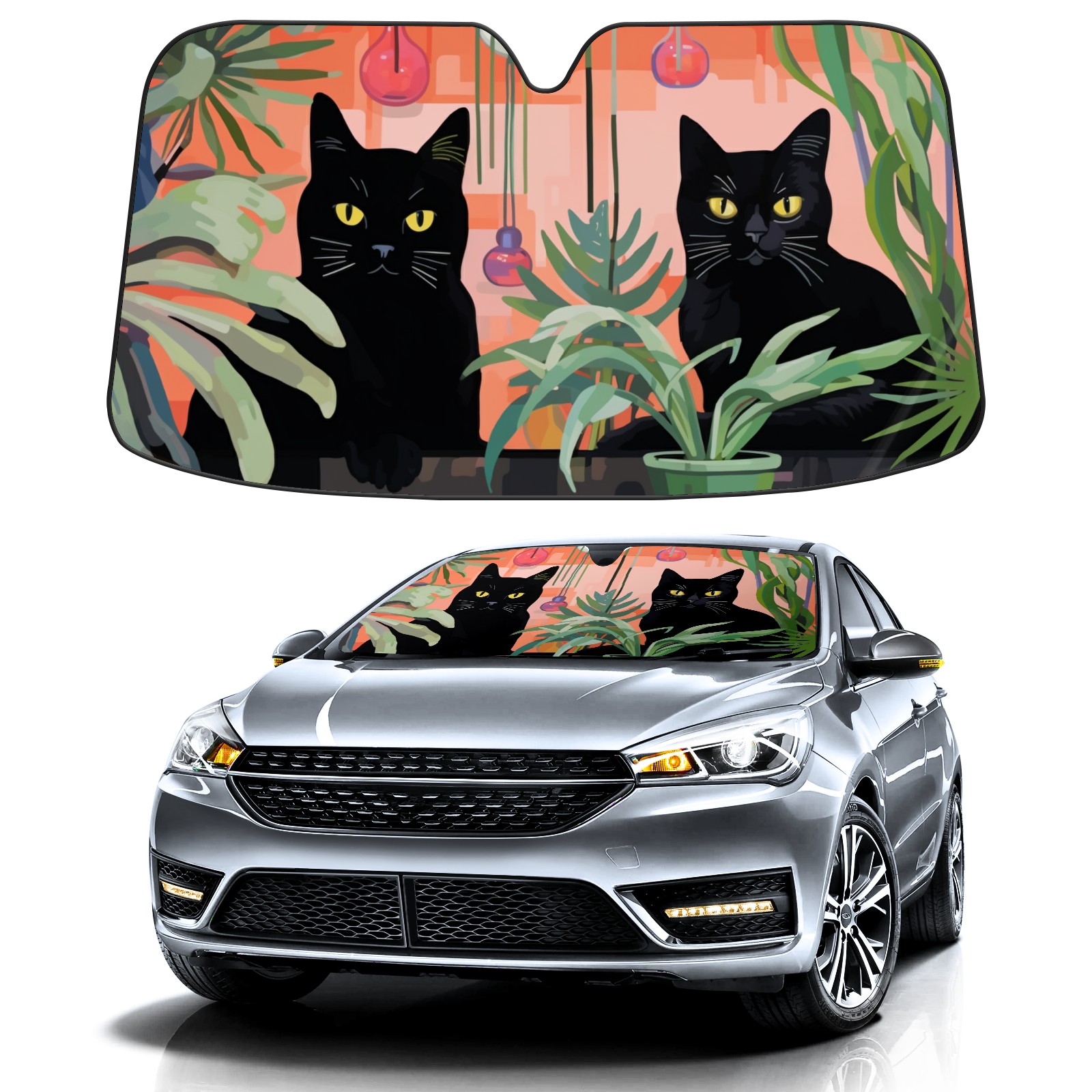Black Cats Car Sun Shade UV Protection Foldable Sunshade for Windshield Heat Insulation Portable Sun Shield for Car Interior Protection Automotive Window Protector