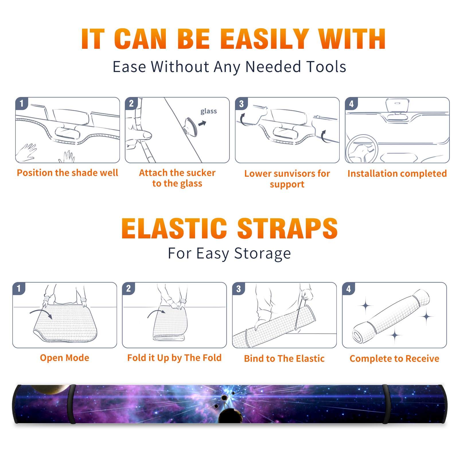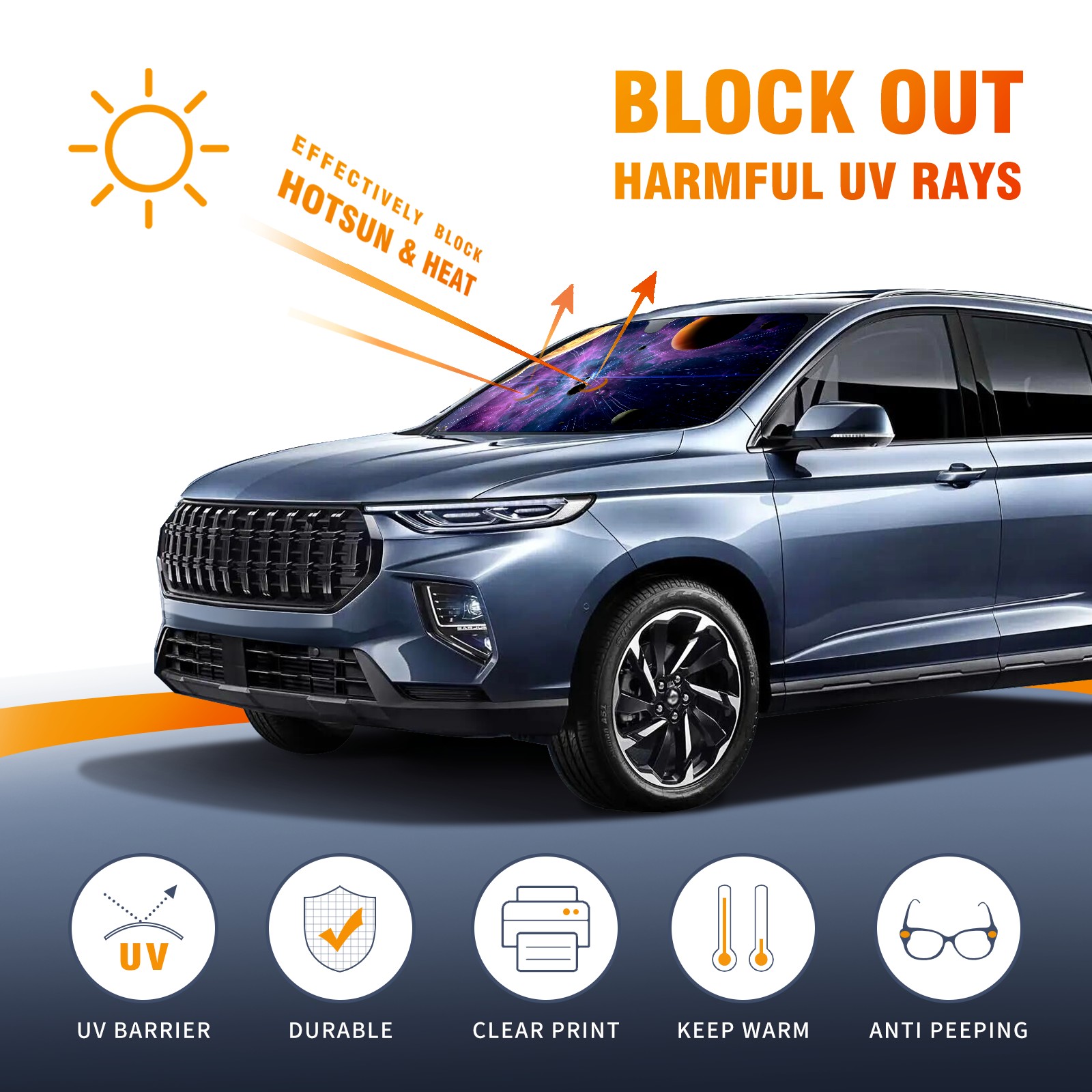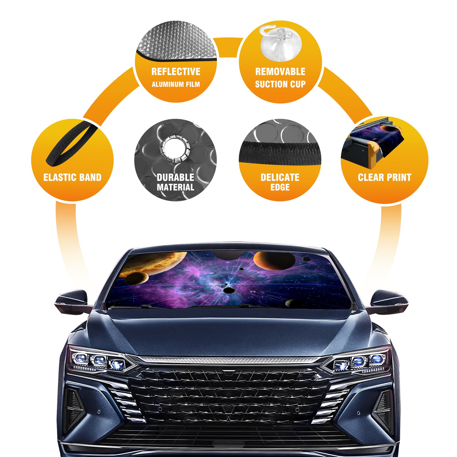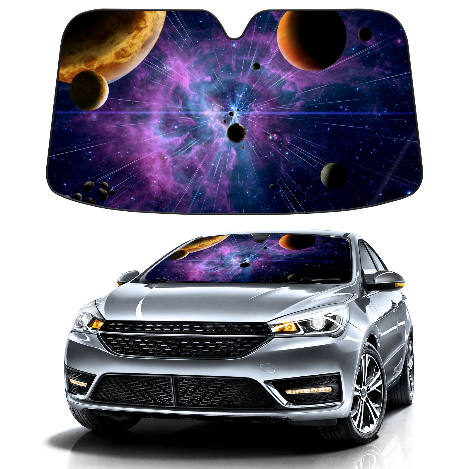 Galaxy Planet Car Sun Shade UV Protection Foldable Sunshade for Windshield Heat Insulation Portable Sun Shield for Car Interior Protection Automotive Window Protector