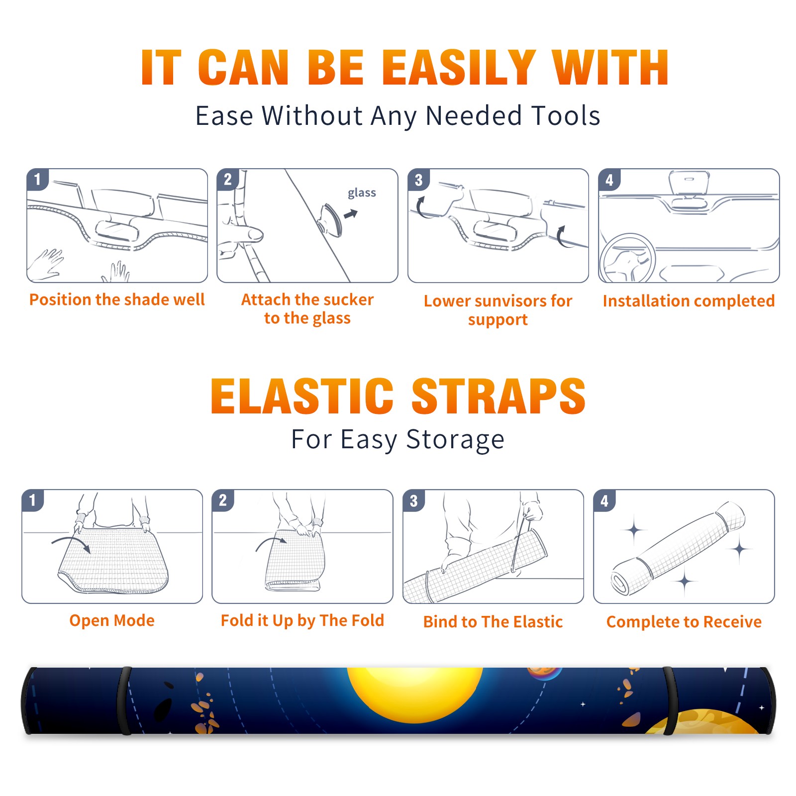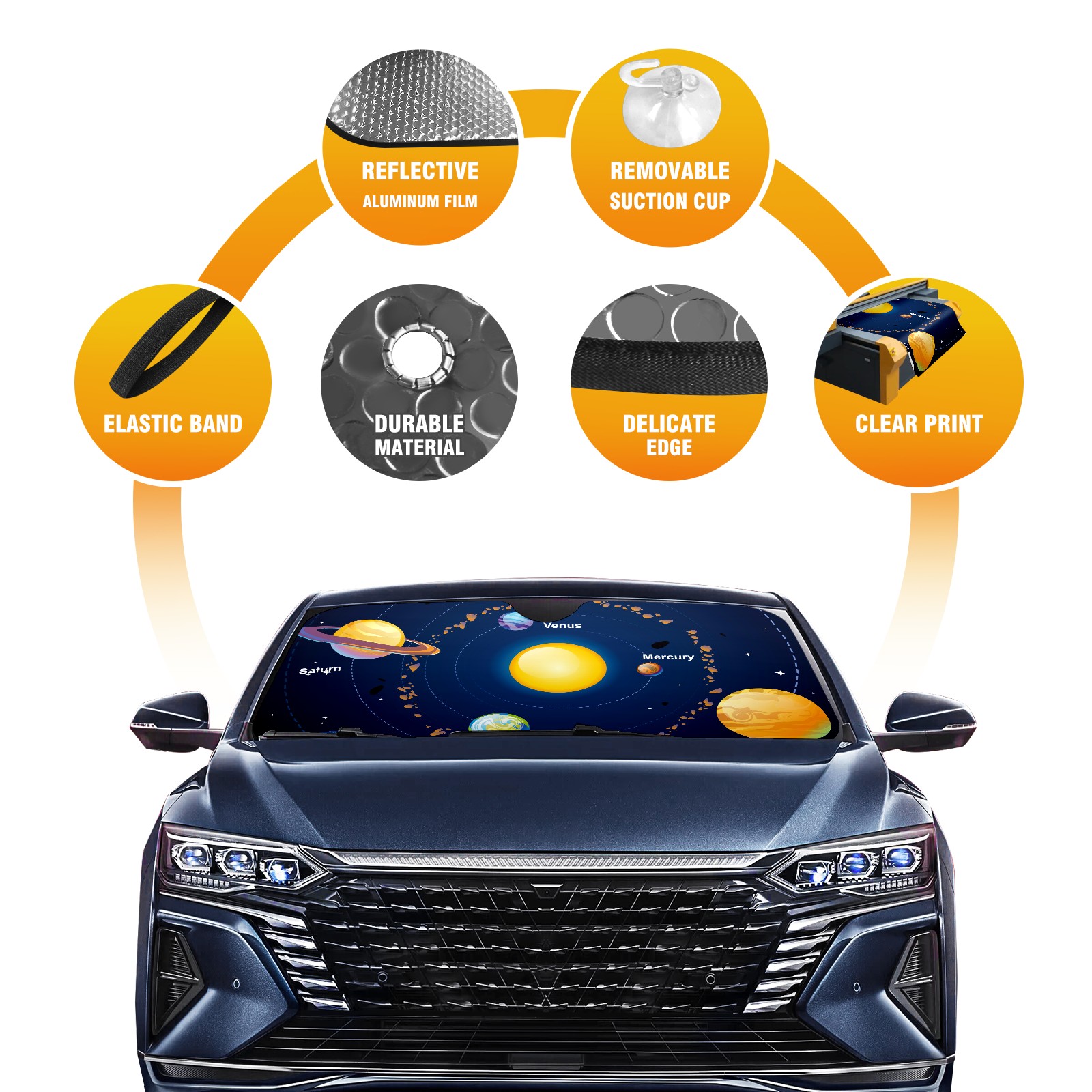 Solar System Car Sun Shade UV Protection Foldable Sunshade for Windshield Heat Insulation Portable Sun Shield for Car Interior Protection Automotive Window Protector