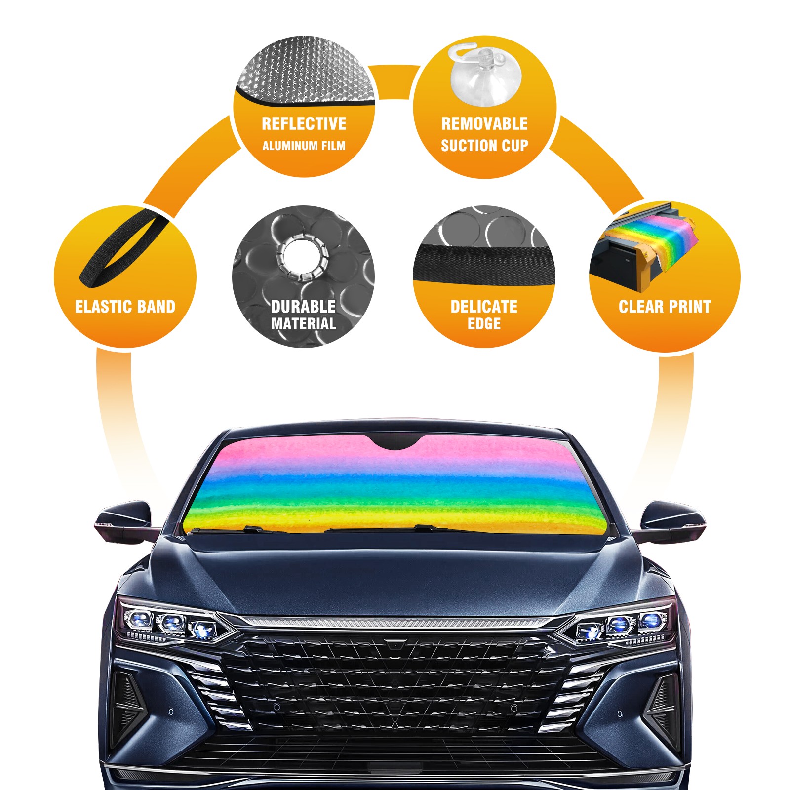 • <p><b>Foldable Premium Car Windshield Sunshade is your great solution to reduce your car’s interior temperature dramatically! This is definitely a must-have item for your summer travel!</b></p><p><b>【Precision Fit, Stylish Protection】</b></p><p>55"x30" (140x76cm) universal size with 3cm flexible margins fits curved windshields of most sedans/SUVs.</p><p><b>【Blocking Uv Rays &amp; Heat Insulation】</b></p><p>Our vehicle sunshade provides effective UV, sun, and summer heat protection, preventing leather fading and plastic cracking to keep your car interior pristine.</p><p><b>【Zero-Mark Installation &amp; Space-Saving】</b></p><p>Equipped with dual scratch-free silicone suction cups + adjustable straps: Medical-grade silicone cups hold firmly yet remove cleanly. Folds to A3 size (42x30cm x &lt;2cm thick), tucks discreetly into glove compartments or door pockets.&nbsp;</p>