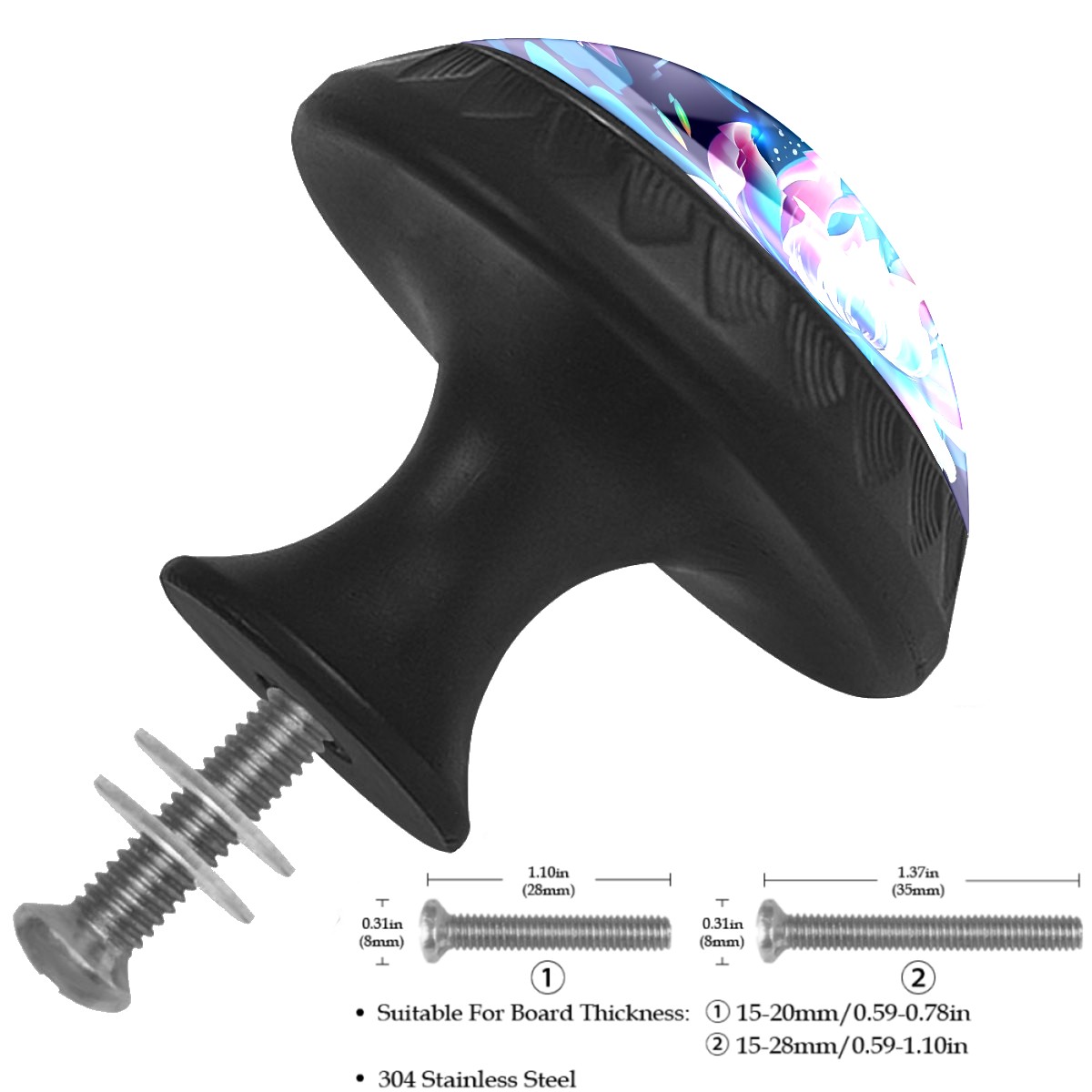 • <p><b>Package includes:</b></p> <p>4 x cabinet knobs</p> <p>4 x screws 1.1'' (28 mm) </p> <p>4 x screws 1.37'' (35 mm)</p> <p><b>How to Install?</b></p> <p>1. Drill a hole in the drawer panel.</p> <p>2. Pass the screw through from the backside of the drawer.</p> <p>3. Tighten the knob onto the screw.</p> <p>ABS + Glass: The combination of sturdy ABS with high-transparency glass offers a long-lasting shine that enhances the quality of your home. Suitable for cabinets, drawers, dressers, wardrobes, office furniture, etc.</p> <p>Easy Maintenance: The smooth glass surface wipes clean easily, making it ideal for long-term use in kitchens and bathrooms.</p>