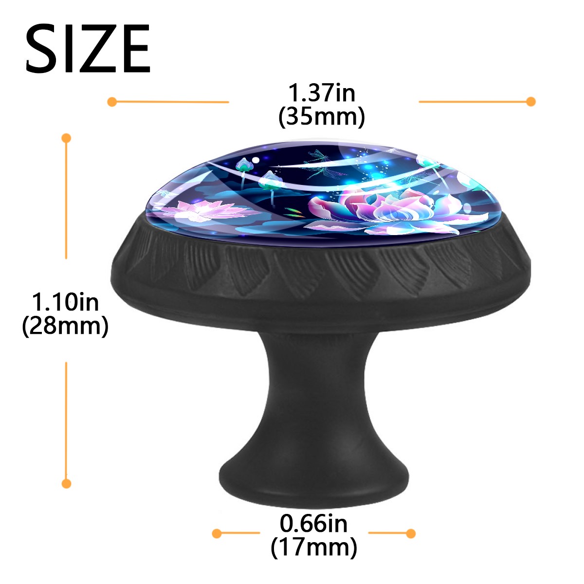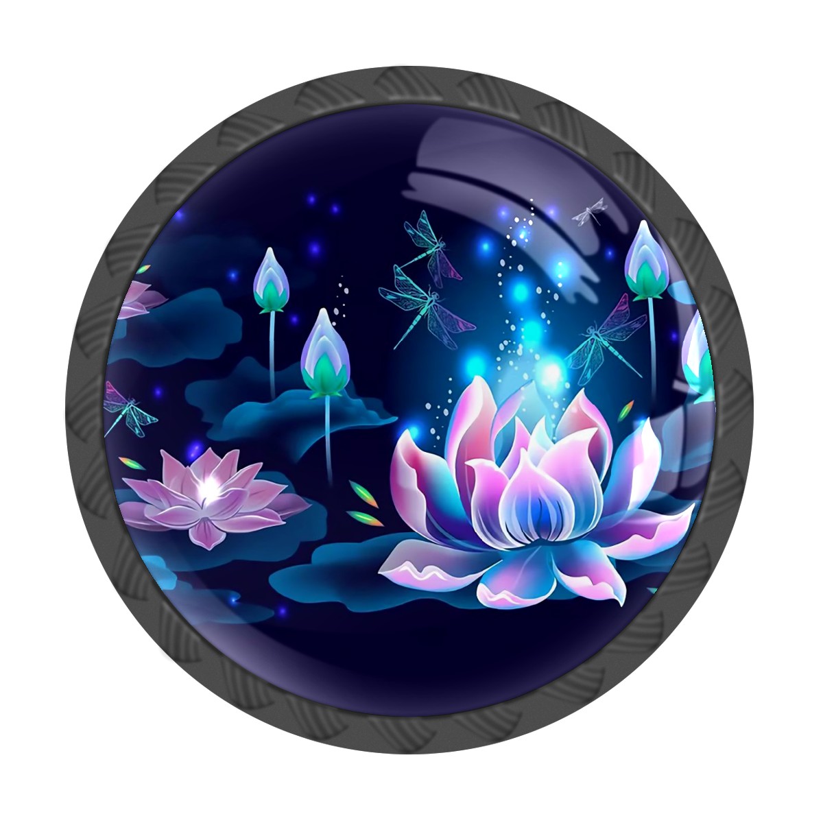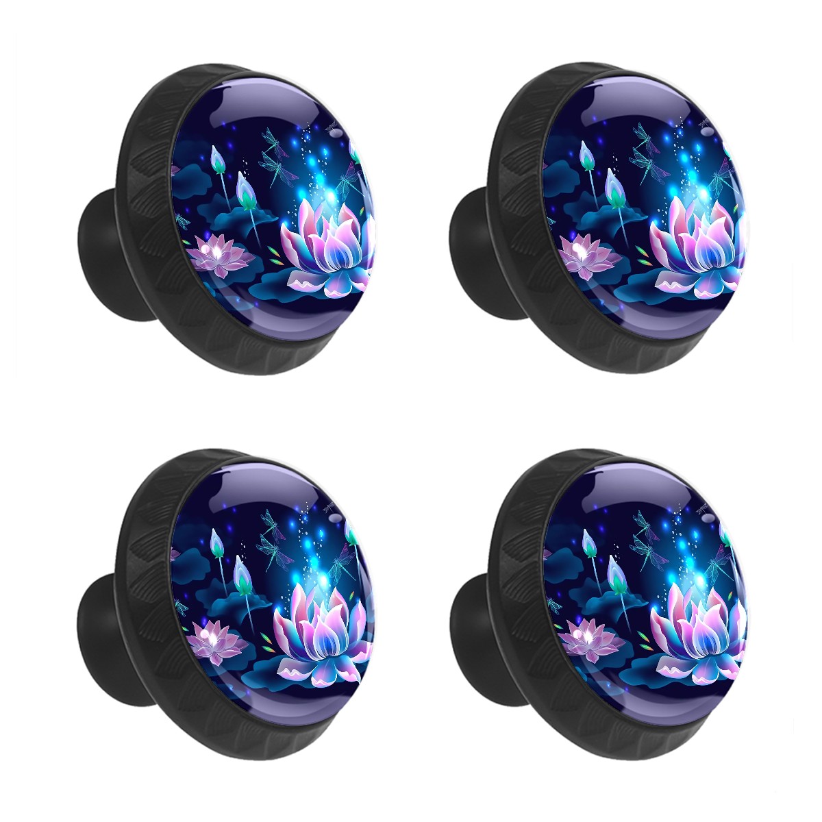 4 Pcs Drawer Knobs Lotus Floral And Dragonflies Round Crystal Glass Knobs Pulls for Dressers Kitchen Cabinets Drawers Wardrobe Cupboard Furniture Hardware Handles