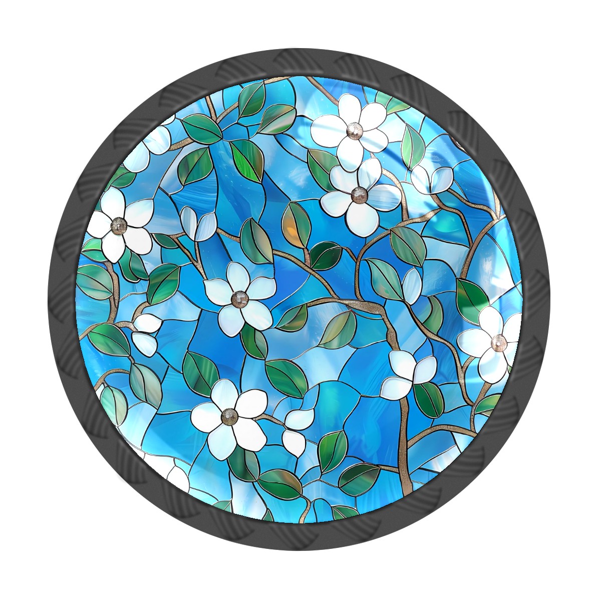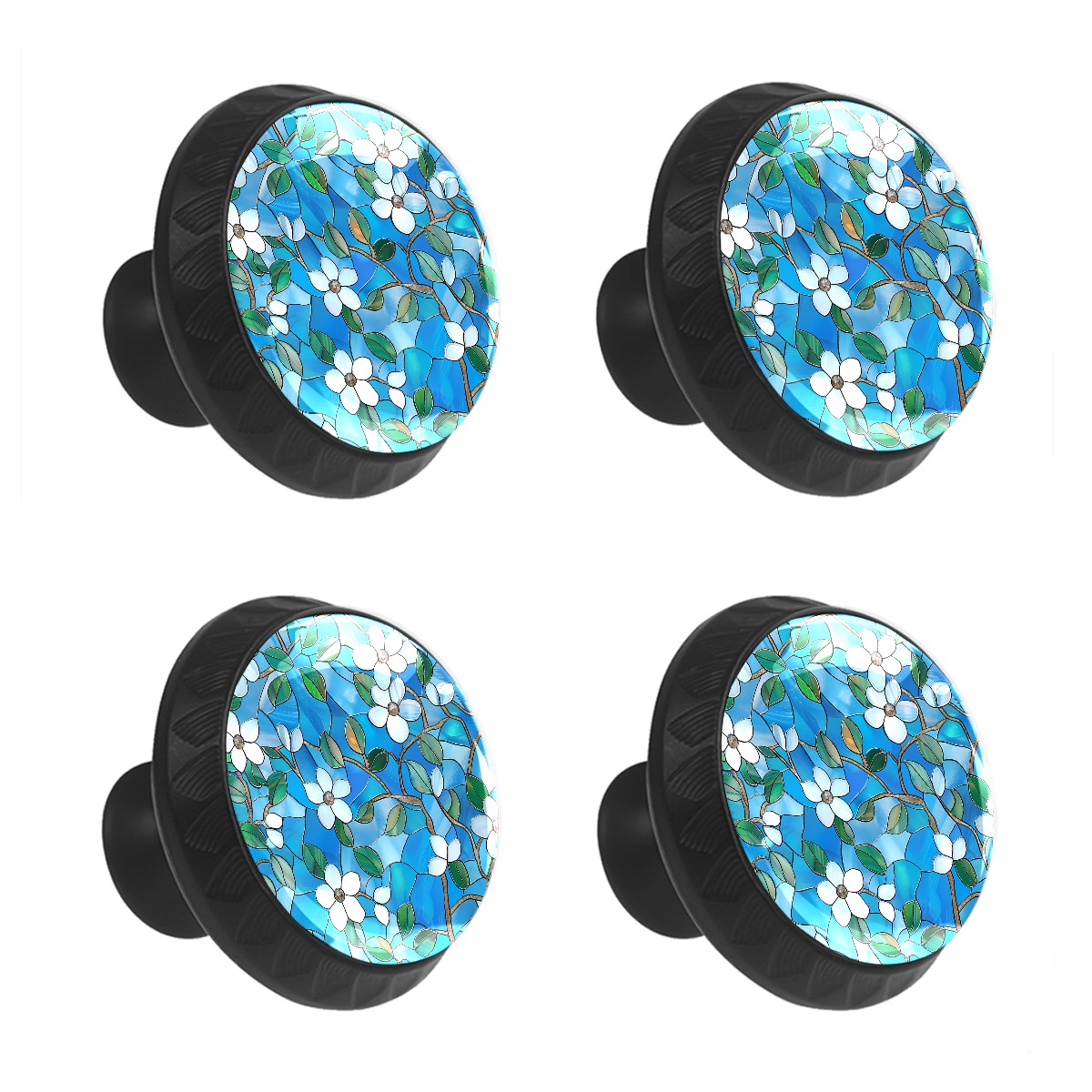 4 Pcs Drawer Knobs Blue Lily Round Crystal Glass Knobs Pulls for Dressers Kitchen Cabinets Drawers Wardrobe Cupboard Furniture Hardware Handles
