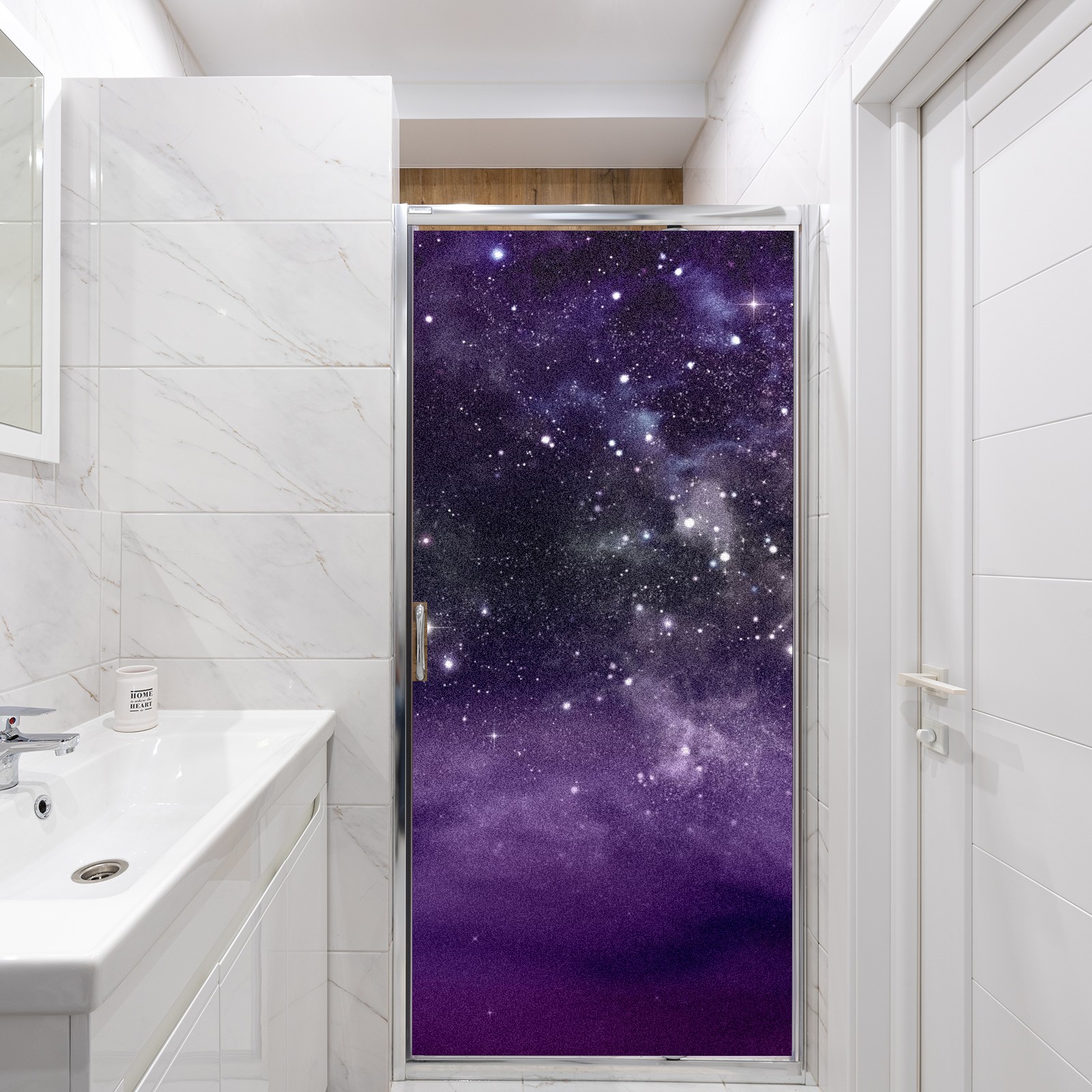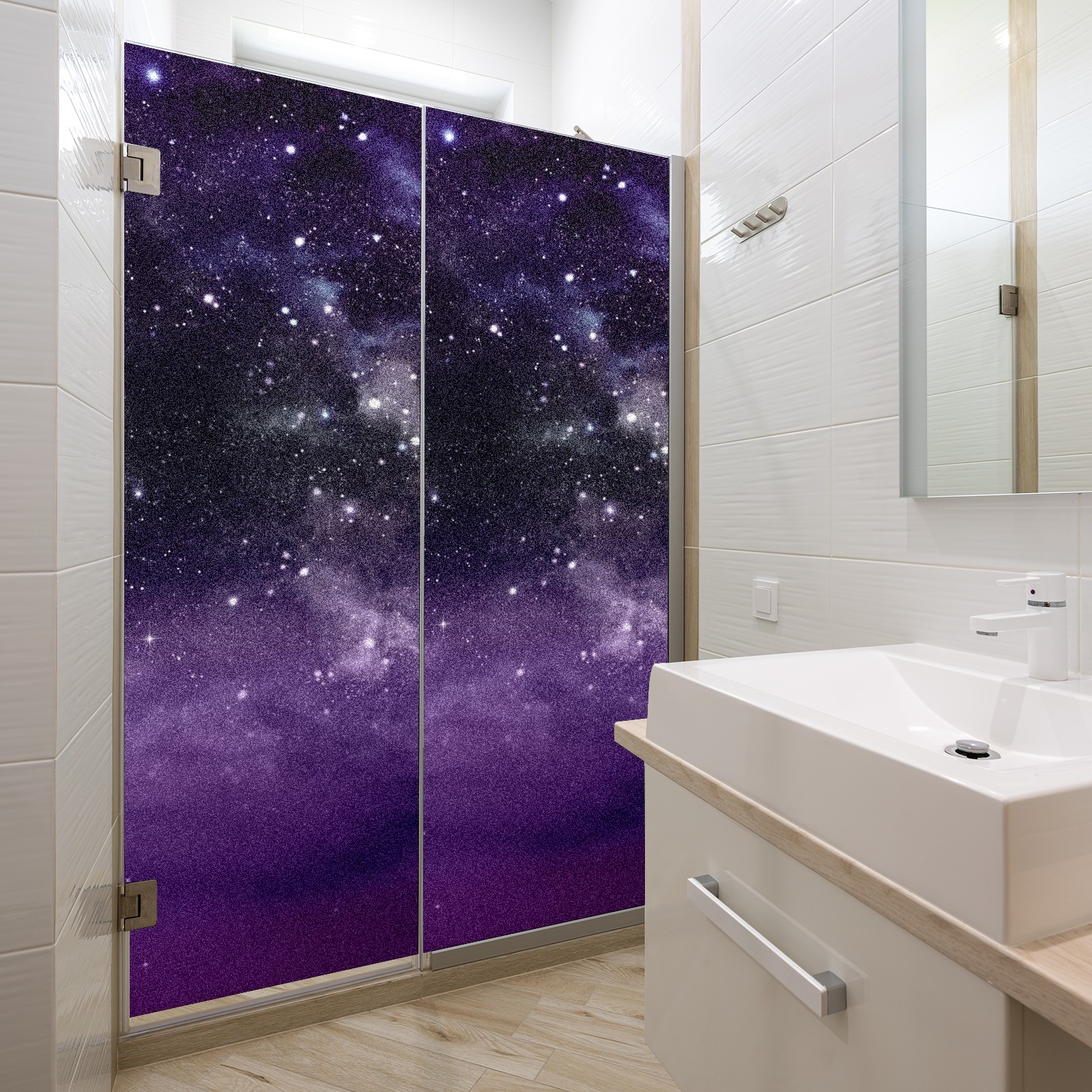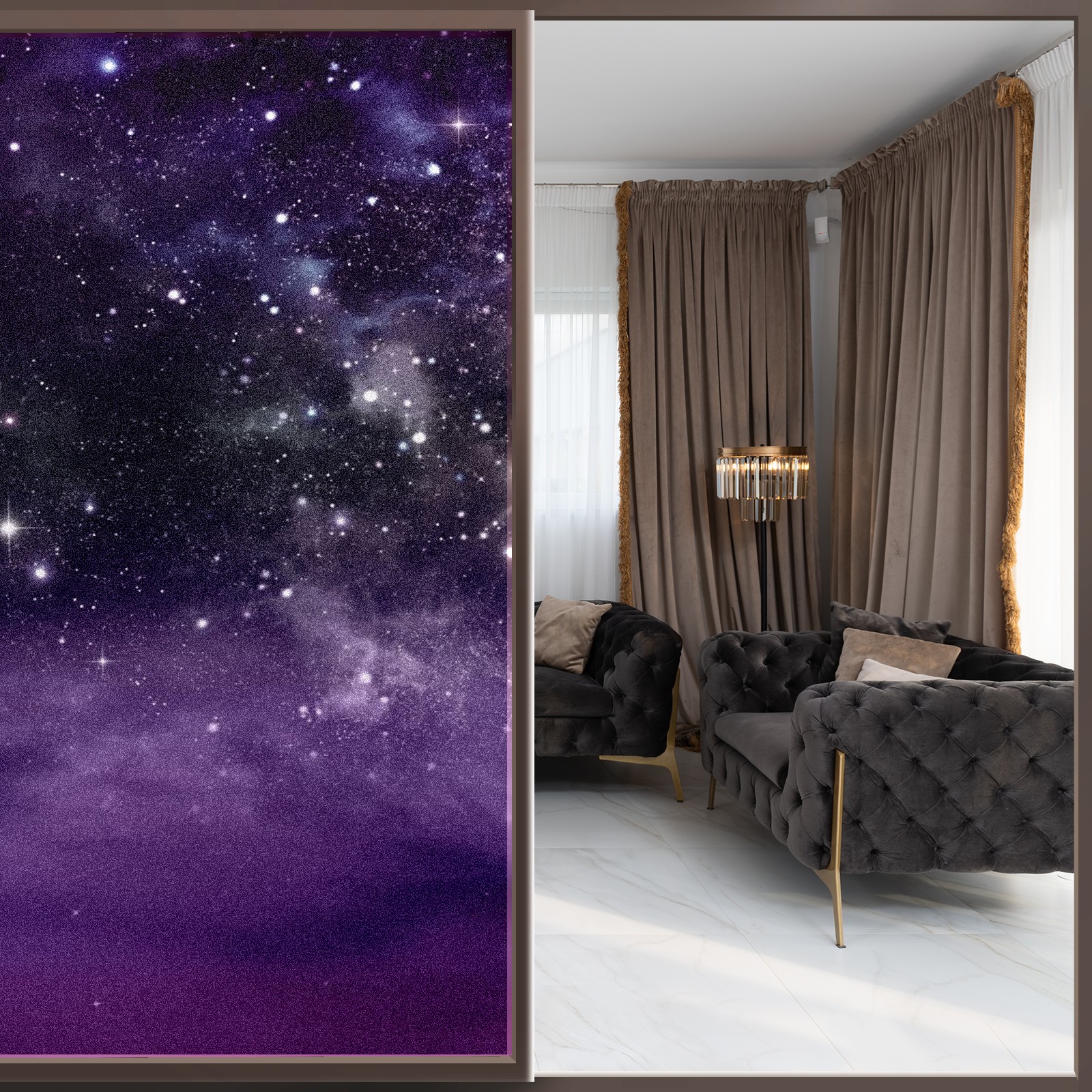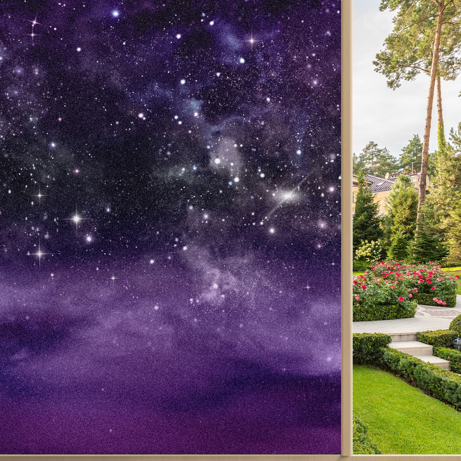 Window Privacy Film Frosted Stained Glass Film Decorative Static Cling for Bathroom Home Office Peel and Stick Window Film Purple Starry Sky(17.7x23.6in)