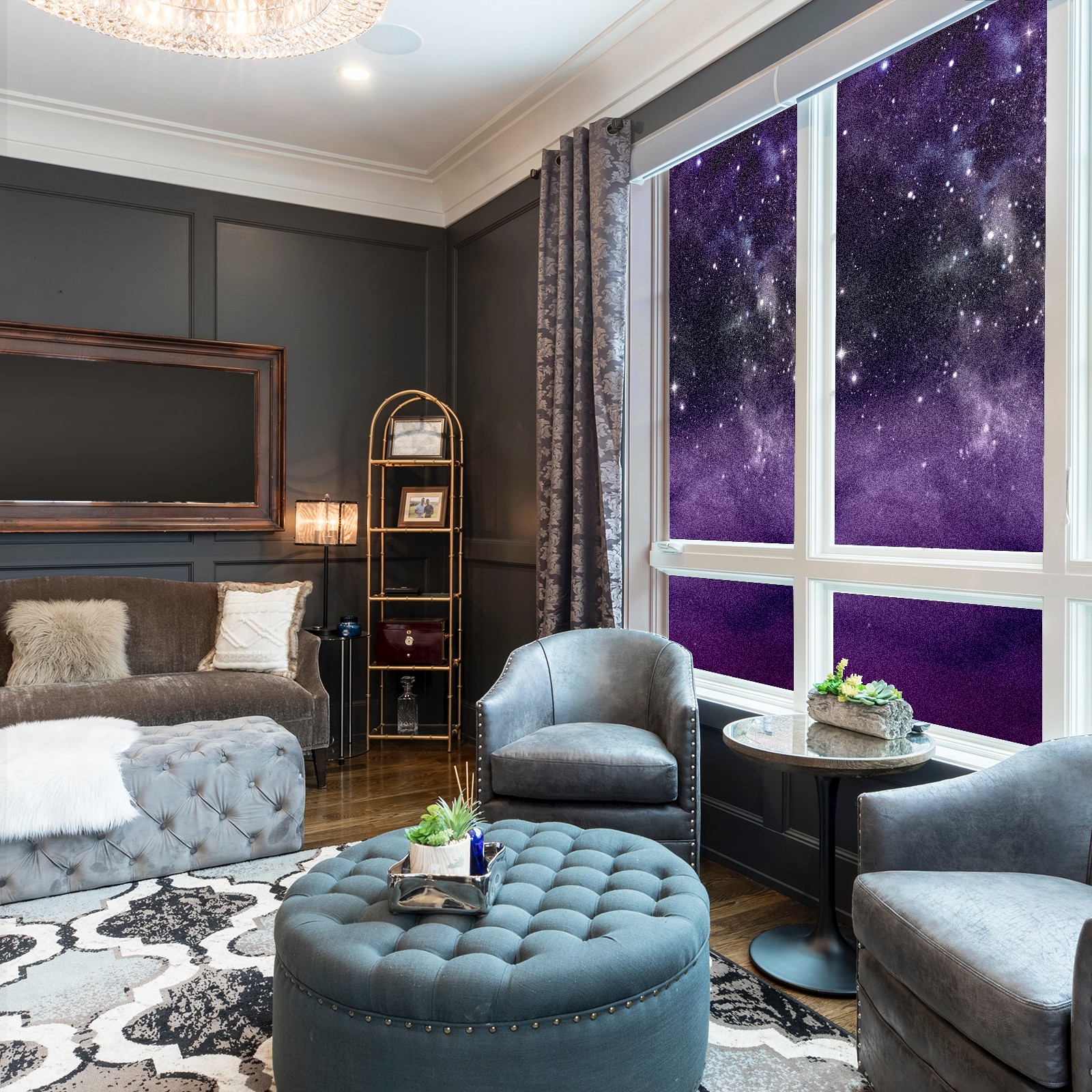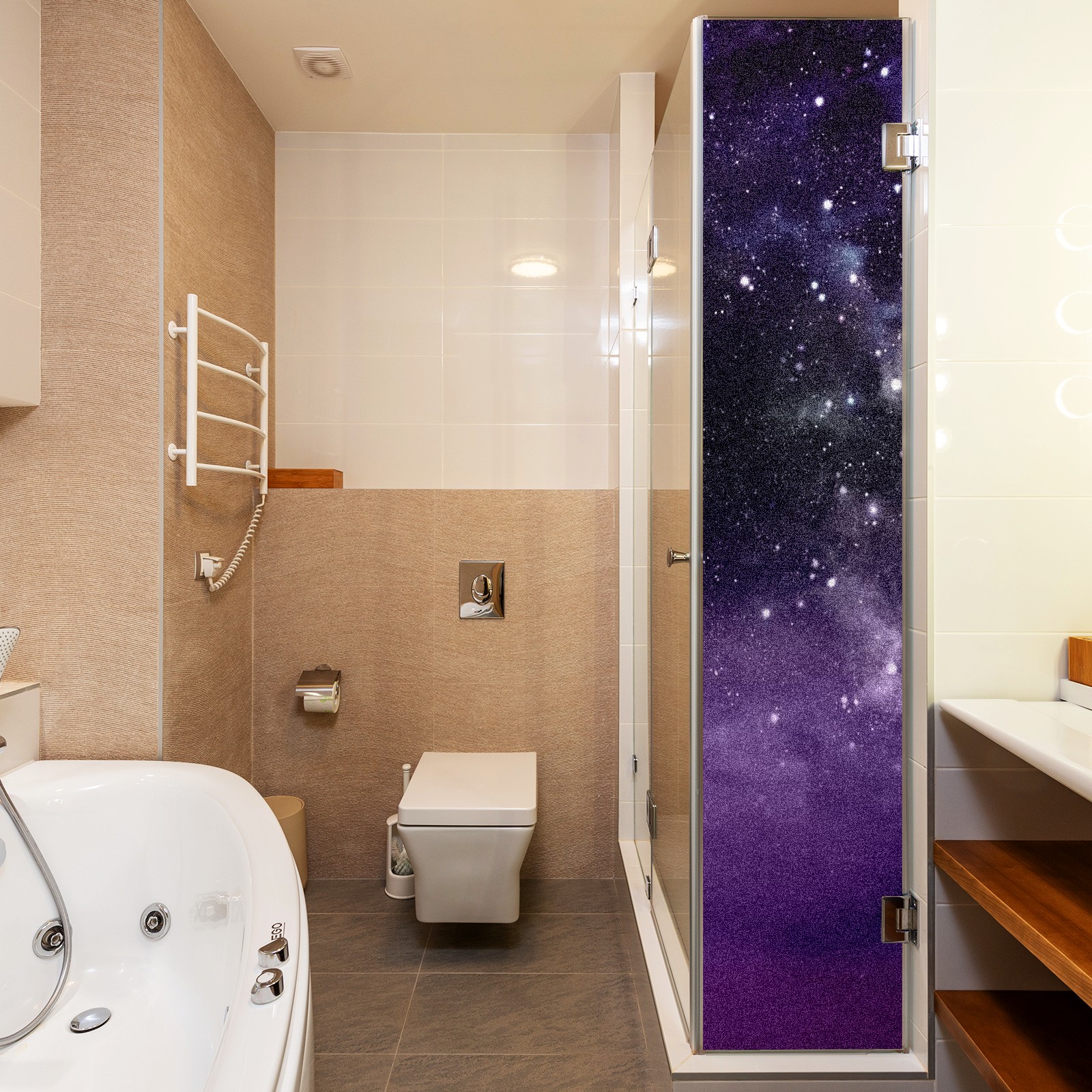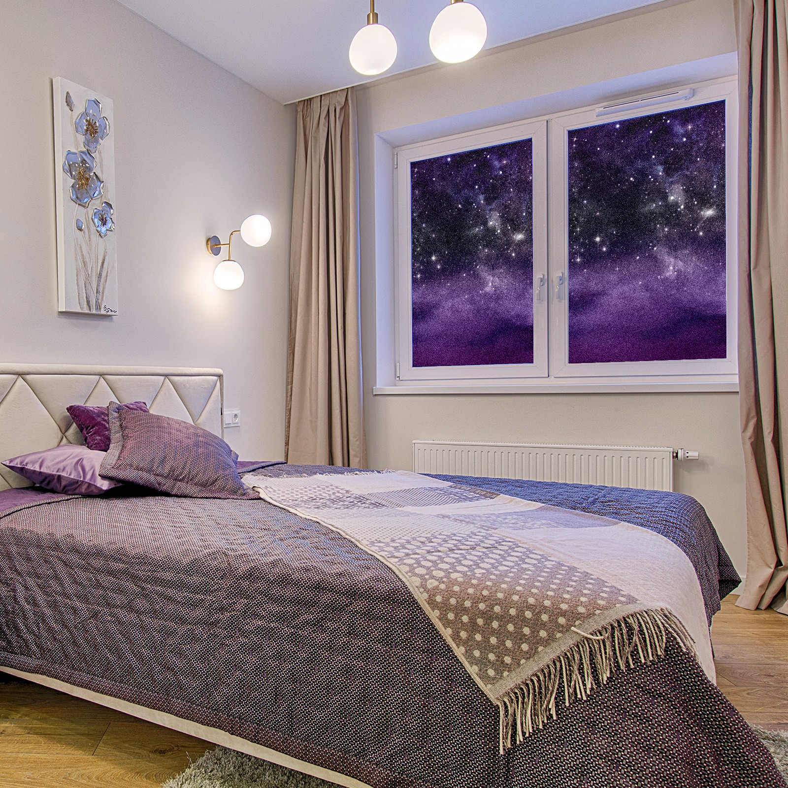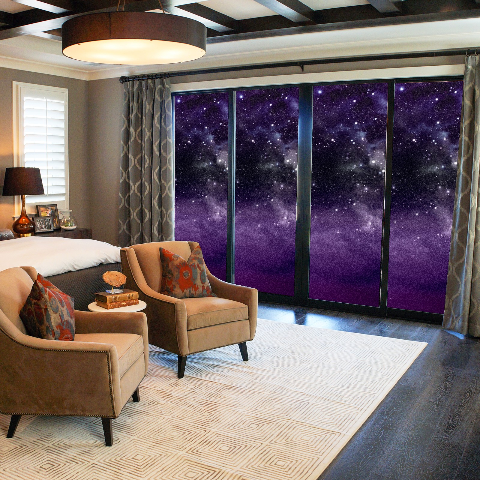 Window Privacy Film Frosted Stained Glass Film Decorative Static Cling for Bathroom Home Office Peel and Stick Window Film Purple Starry Sky(17.7x23.6in)