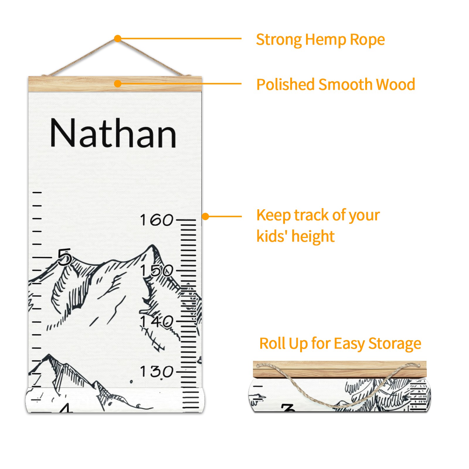 Personalized Kids Name Growth Chart Ruler for Wall Wood Frame Canvas Height Measure Chart 13.4x56 in Hanging Growth Chart Winter Mountain3.27 Boys Girls Room Decor