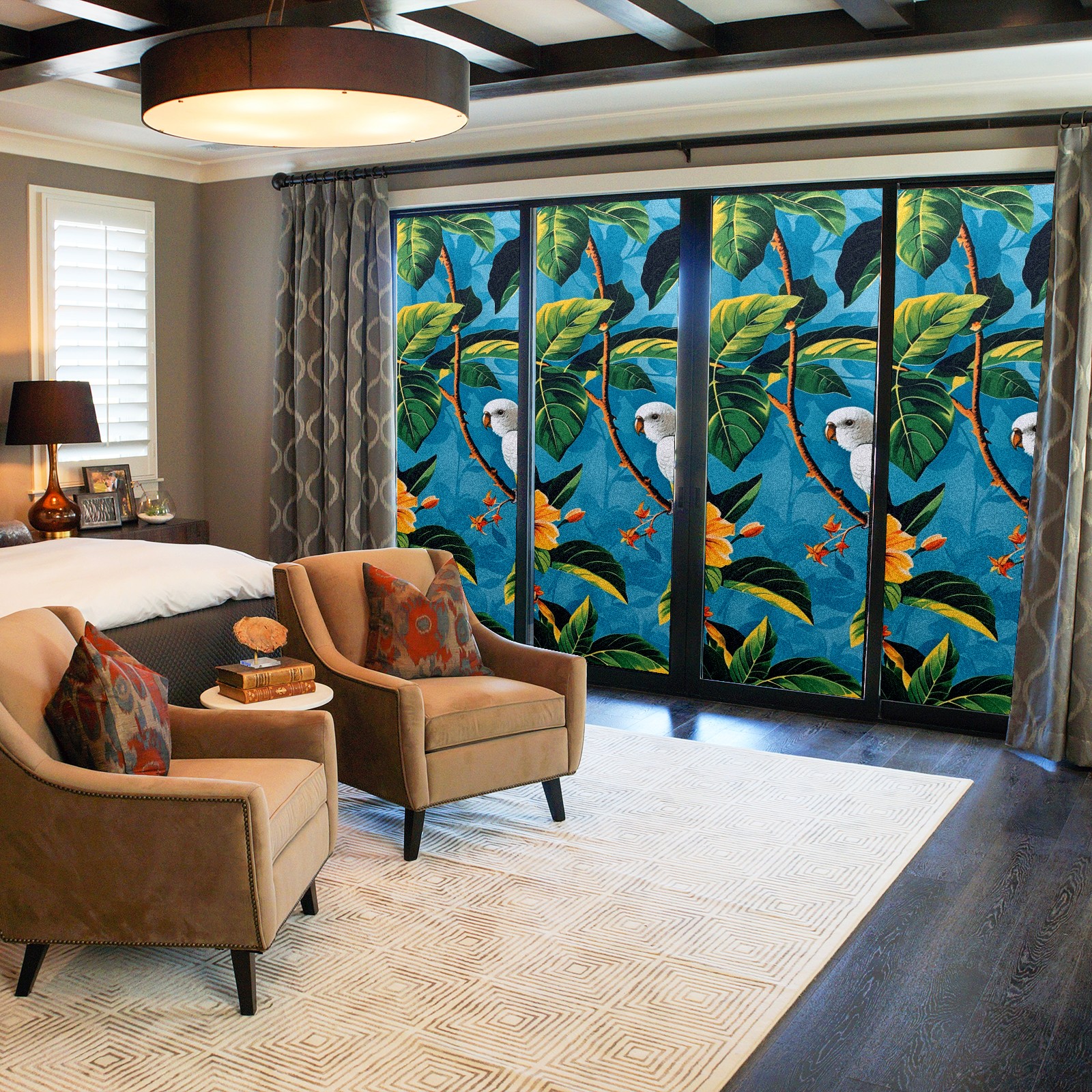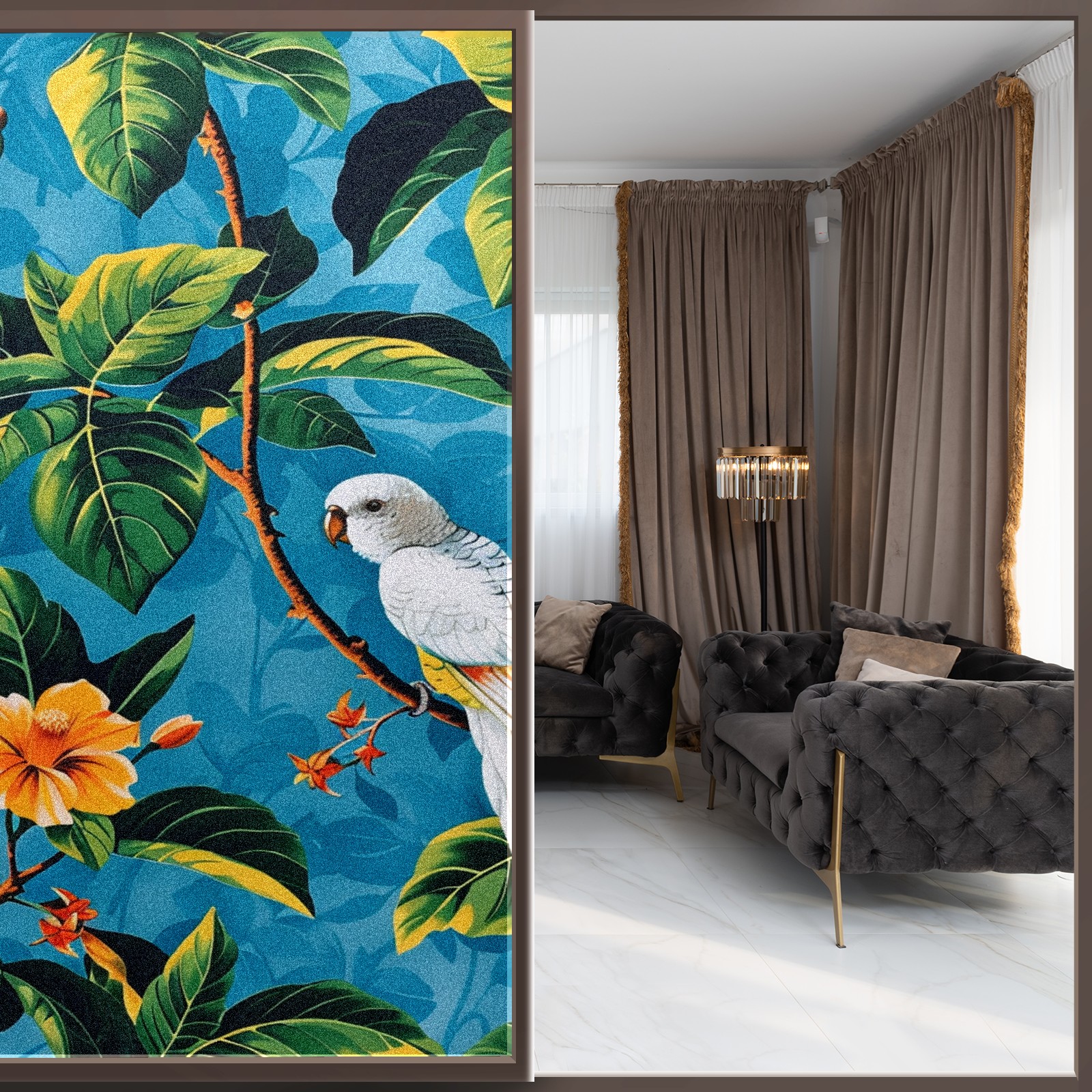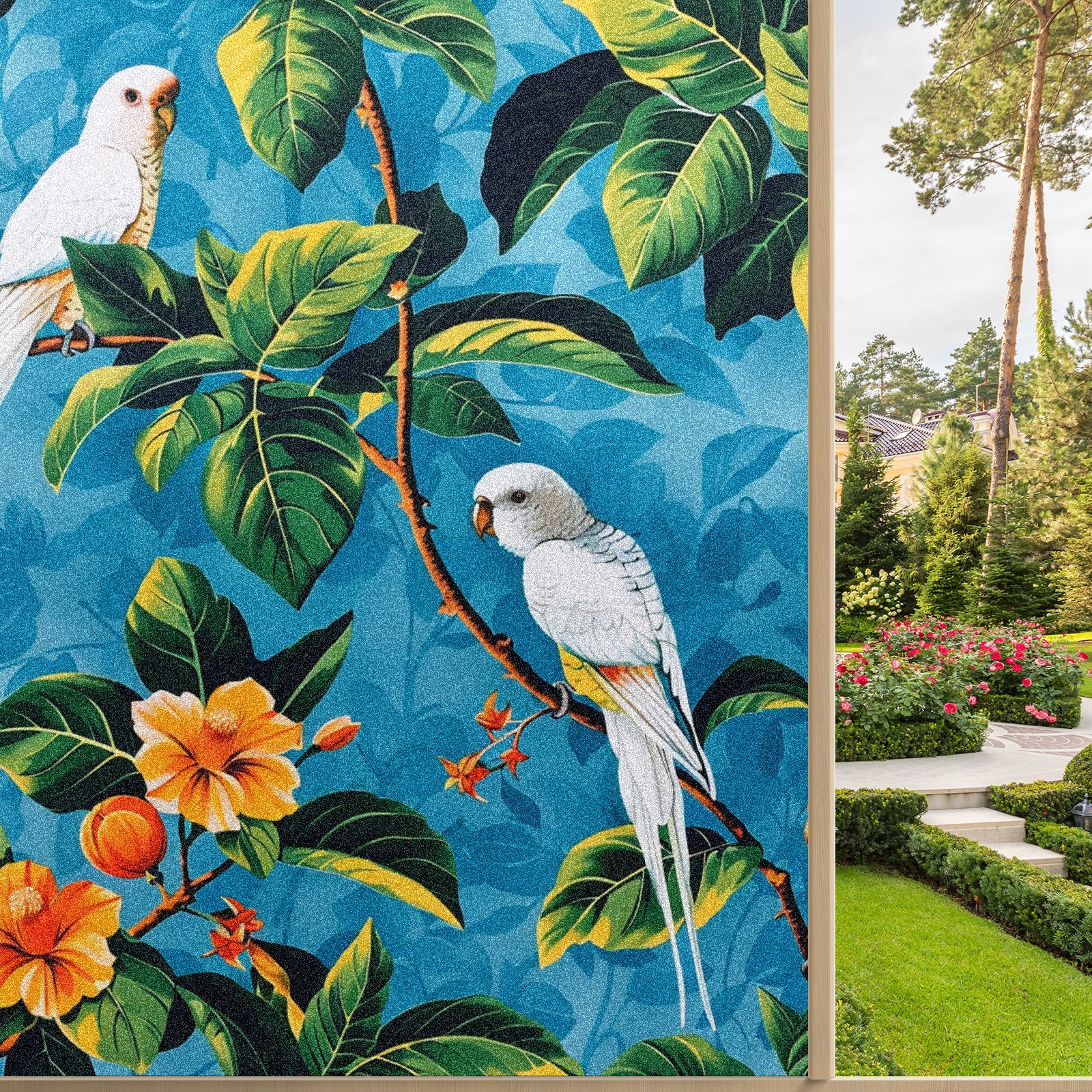 Window Privacy Film Frosted Stained Glass Film Decorative Static Cling for Bathroom Home Office Peel and Stick Window Film Vibrant Flowers And Birds(17.7x23.6in)