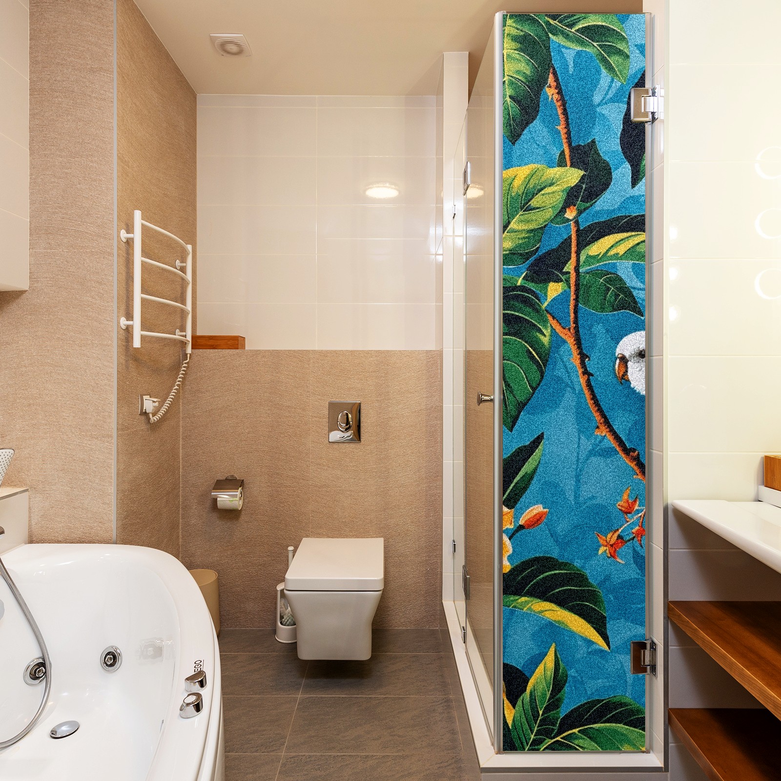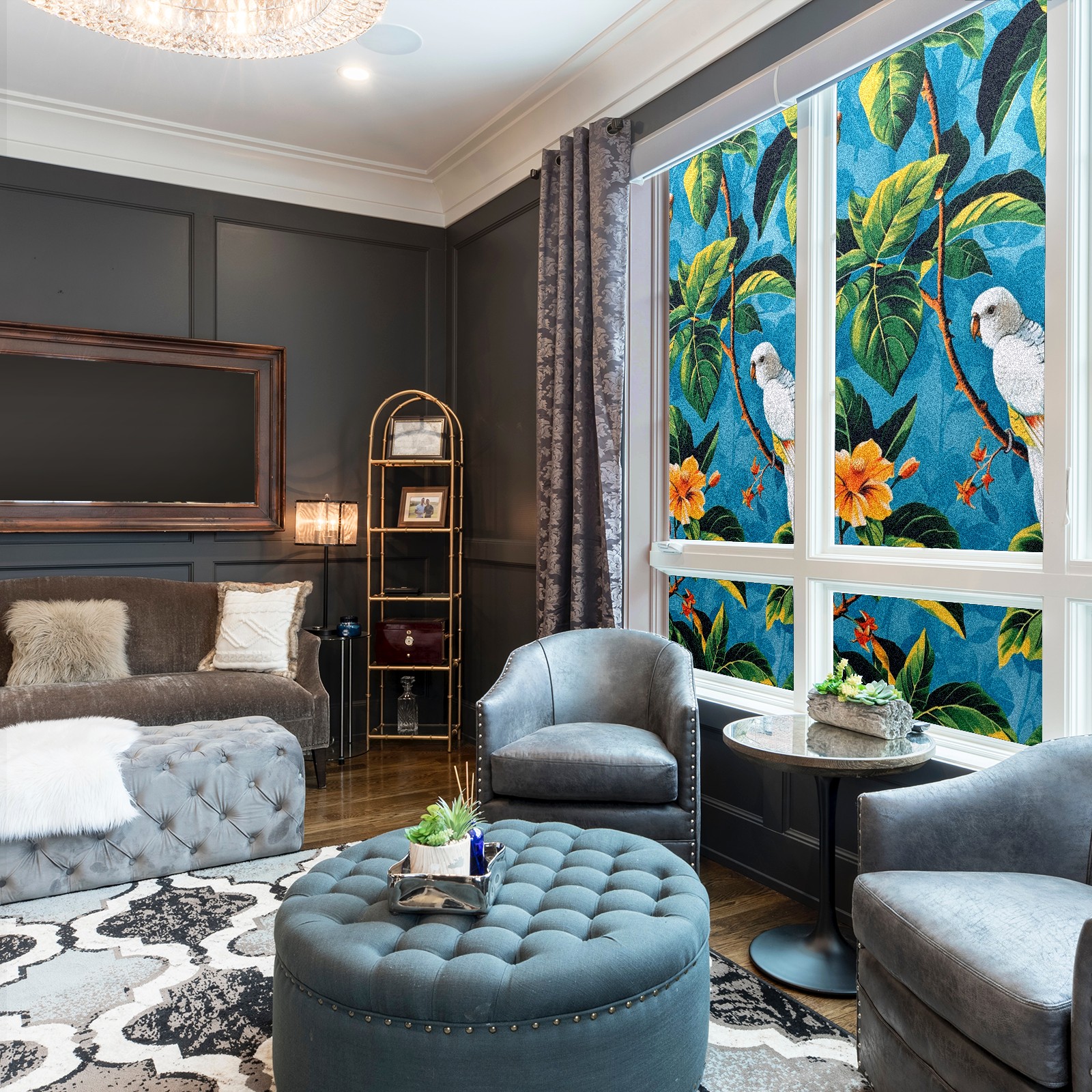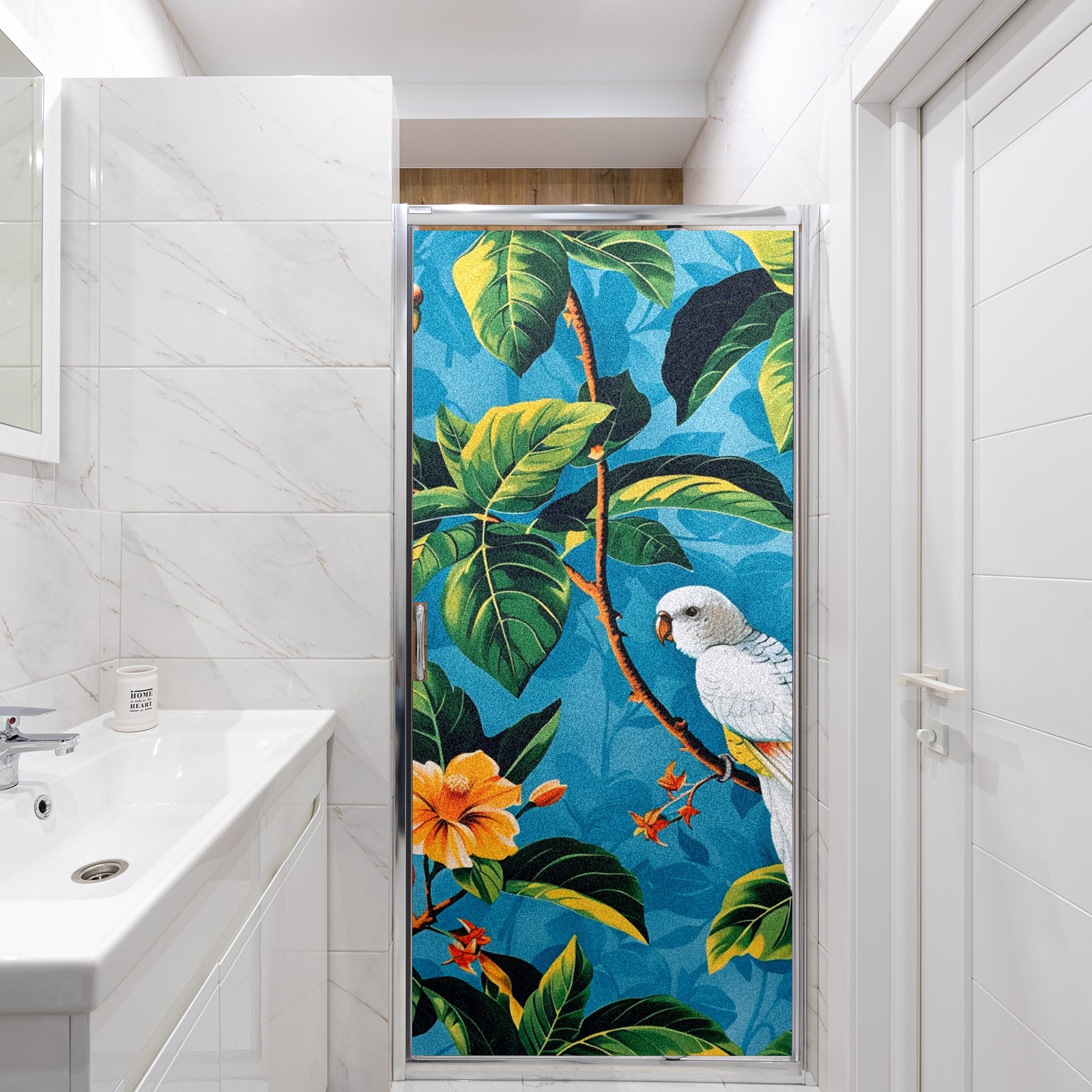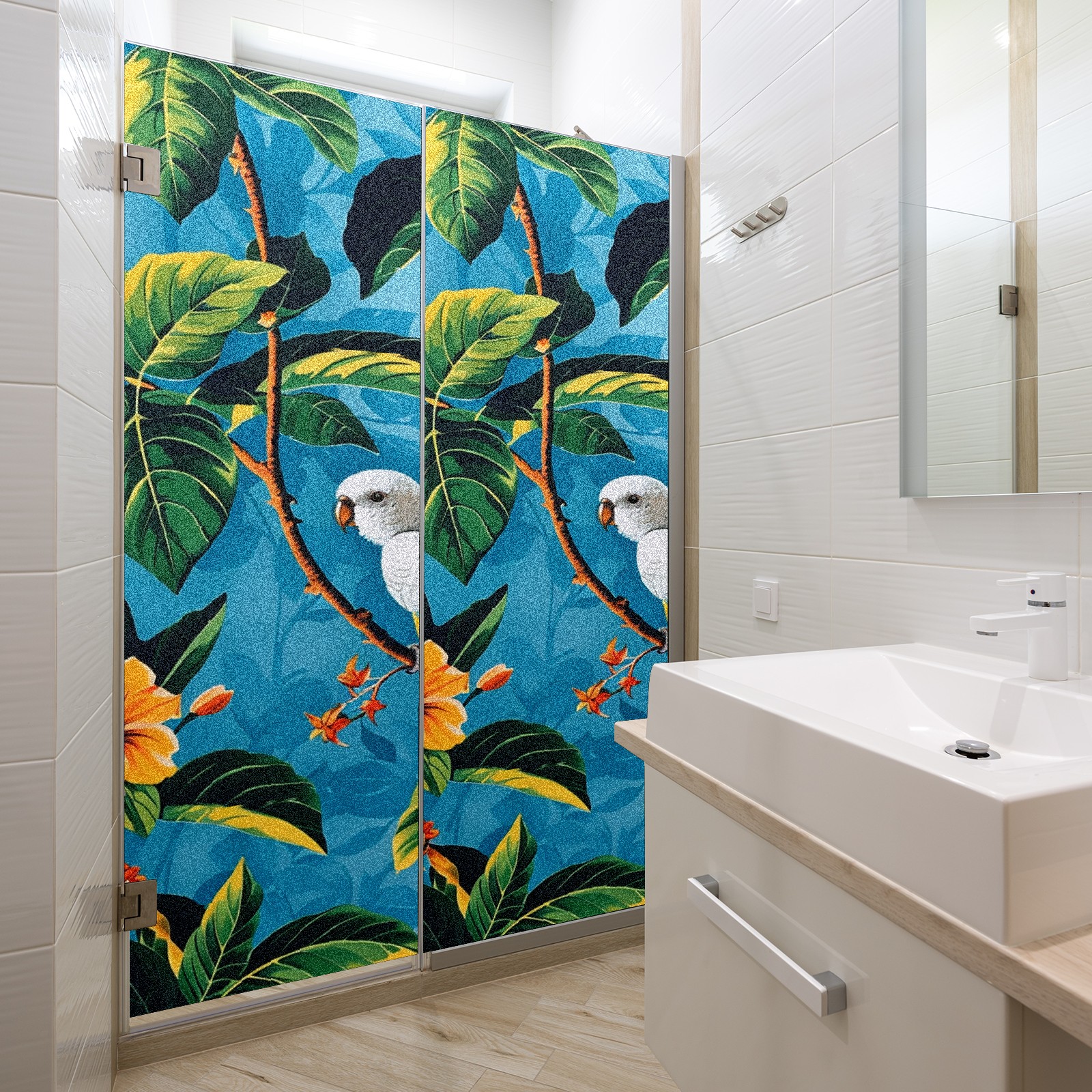 Window Privacy Film Frosted Stained Glass Film Decorative Static Cling for Bathroom Home Office Peel and Stick Window Film Vibrant Flowers And Birds(17.7x23.6in)