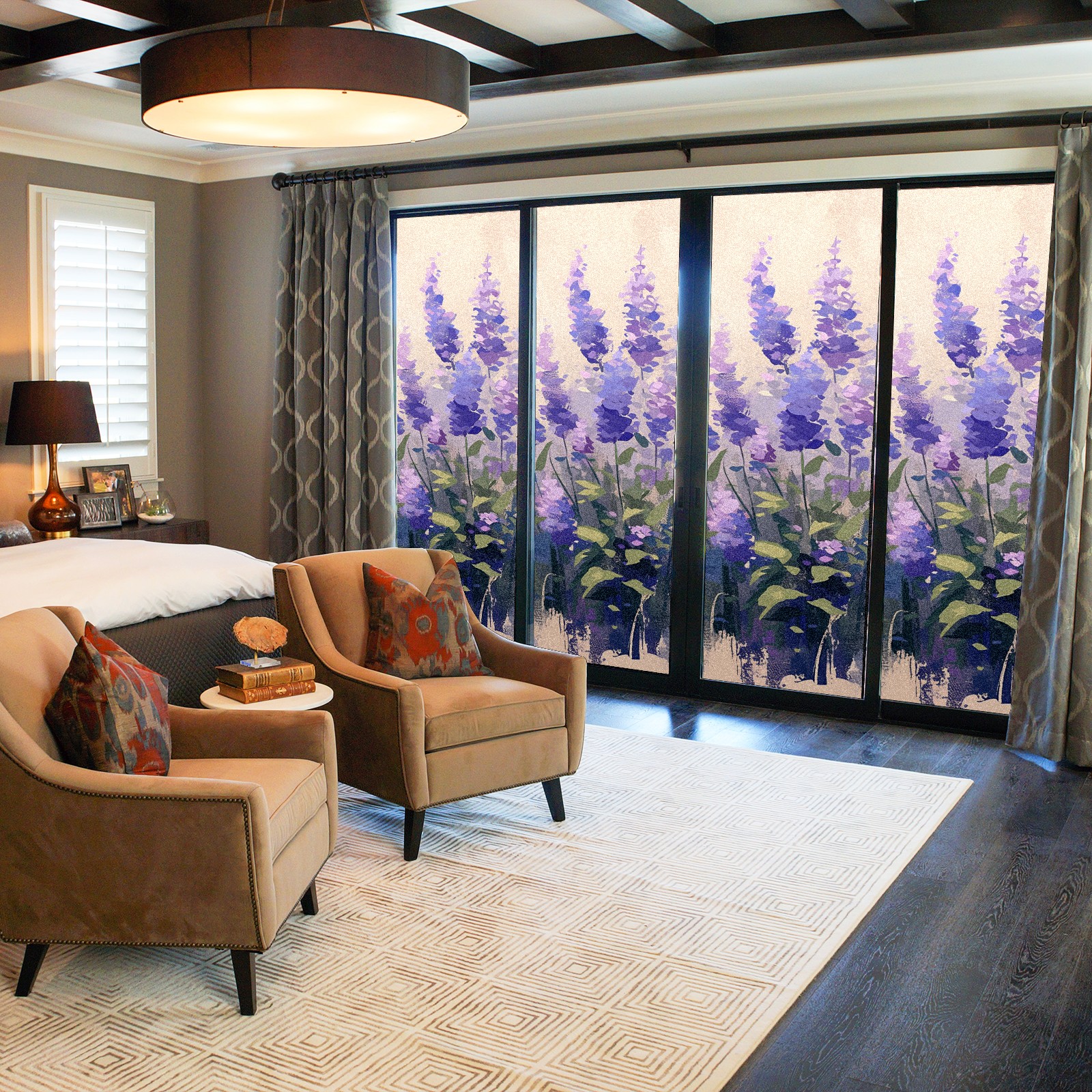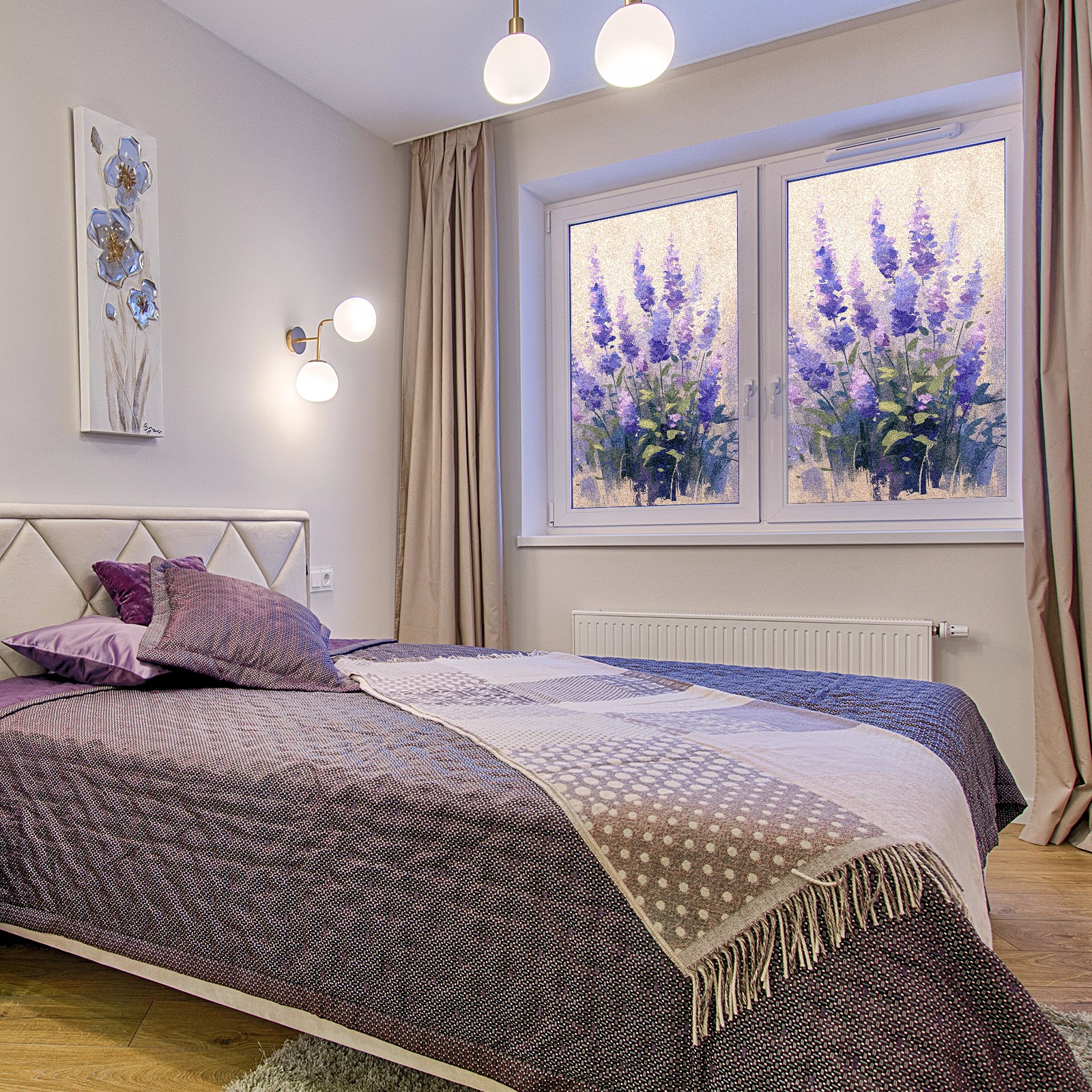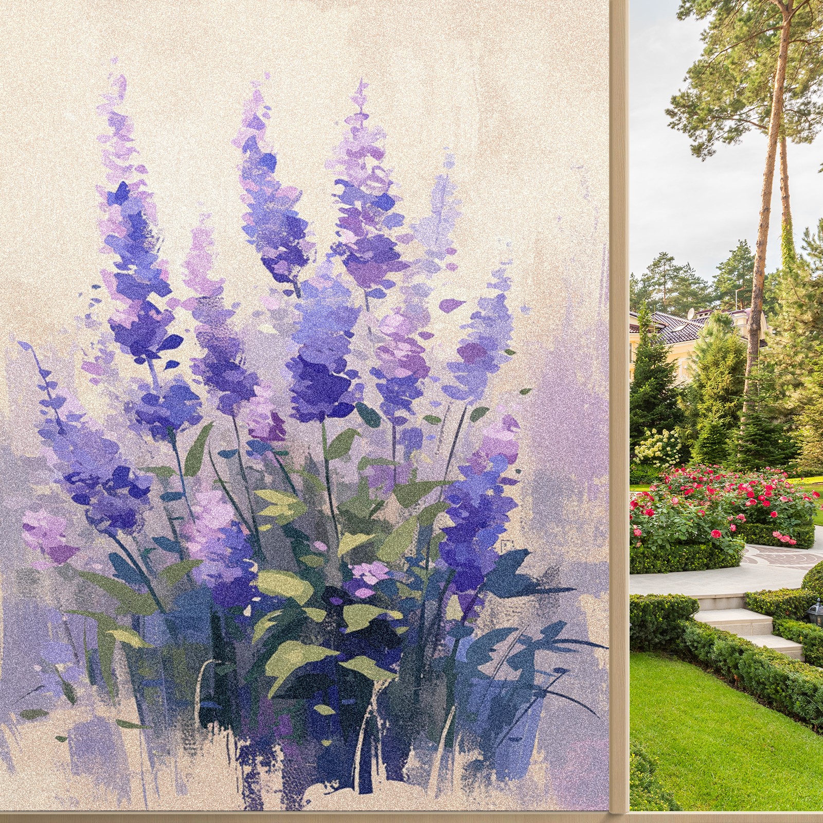 Window Privacy Film Frosted Stained Glass Film Decorative Static Cling for Bathroom Home Office Peel and Stick Window Film Lavender(17.7x23.6in)