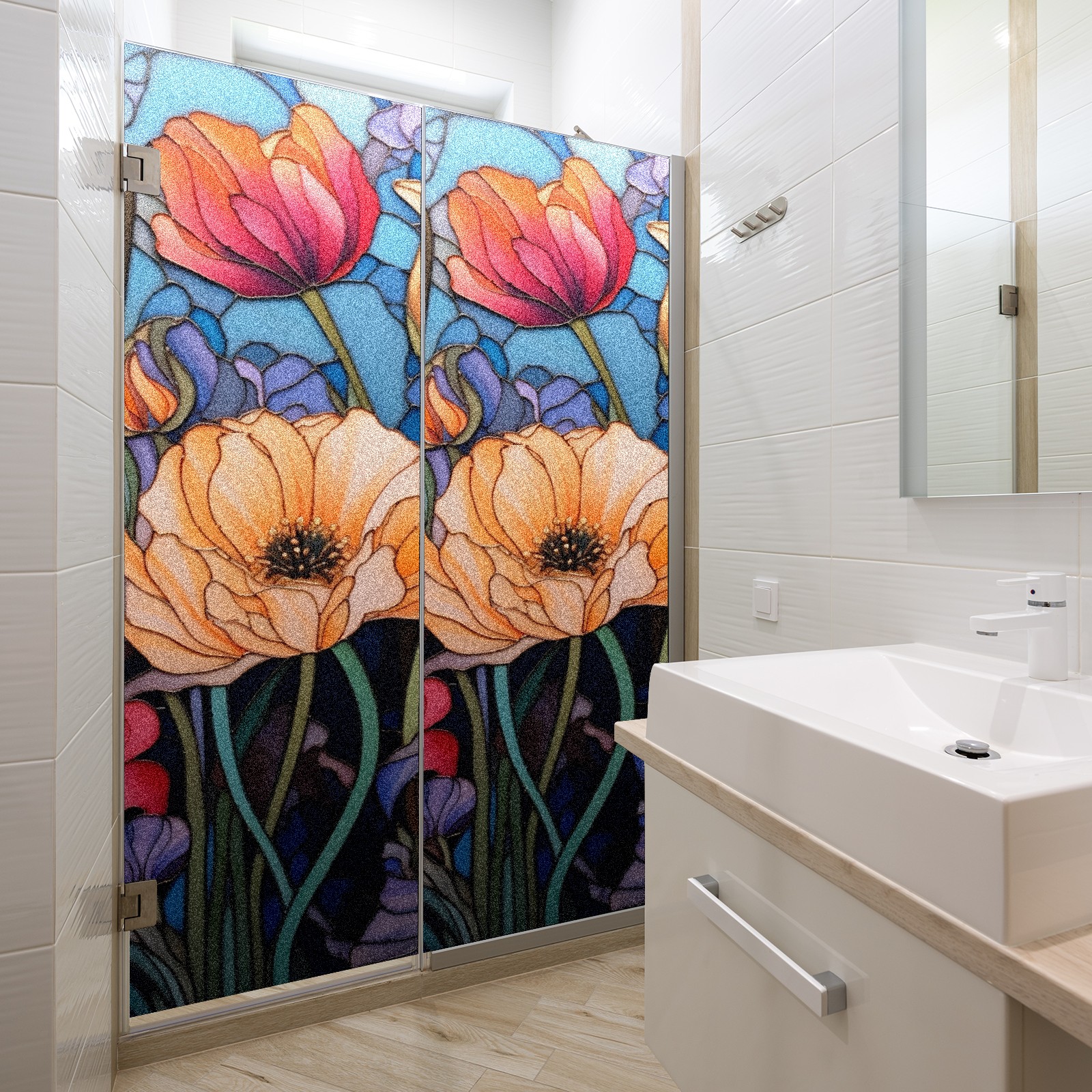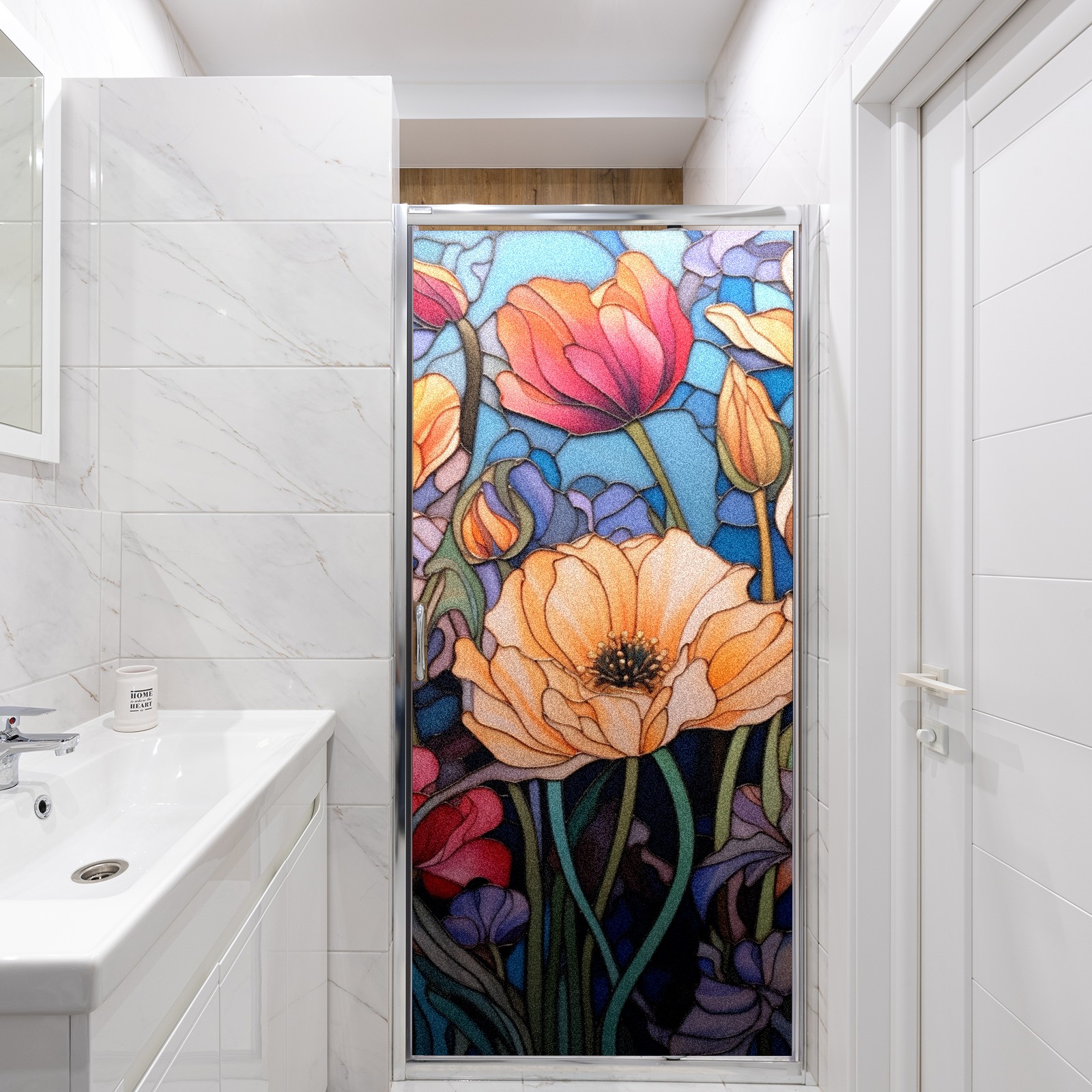 Window Privacy Film Frosted Stained Glass Film Decorative Static Cling for Bathroom Home Office Peel and Stick Window Film Blooming Flowers(17.7x23.6in)