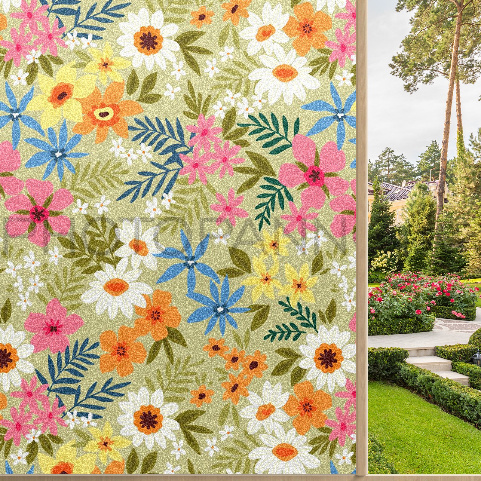 Window Privacy Film Frosted Stained Glass Film Decorative Static Cling for Bathroom Home Office Peel and Stick Window Film Daisies And Flowers(17.7x23.6in)