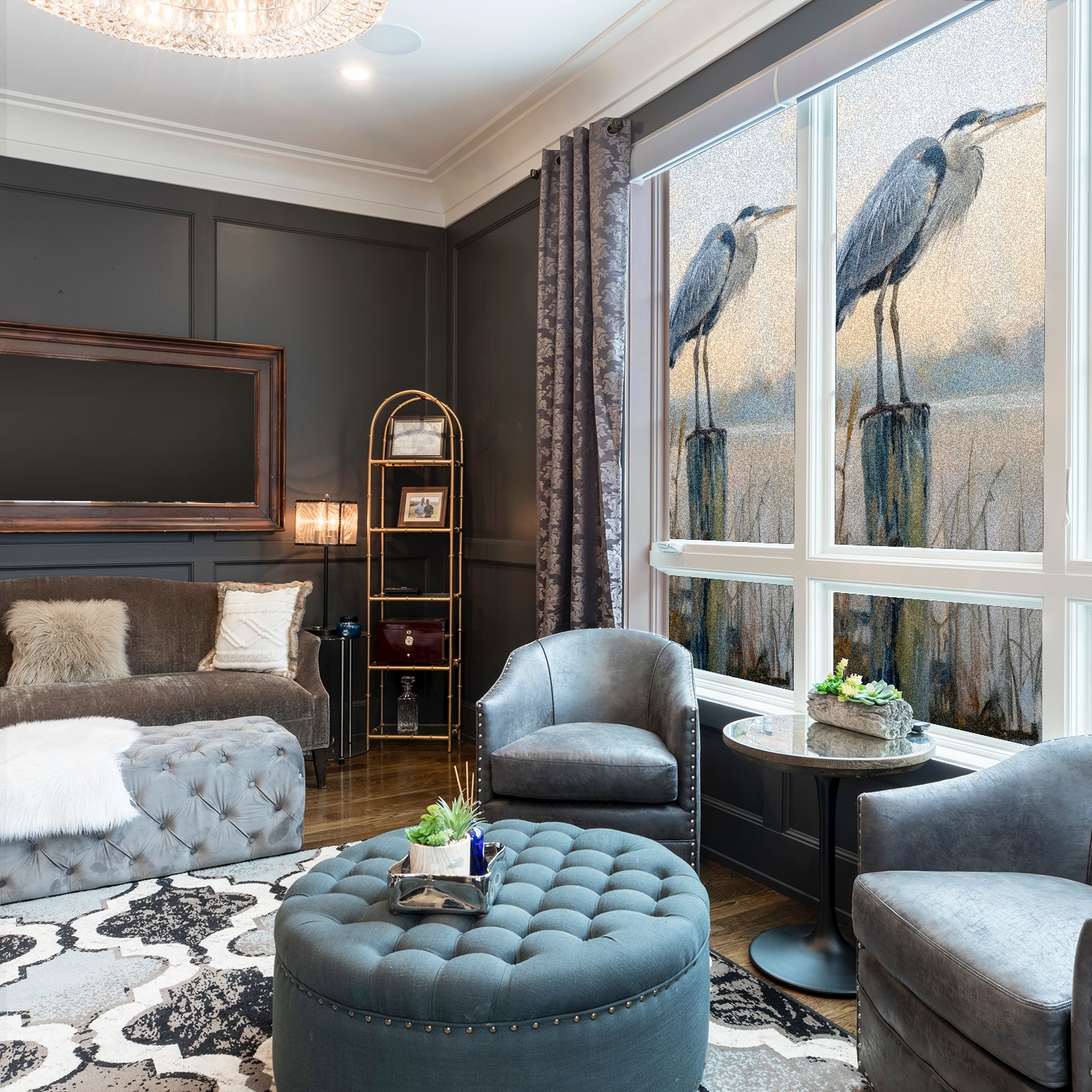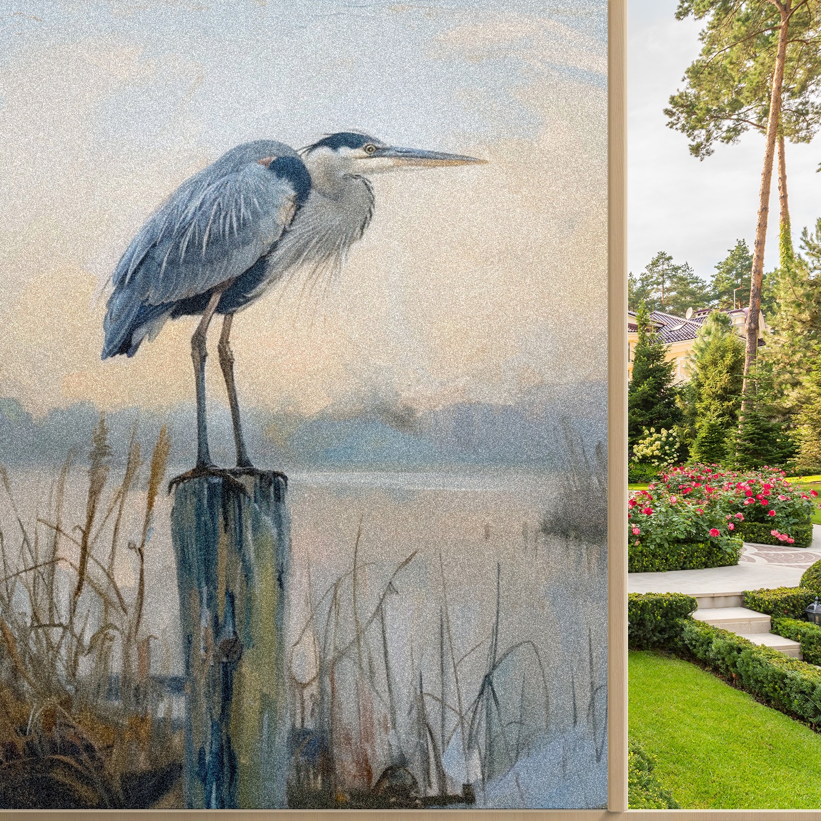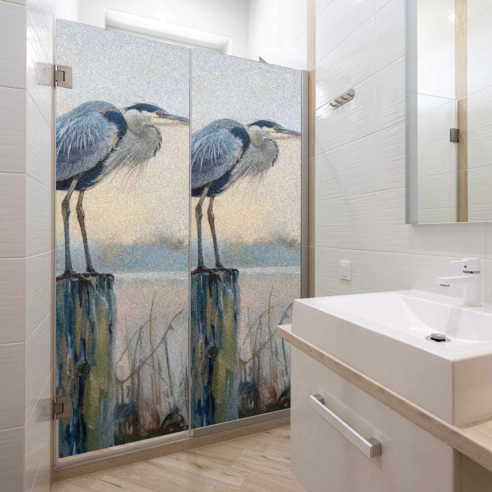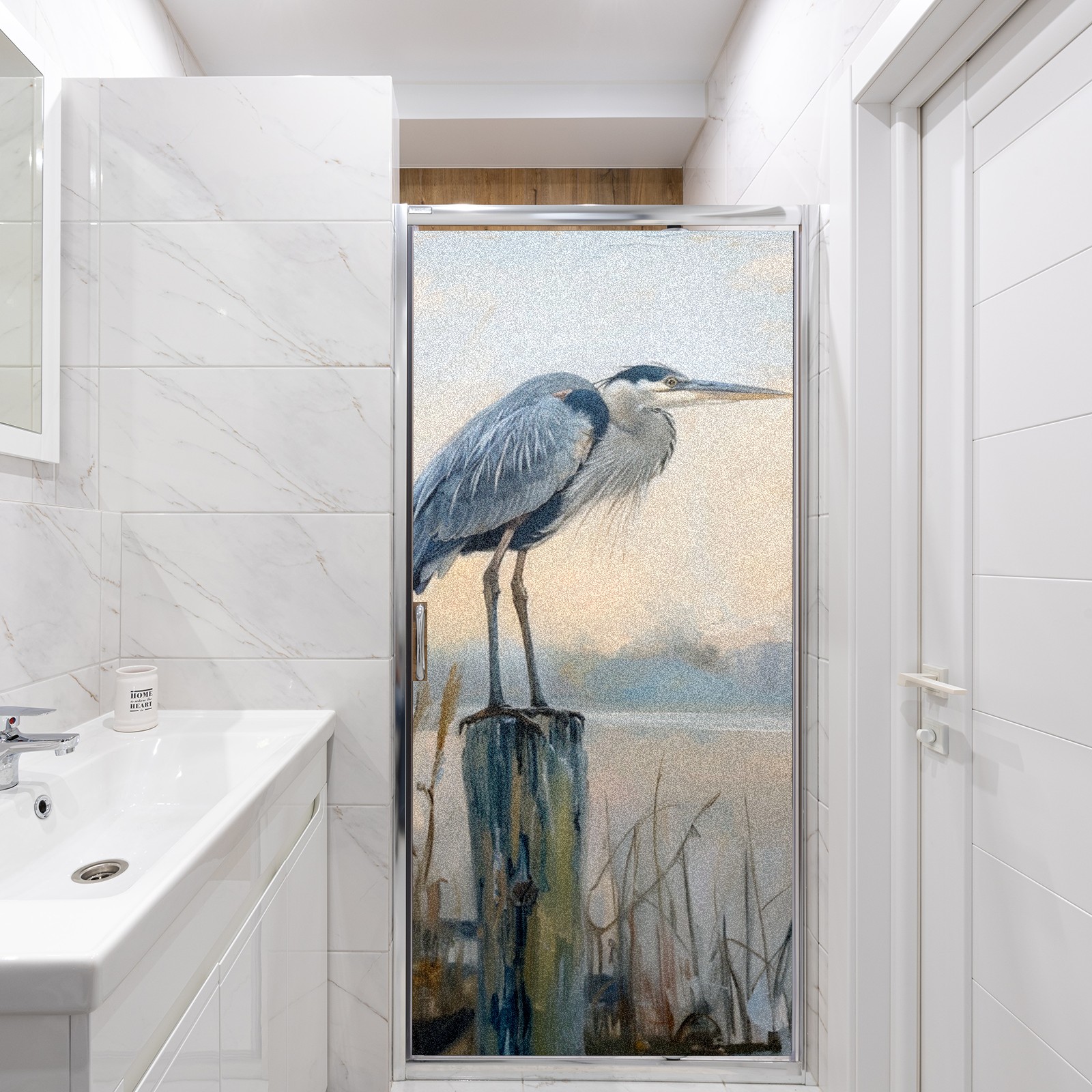 Window Privacy Film Frosted Stained Glass Film Decorative Static Cling for Bathroom Home Office Peel and Stick Window Film Elegant Blue Heron(17.7x23.6in)