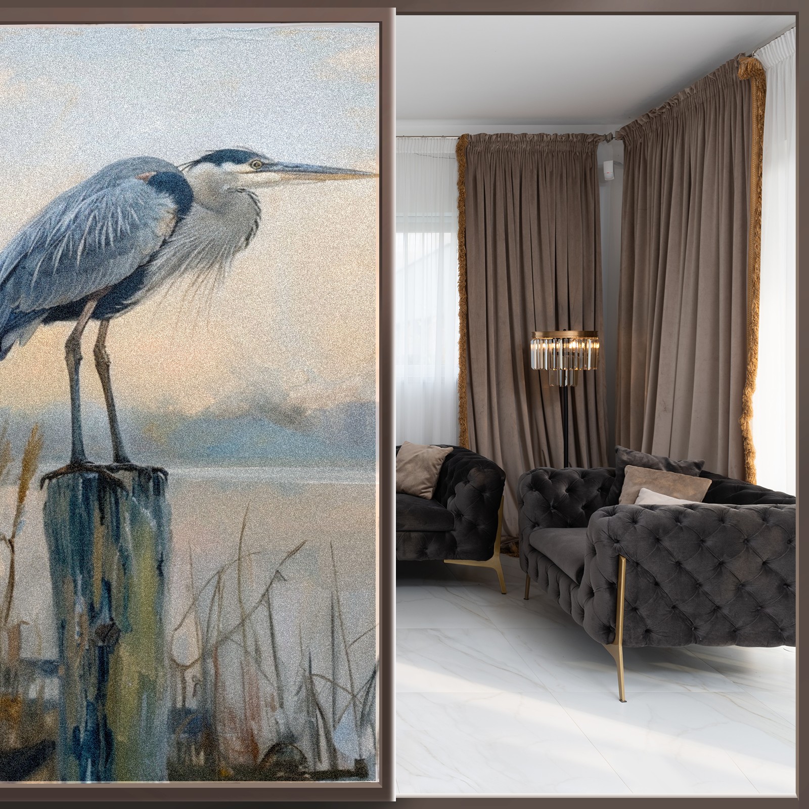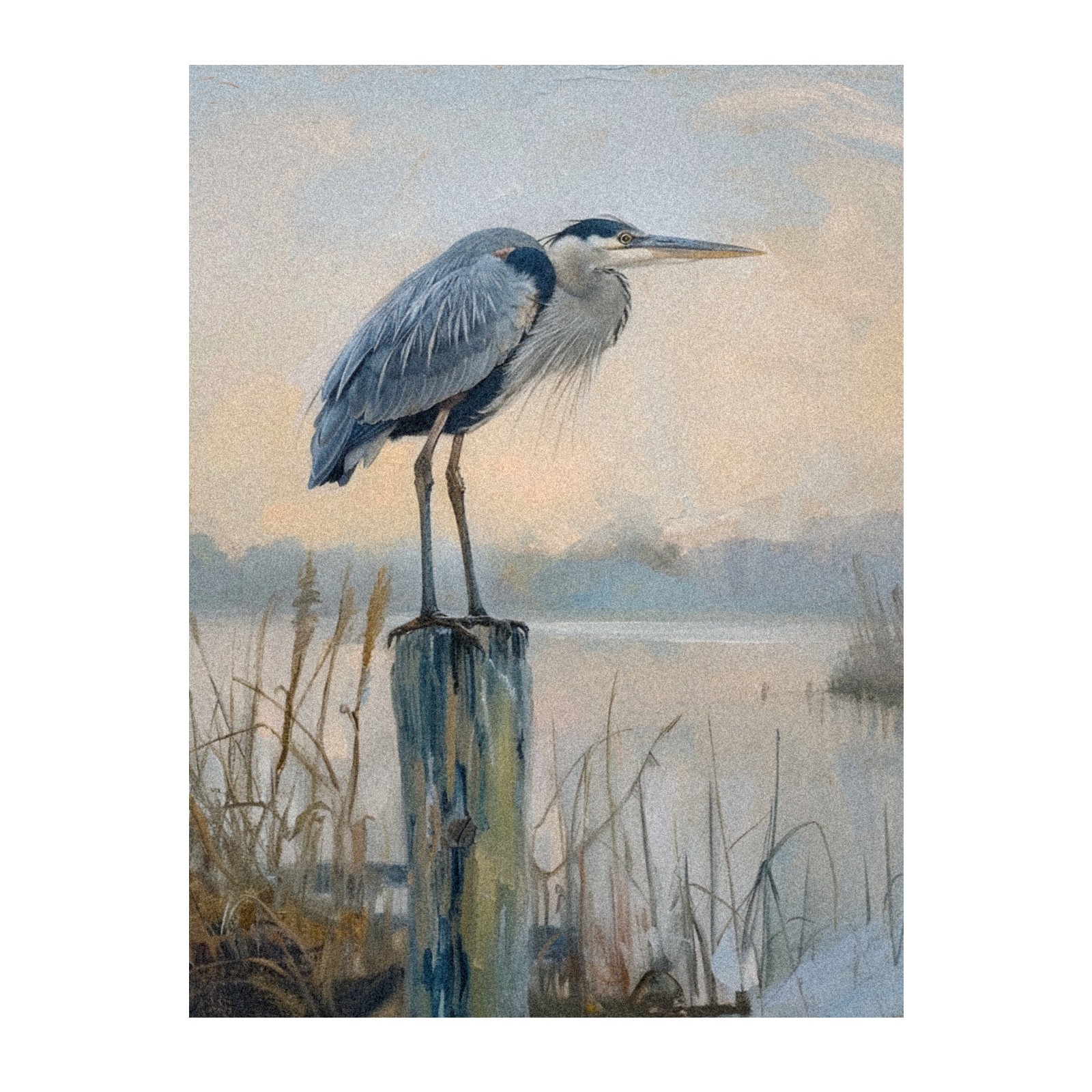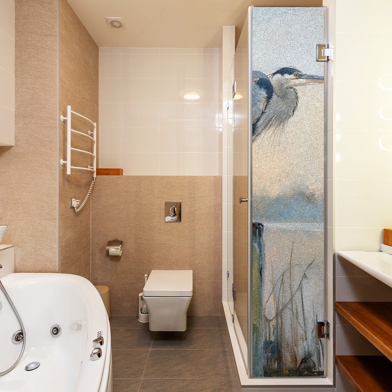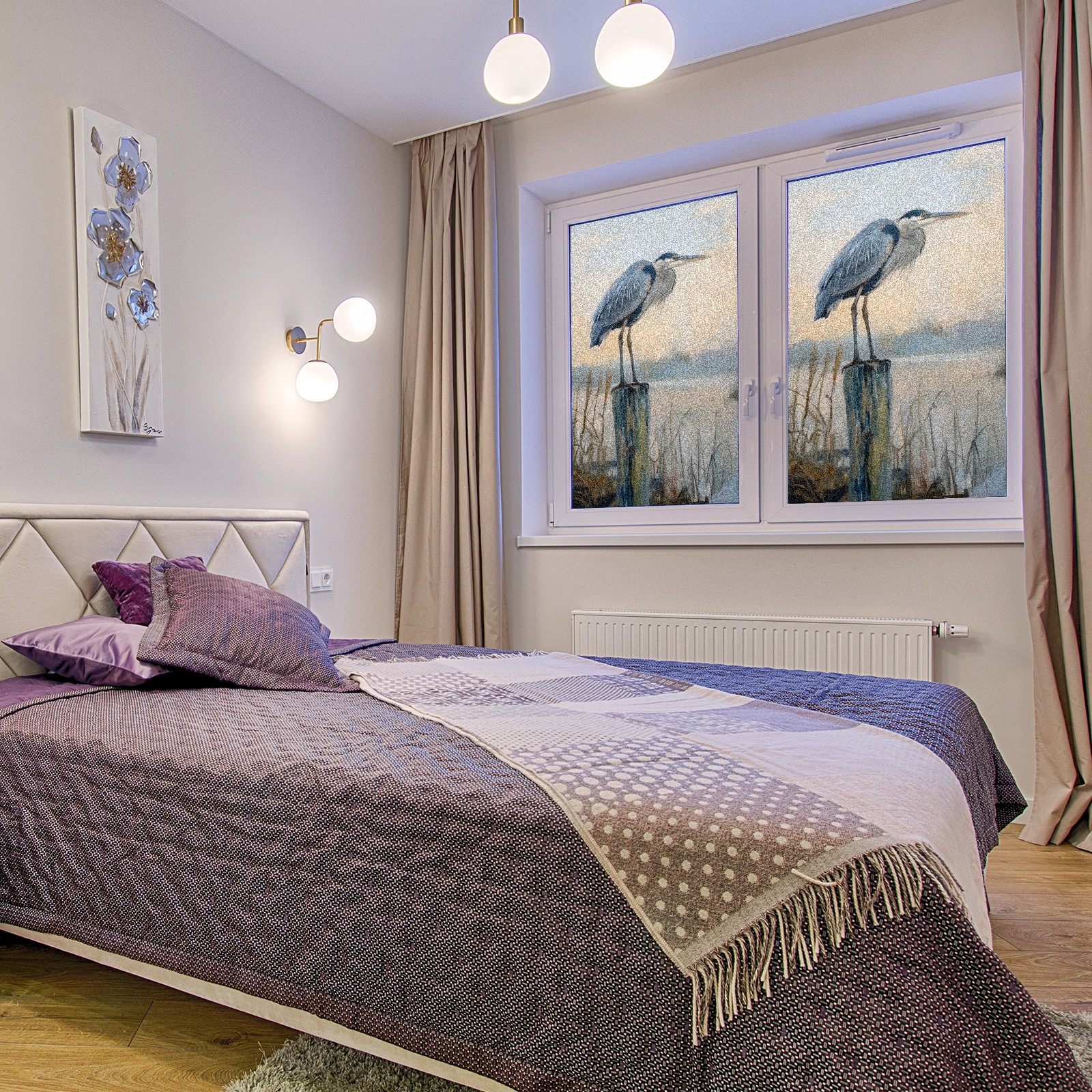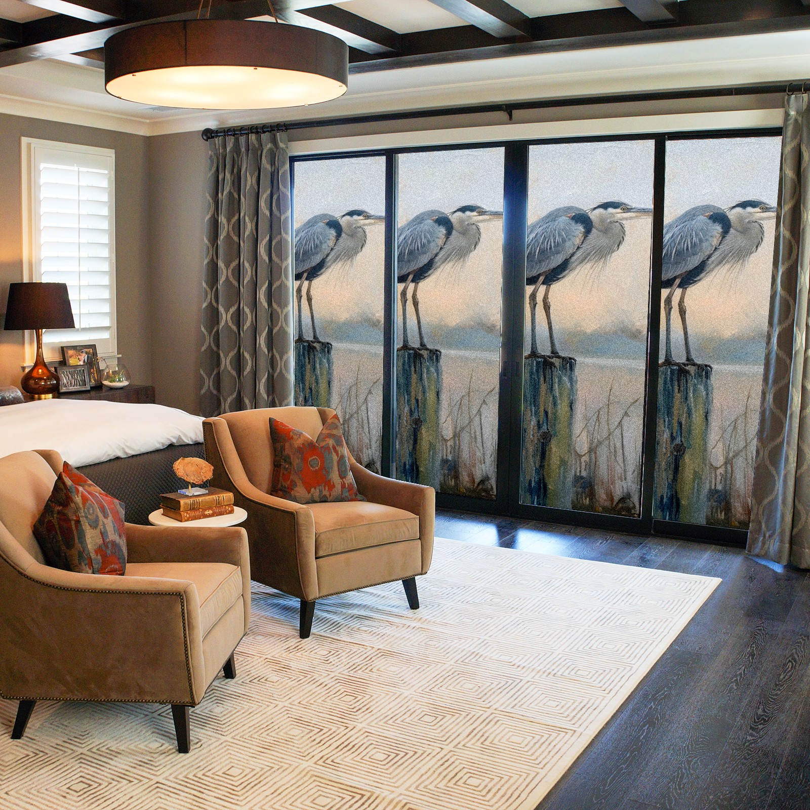 Window Privacy Film Frosted Stained Glass Film Decorative Static Cling for Bathroom Home Office Peel and Stick Window Film Elegant Blue Heron(17.7x23.6in)