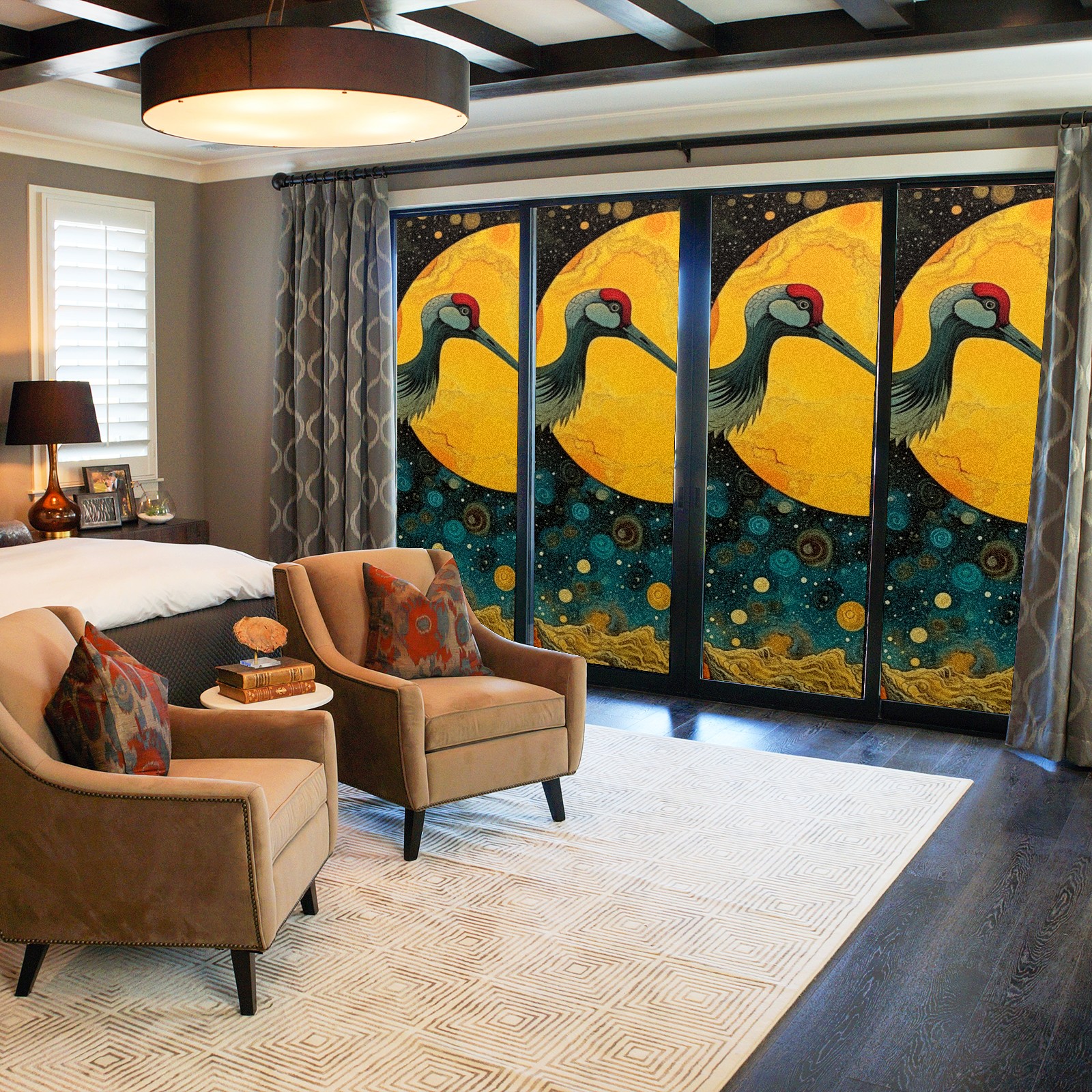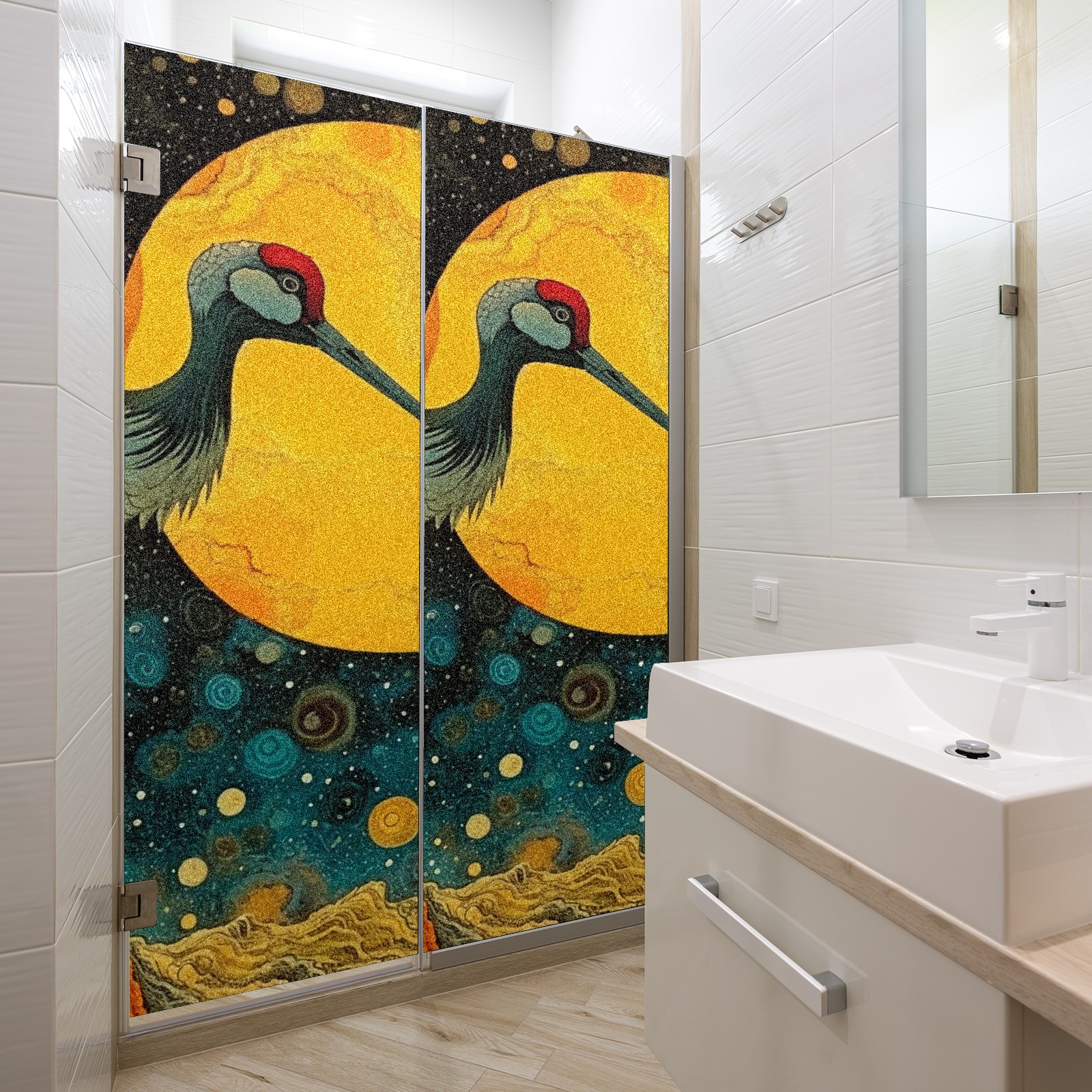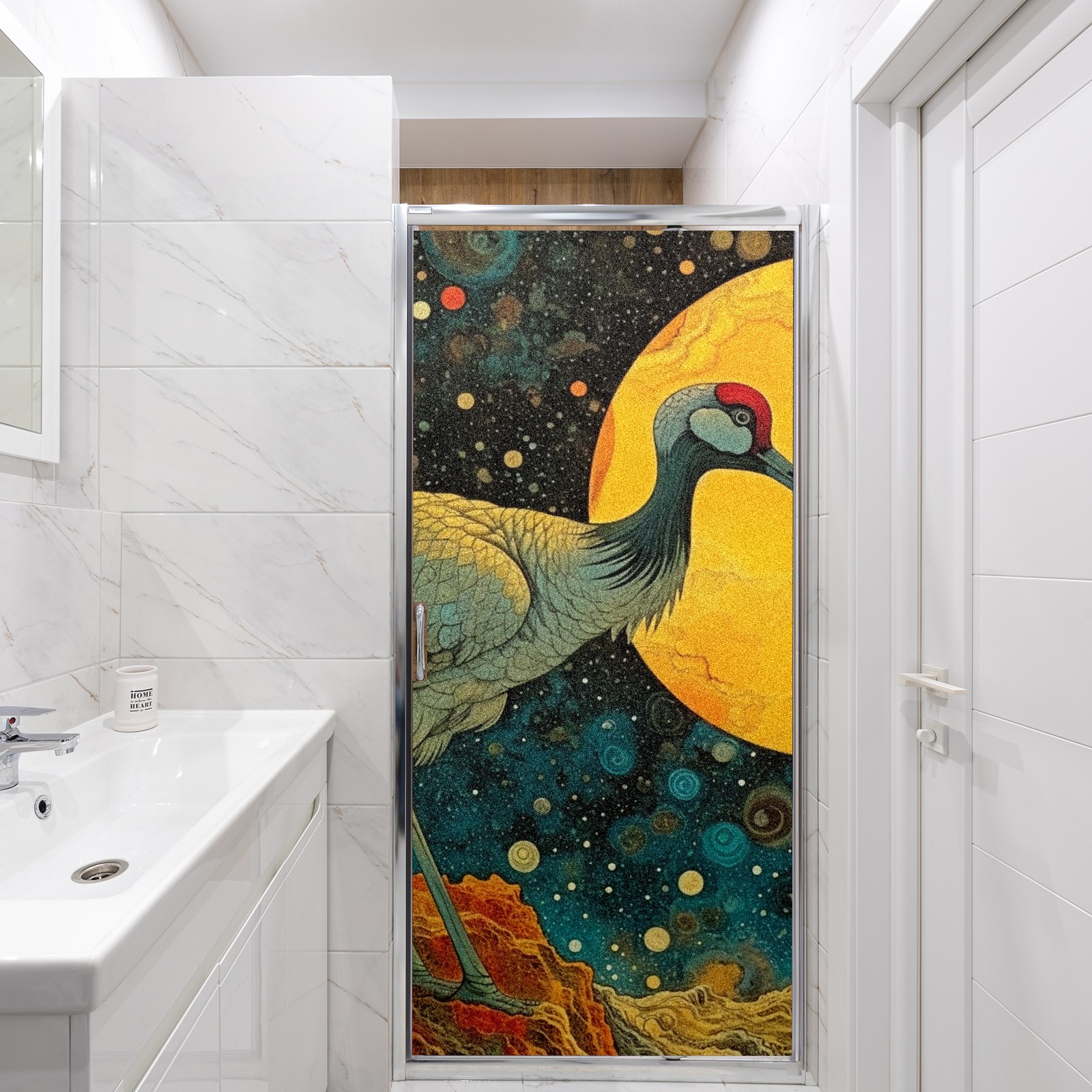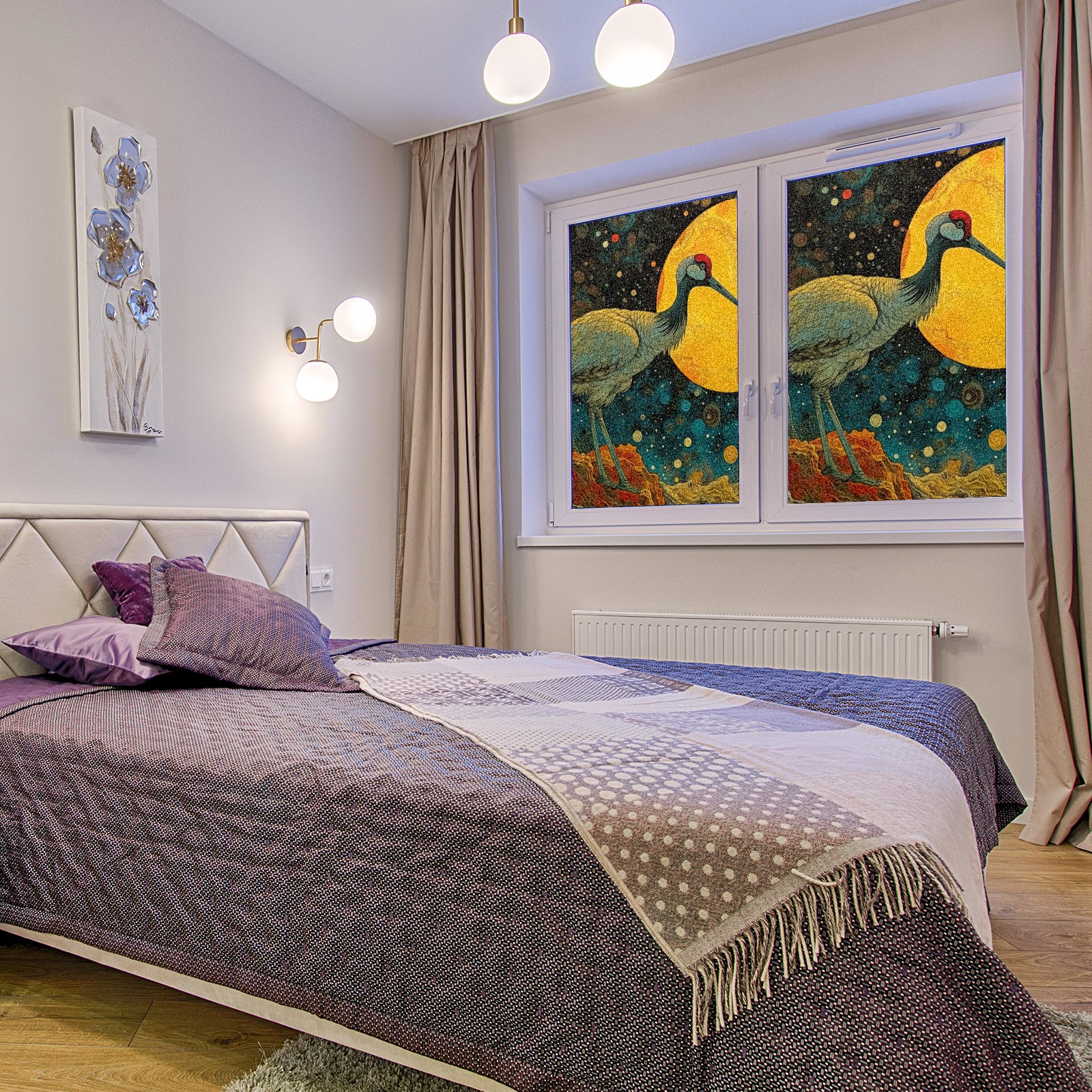 Window Privacy Film Frosted Stained Glass Film Decorative Static Cling for Bathroom Home Office Peel and Stick Window Film Psychedelic Moebius Bird(17.7x23.6in)