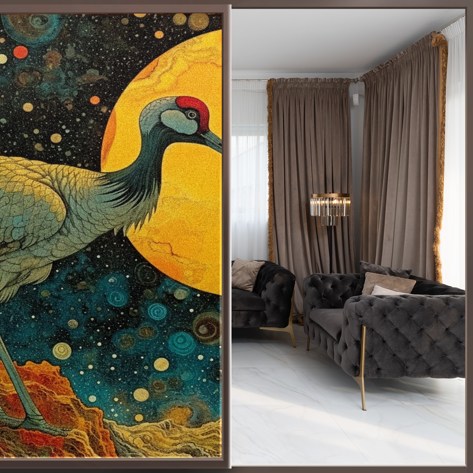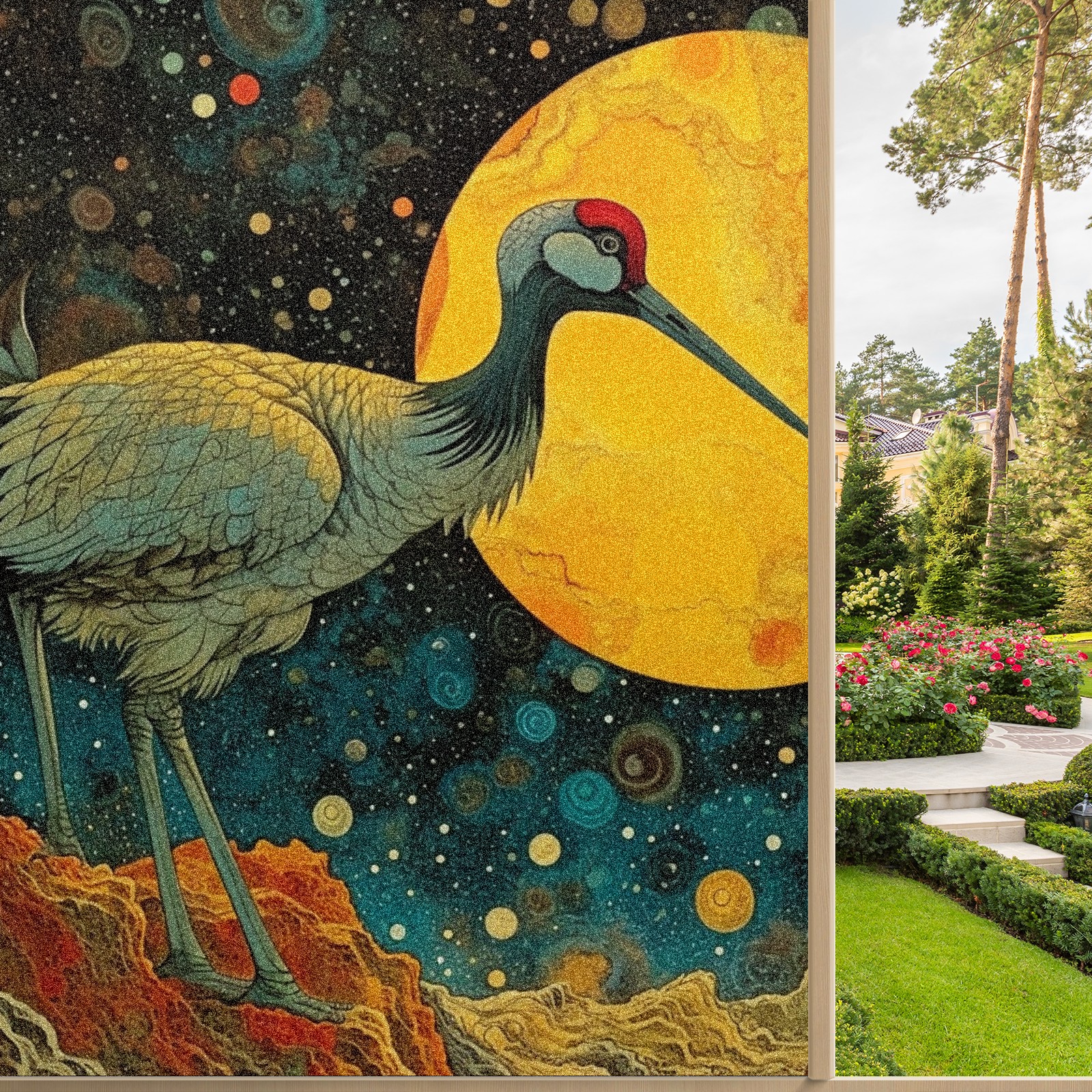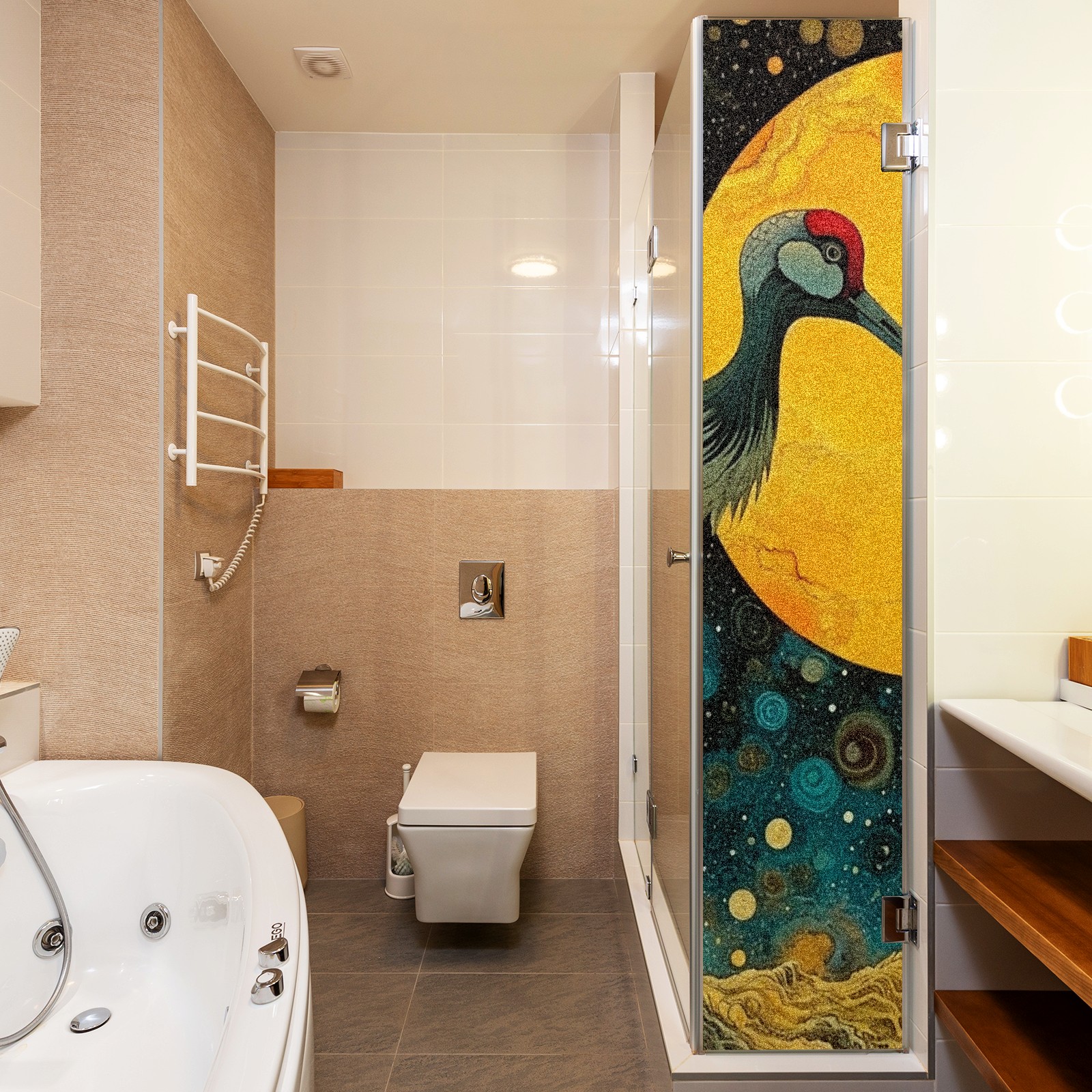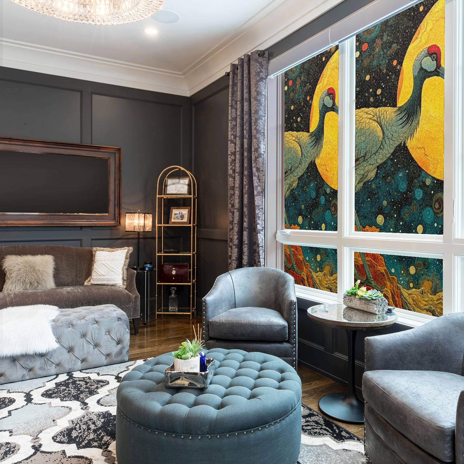 Window Privacy Film Frosted Stained Glass Film Decorative Static Cling for Bathroom Home Office Peel and Stick Window Film Psychedelic Moebius Bird(17.7x23.6in)